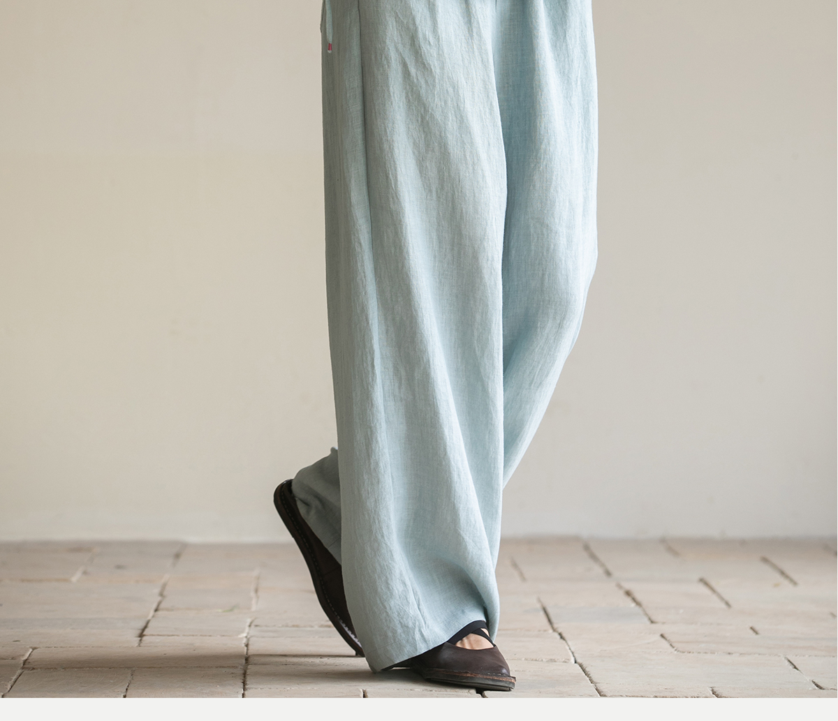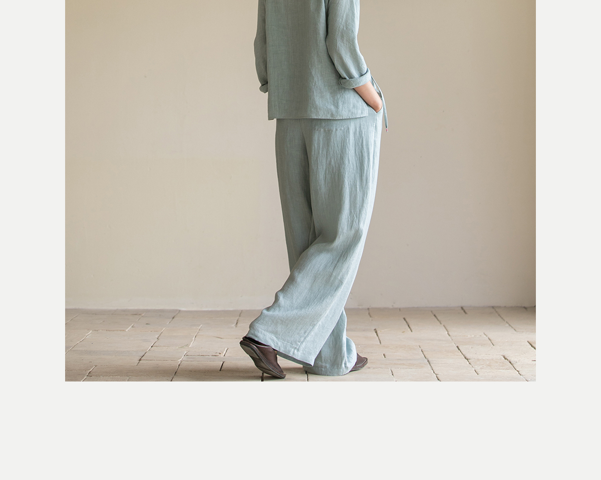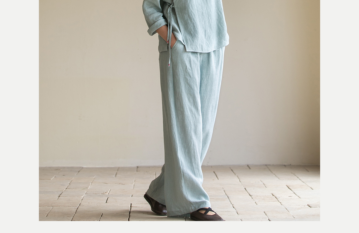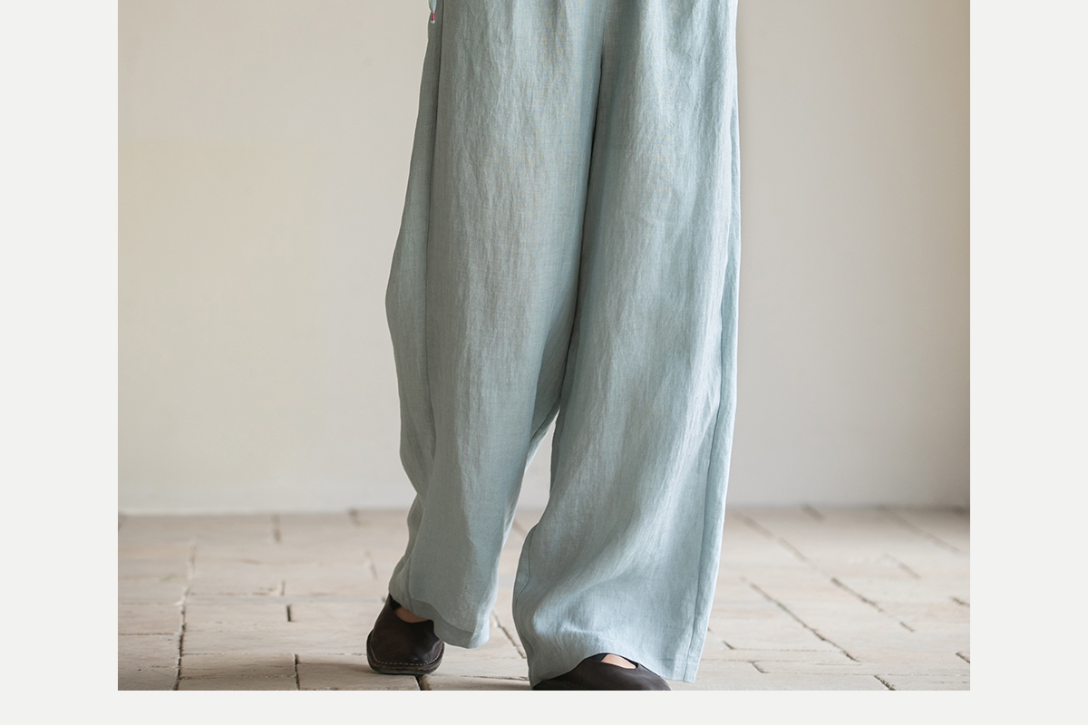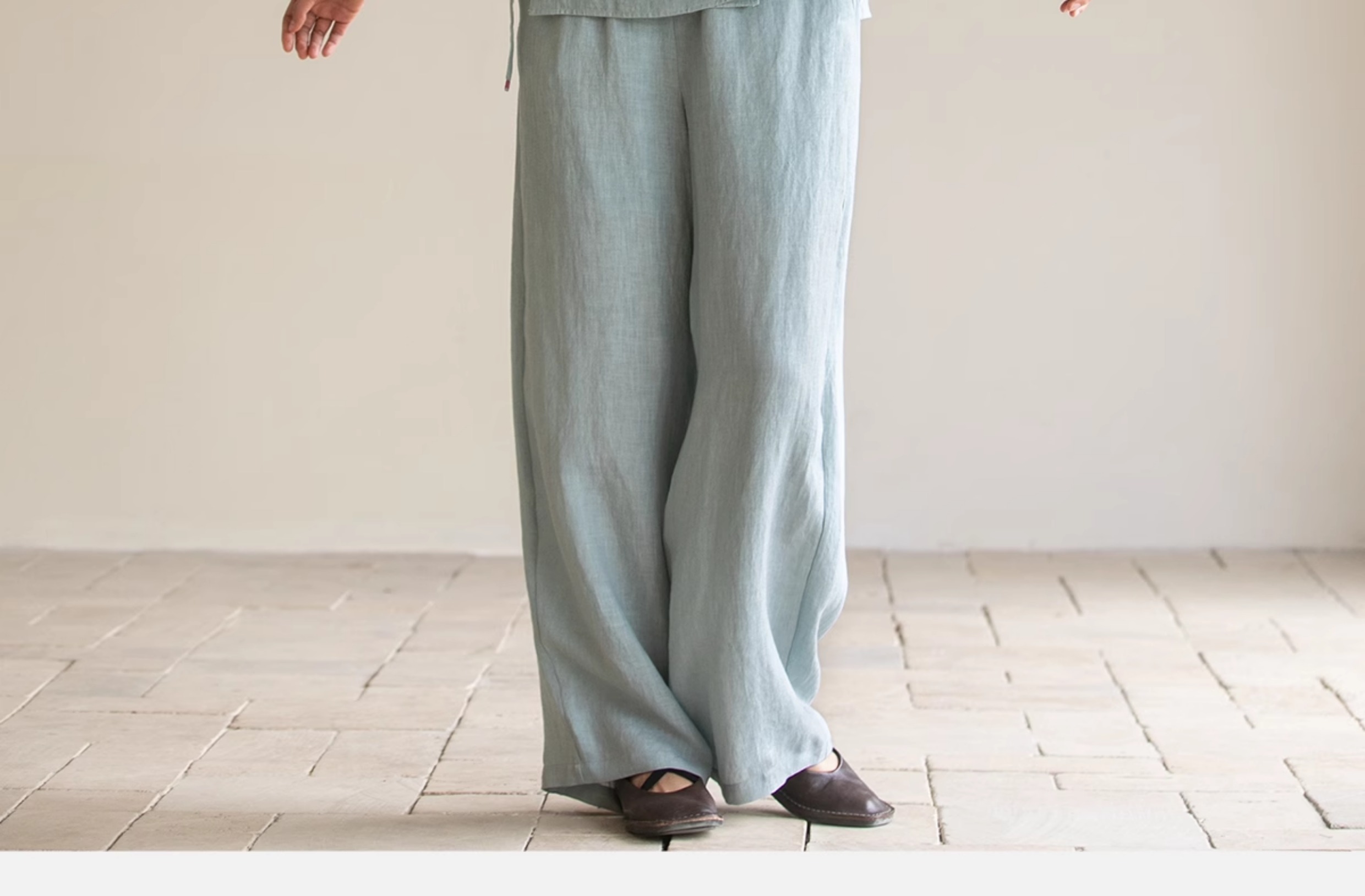 牧衣游原创 佰分佰细软汉麻净色裤子松弛感文艺休闲阔腿裤 雨趣