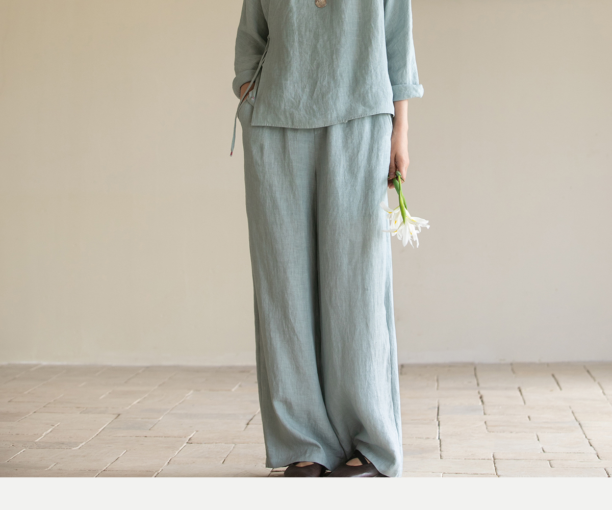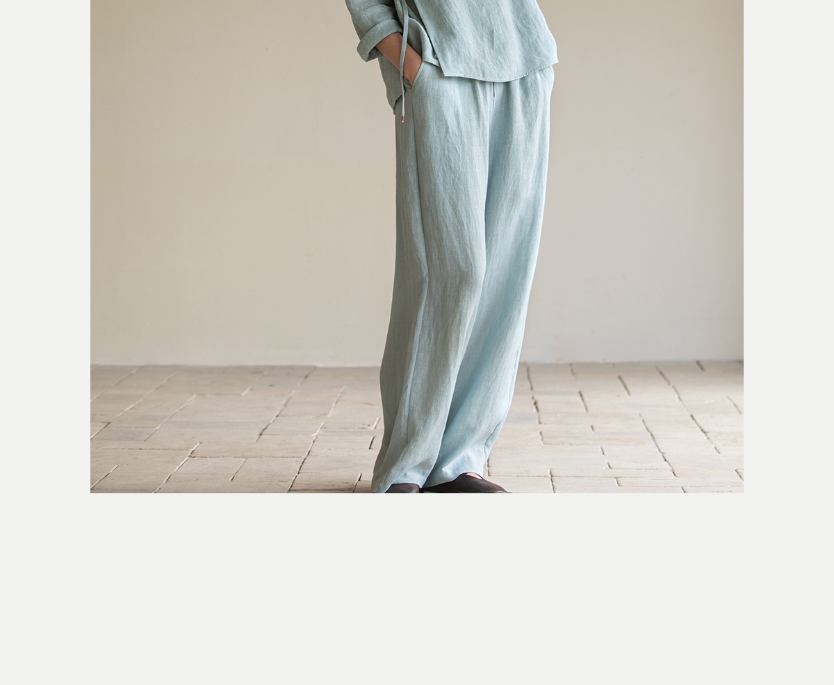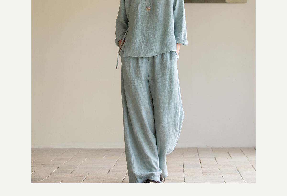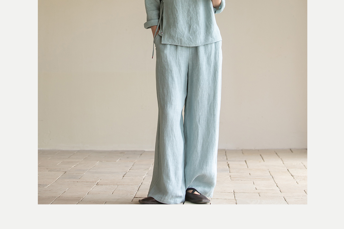 牧衣游原创 佰分佰细软汉麻净色裤子松弛感文艺休闲阔腿裤 雨趣