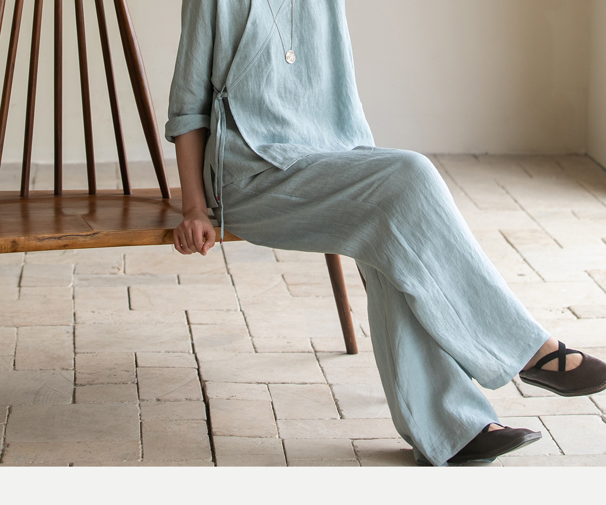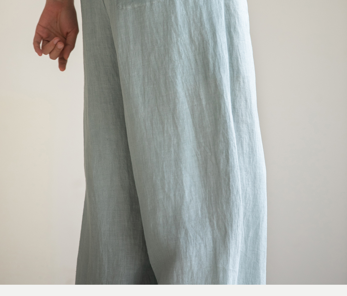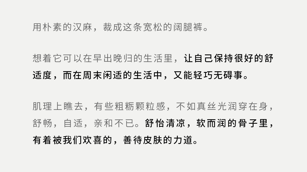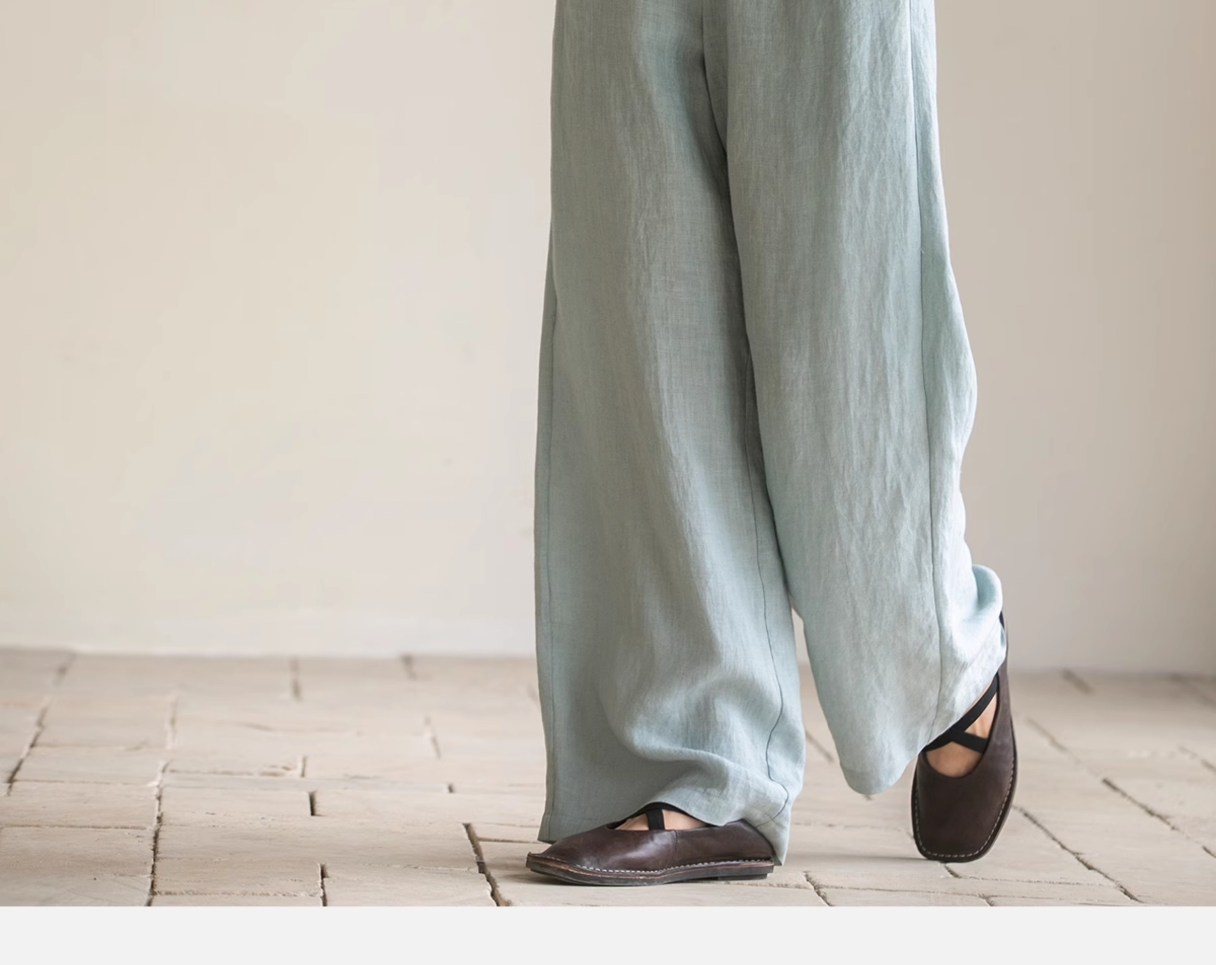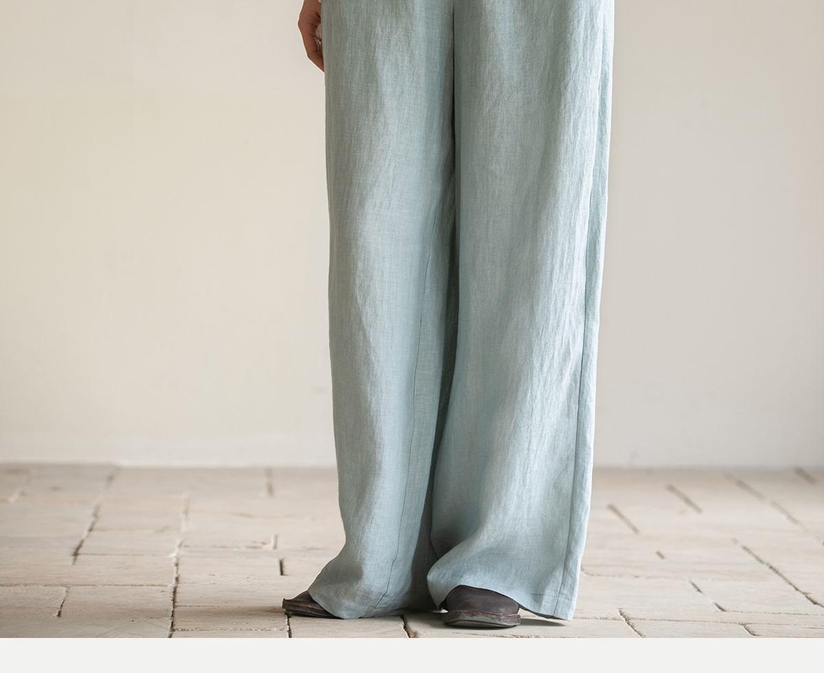 牧衣游原创 佰分佰细软汉麻净色裤子松弛感文艺休闲阔腿裤 雨趣