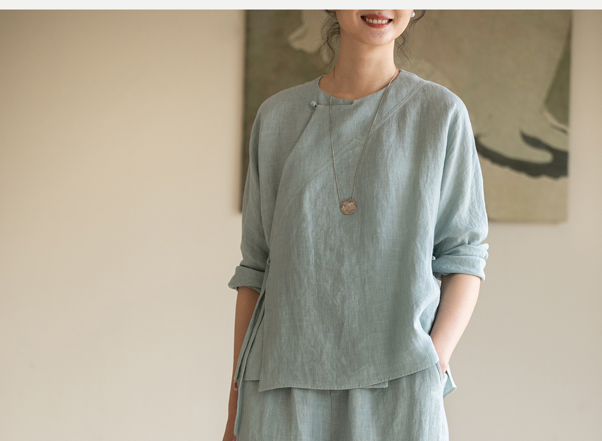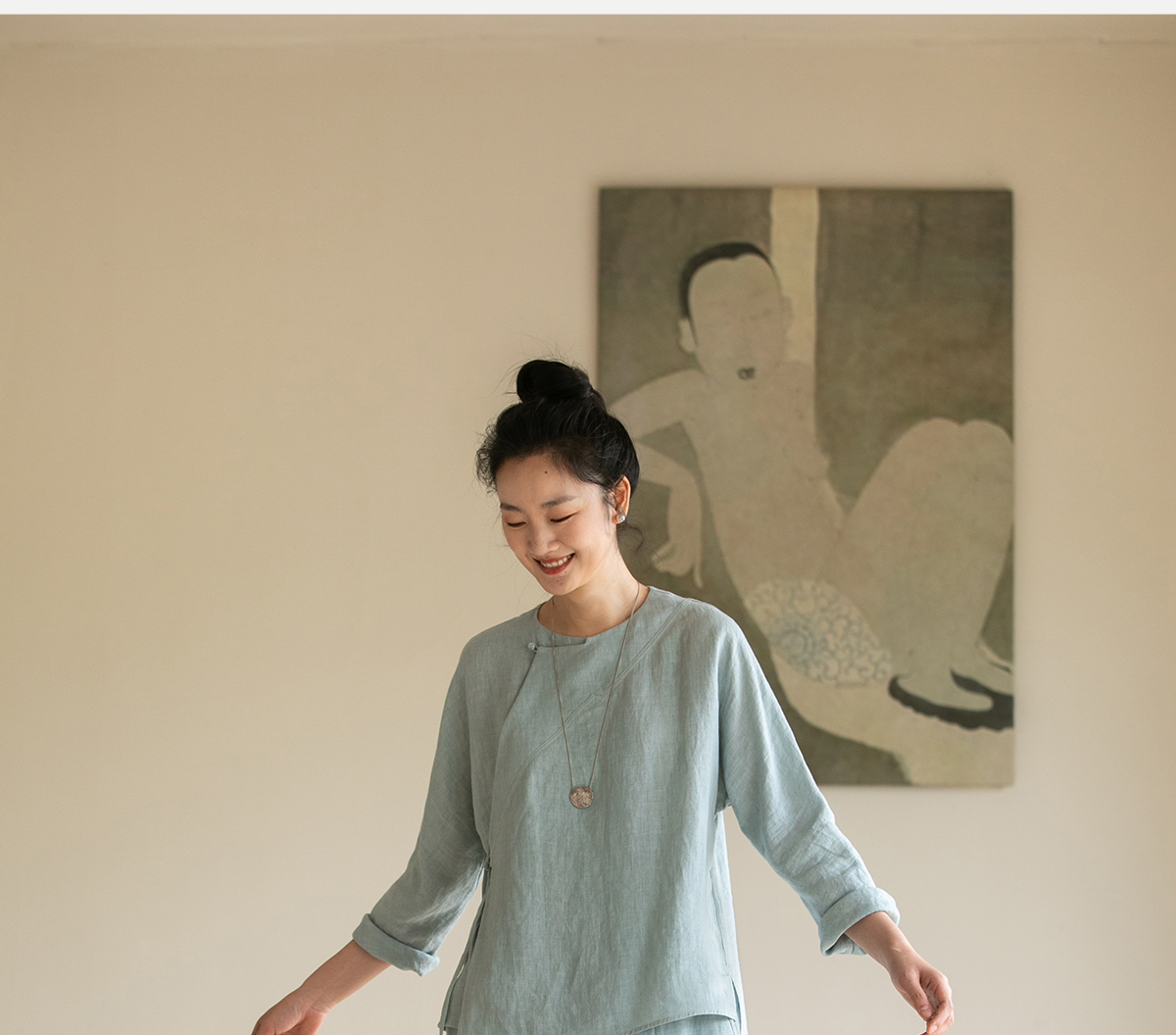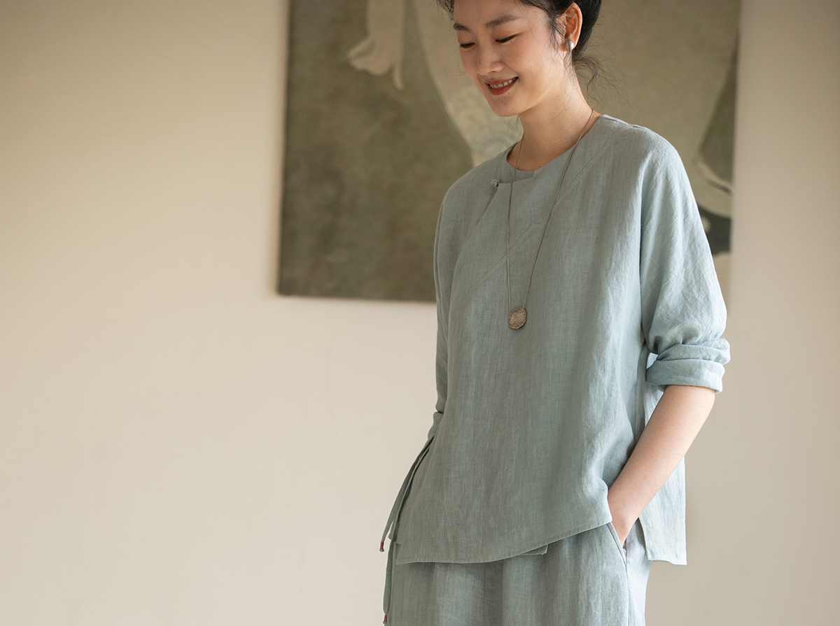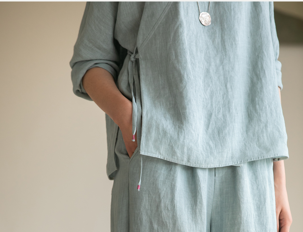 牧衣游原创 佰分佰细软汉麻净色裤子松弛感文艺休闲阔腿裤 雨趣