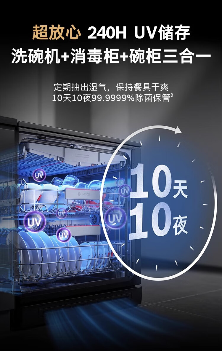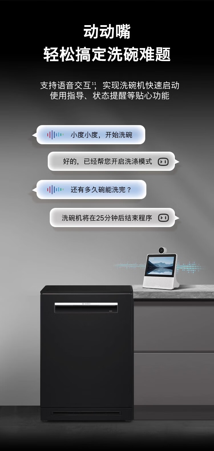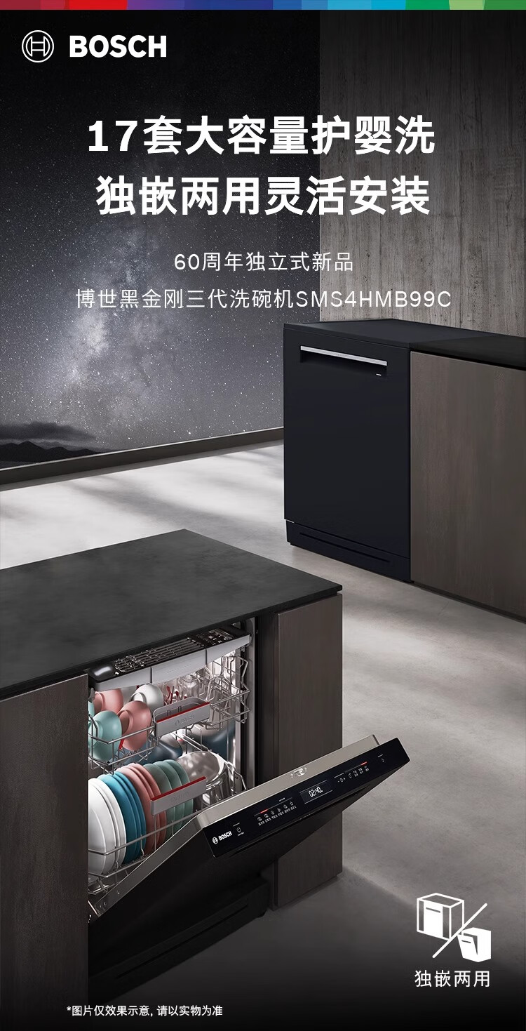 博世(BOSCH)【黑金刚三代】17套大容量家用洗碗机 母婴级除菌消毒 新风环流烘干 独嵌两用 国家级消杀双认证 黑色SMS4HMB99C
