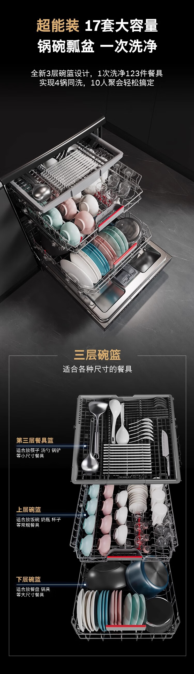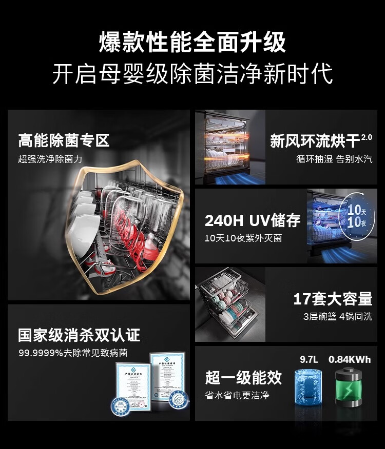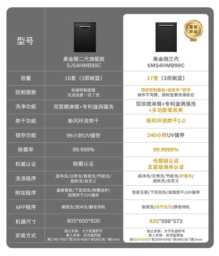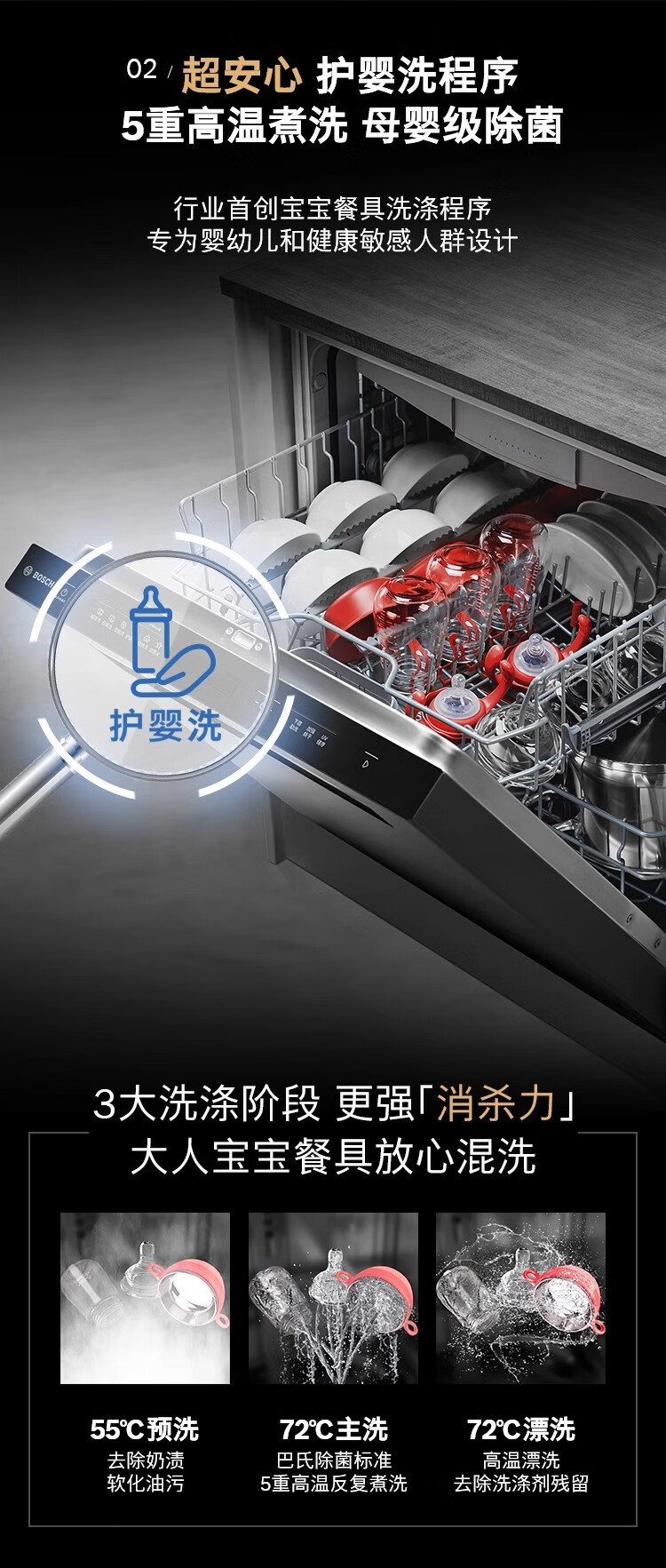 博世(BOSCH)【黑金刚三代】17套大容量家用洗碗机 母婴级除菌消毒 新风环流烘干 独嵌两用 国家级消杀双认证 黑色SMS4HMB99C