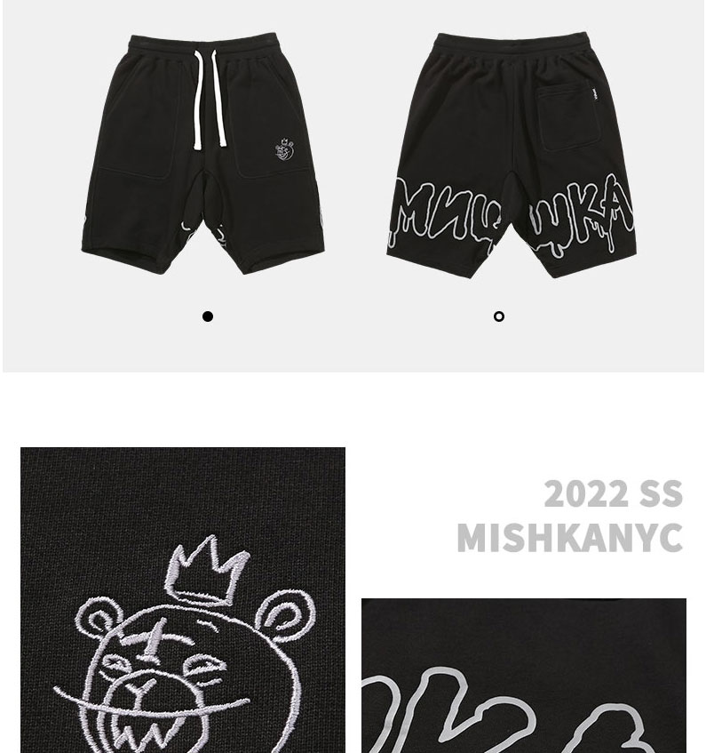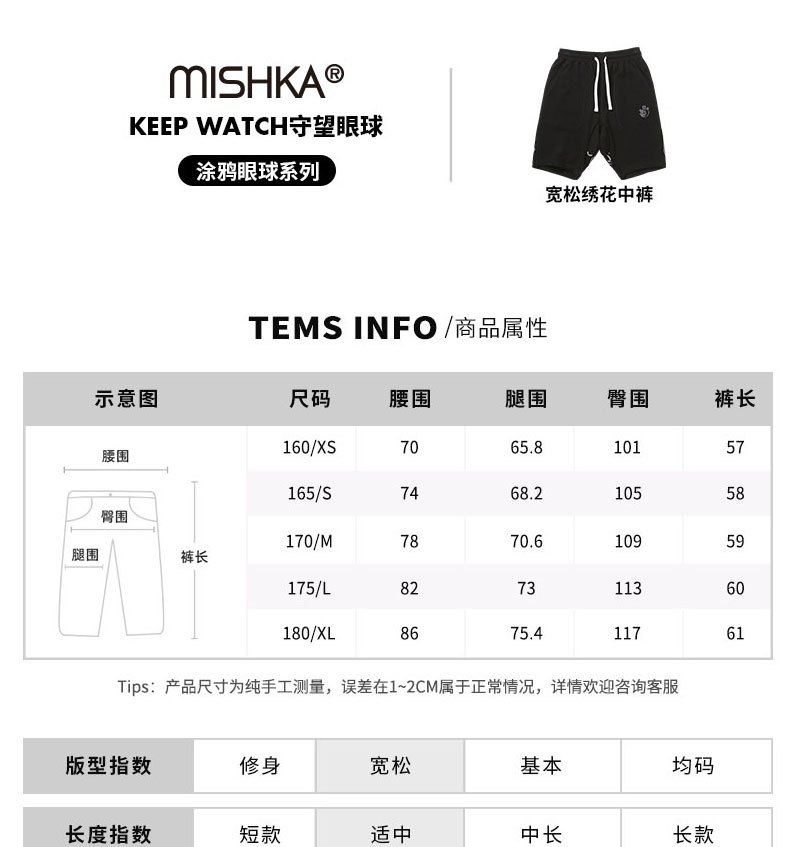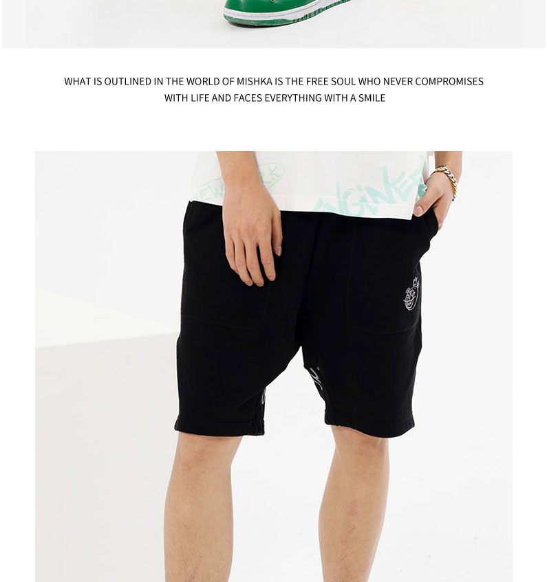 MISHKA大眼球潮牌2022春夏新品 涂鸦眼球纯色休闲运动短裤五分裤M21100829M
