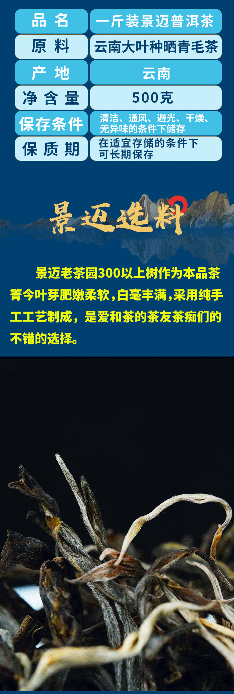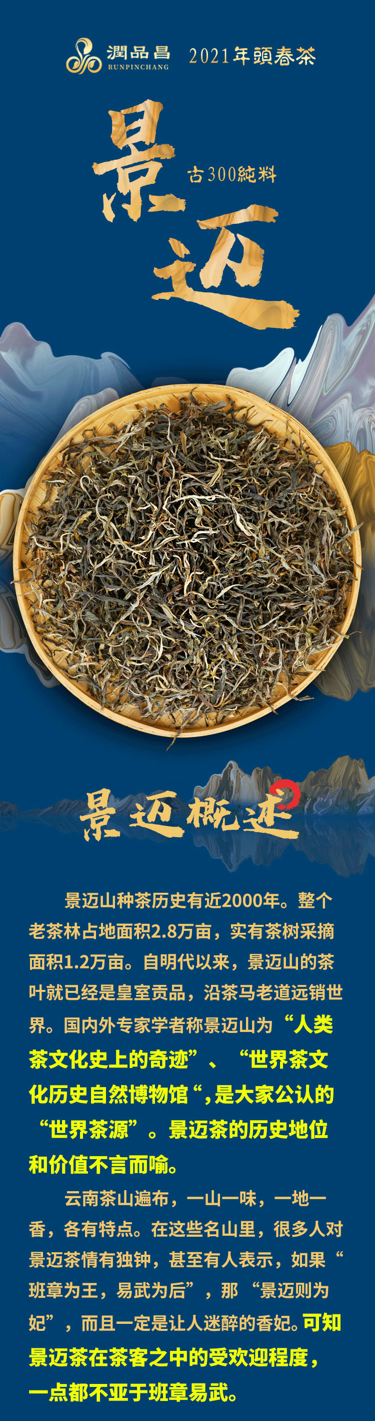 润品昌2021年头春《景迈》古300云南普洱茶区普洱生茶 500克散茶