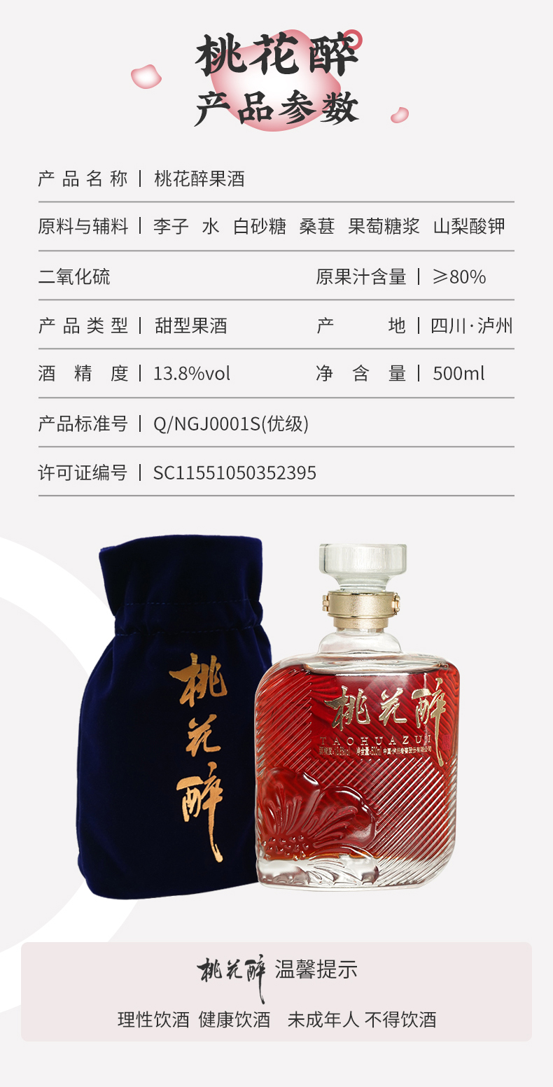 【微醺时刻】13.8度 桃花醉果酒 500ml 泸州老窖官方旗舰店