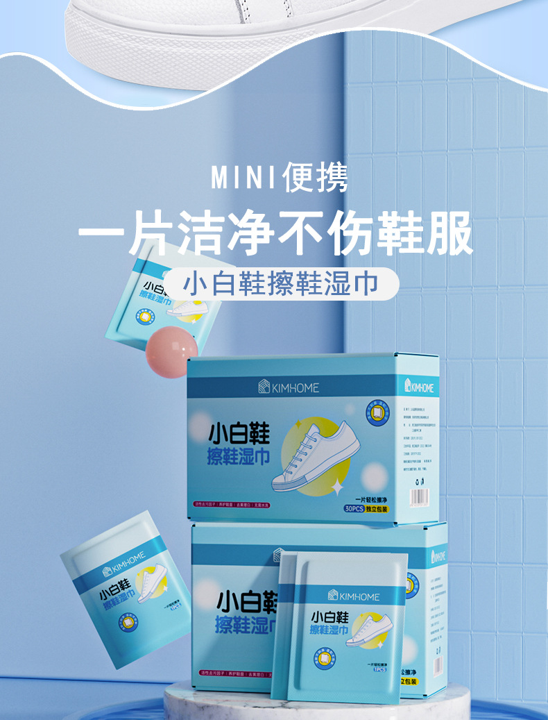 「9.9元包邮!整盒30片」网红一次性擦鞋湿巾 居家日用网红小白鞋免洗湿巾纸便携装去污擦鞋清洁工具