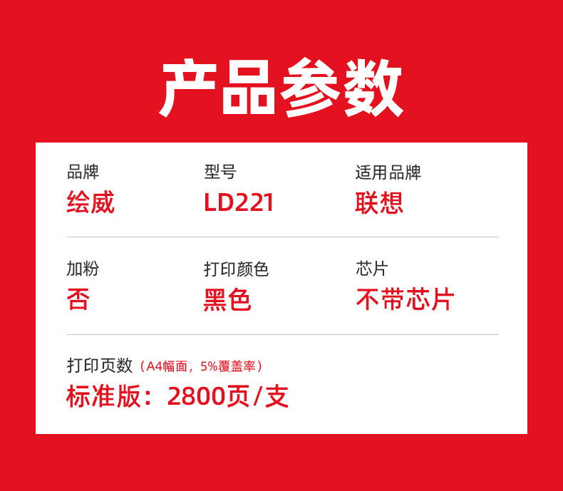 绘威LD221硒鼓 适用联想Lenovo S2201 M2251 F2271H打印机墨盒 粉盒 碳粉盒 墨粉盒