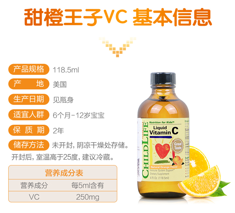 美国童年时光 维生素C营养液VC 增加宝宝抵抗力