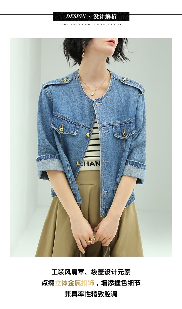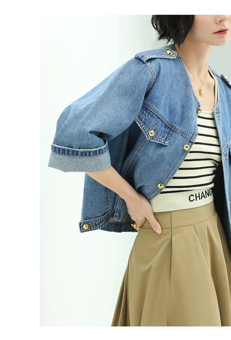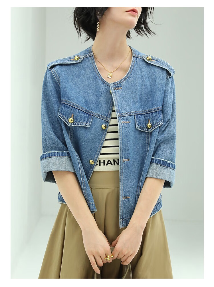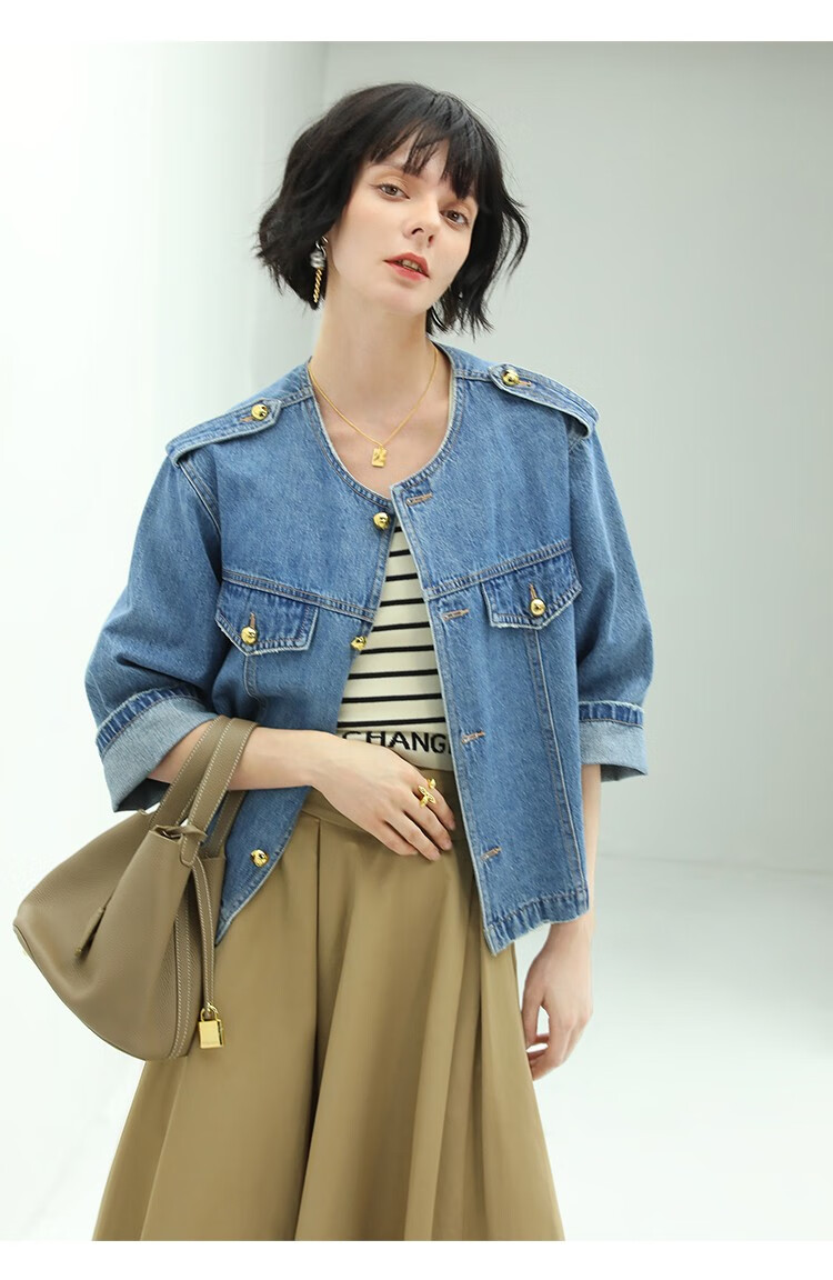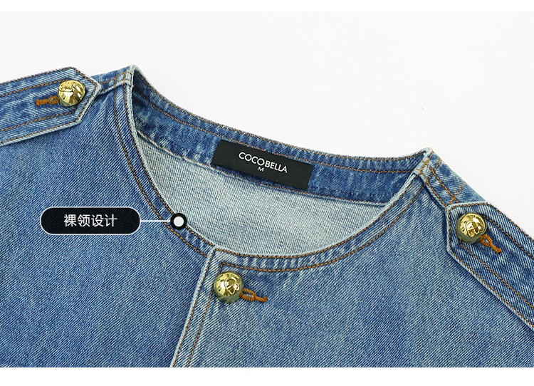 【限时秒杀】COCOBELLA复古水洗裸领牛仔外套女秋时尚九分袖短款上衣DN610