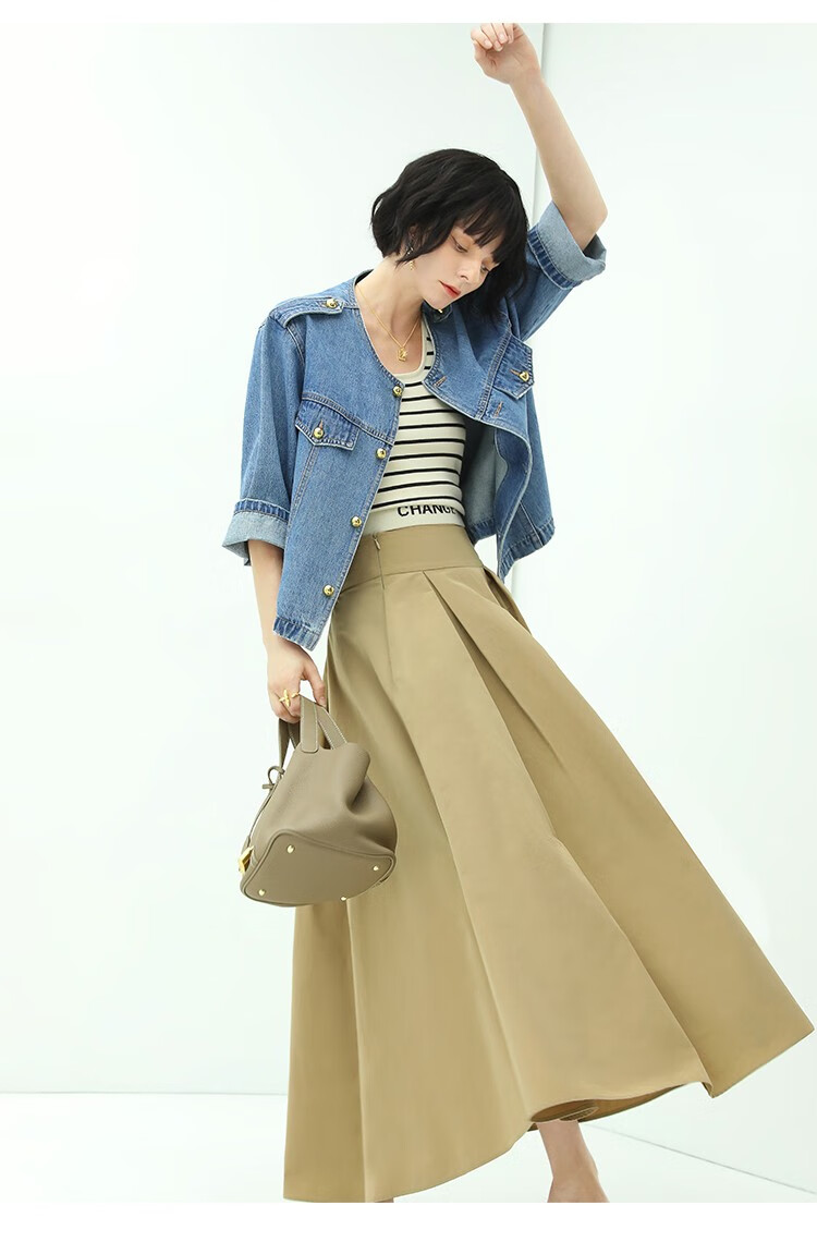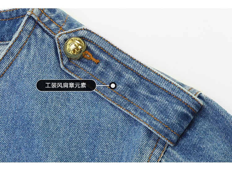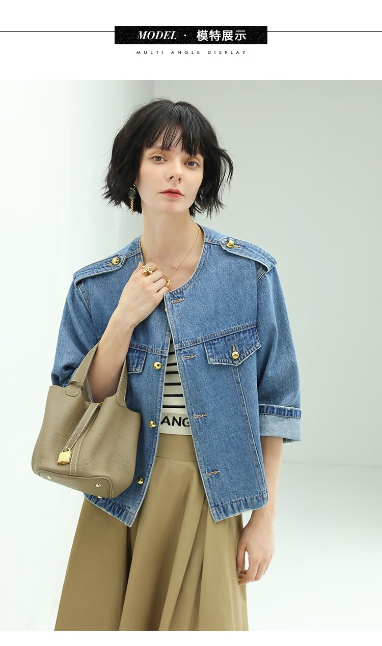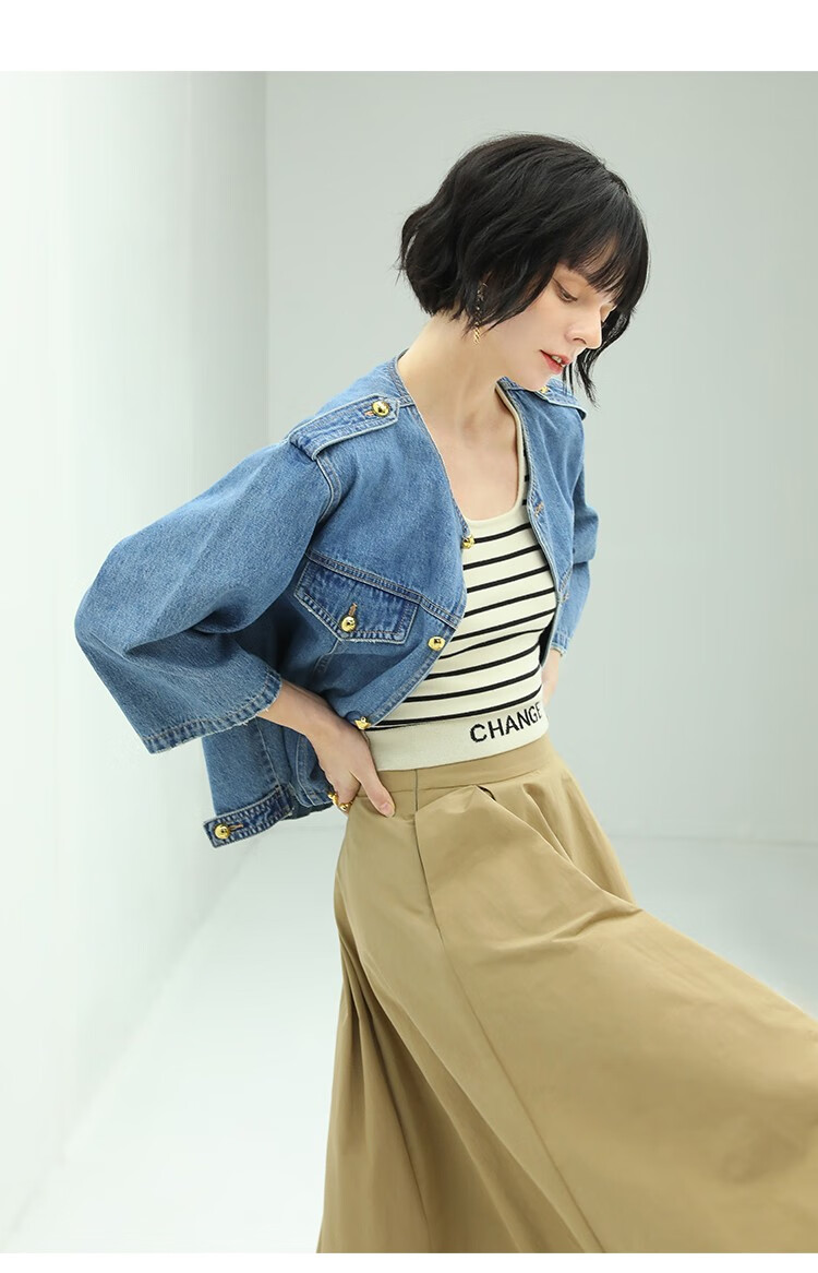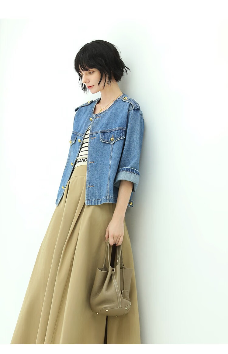 【限时秒杀】COCOBELLA复古水洗裸领牛仔外套女秋时尚九分袖短款上衣DN610