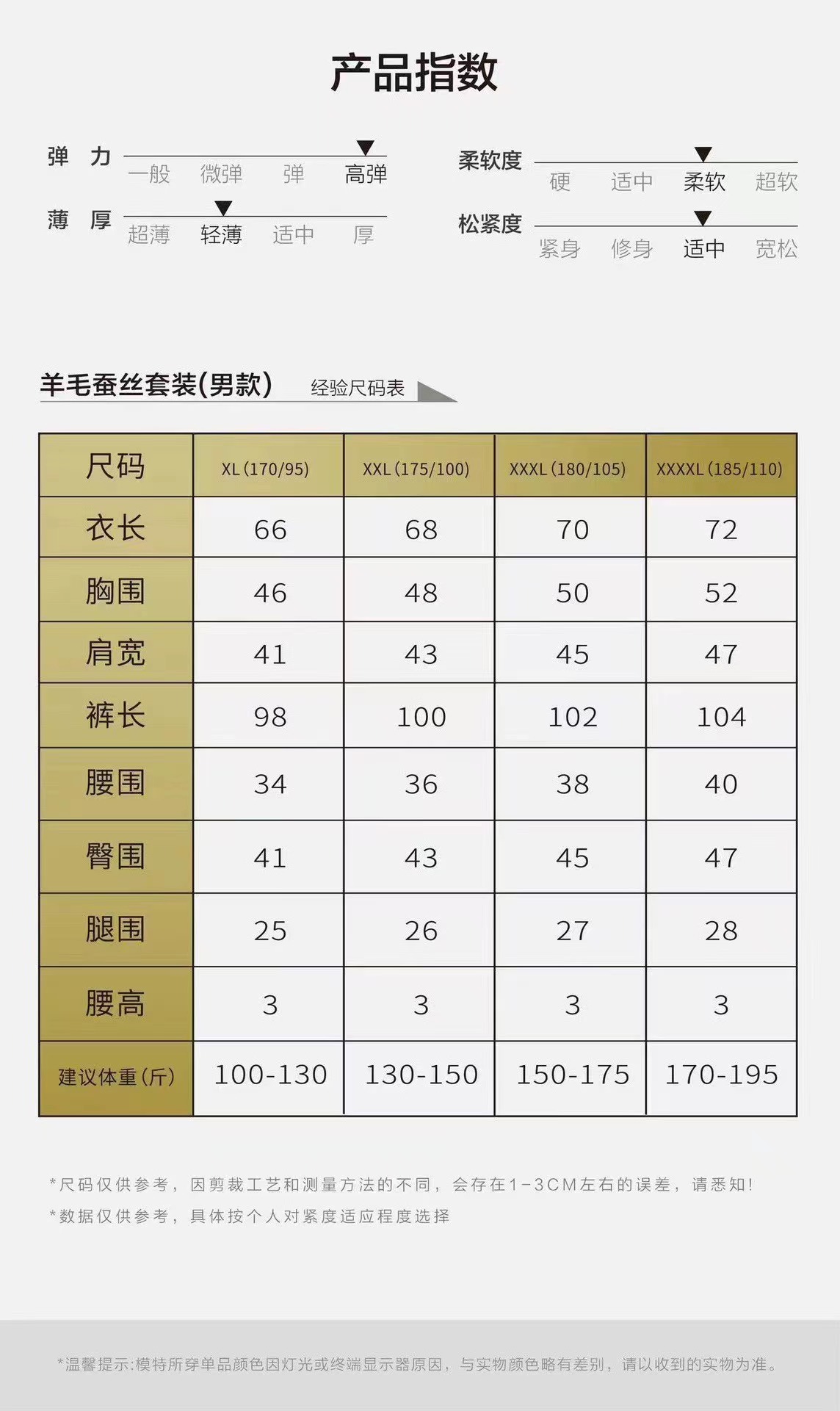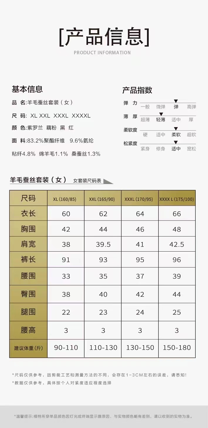 【商品名称】富丽德羊毛蚕丝情侣保暖套装