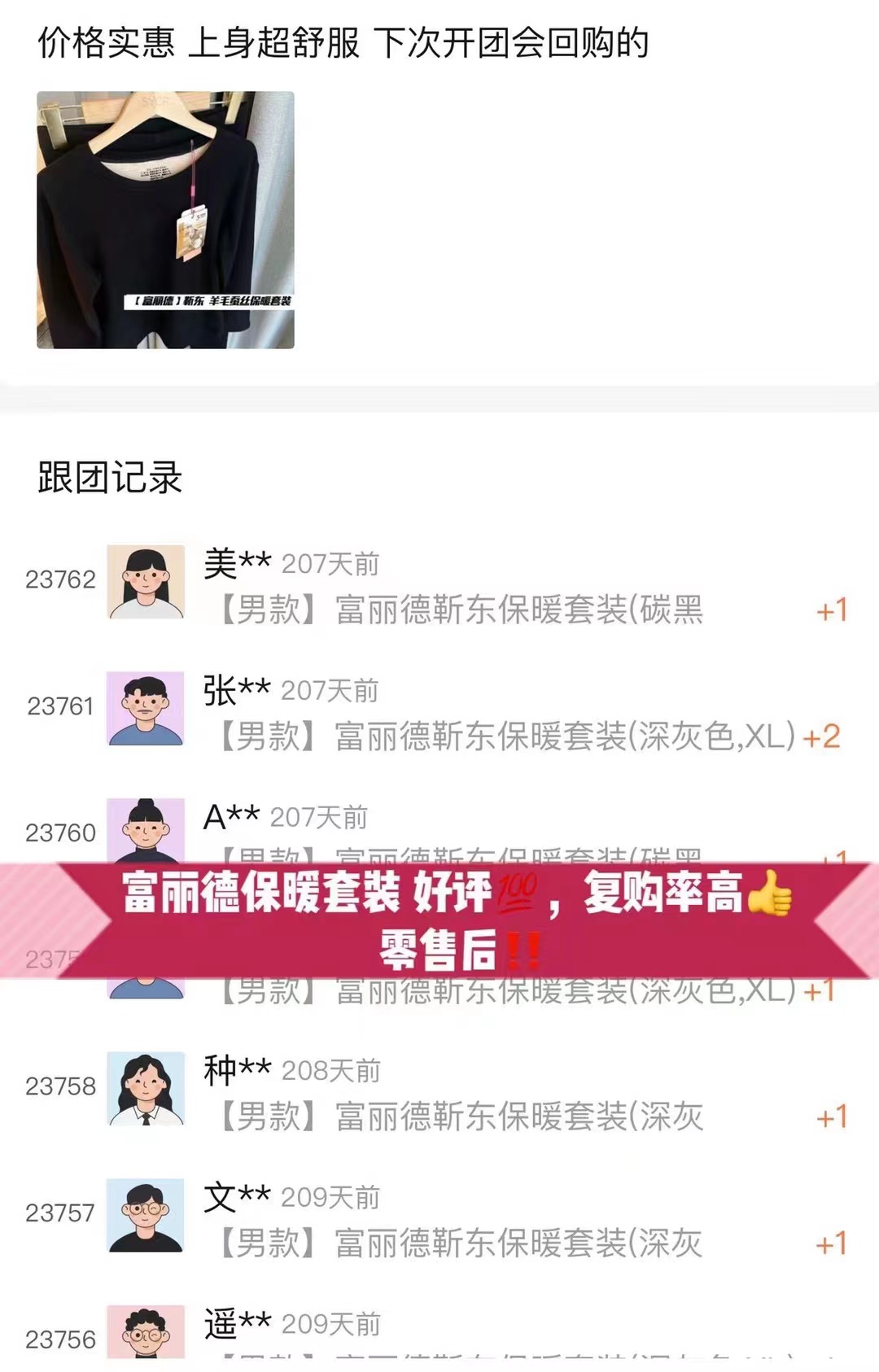 还记得去年的富丽德保暖套装吗?好评💯回购率高,售后少