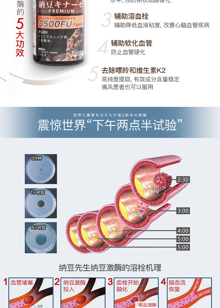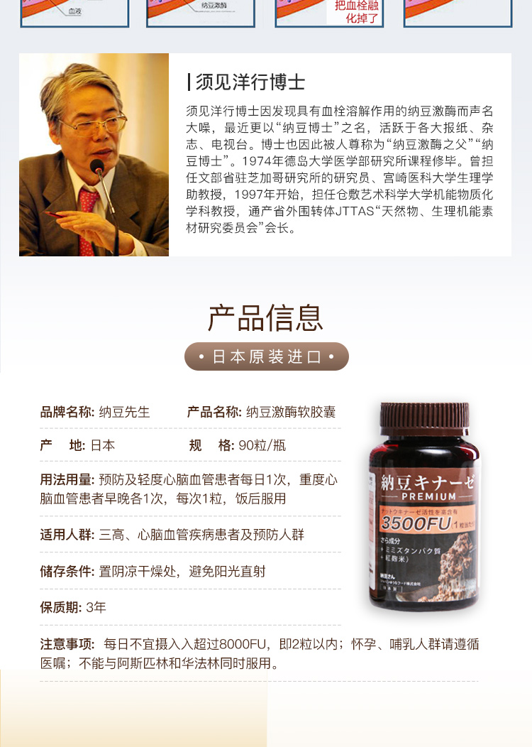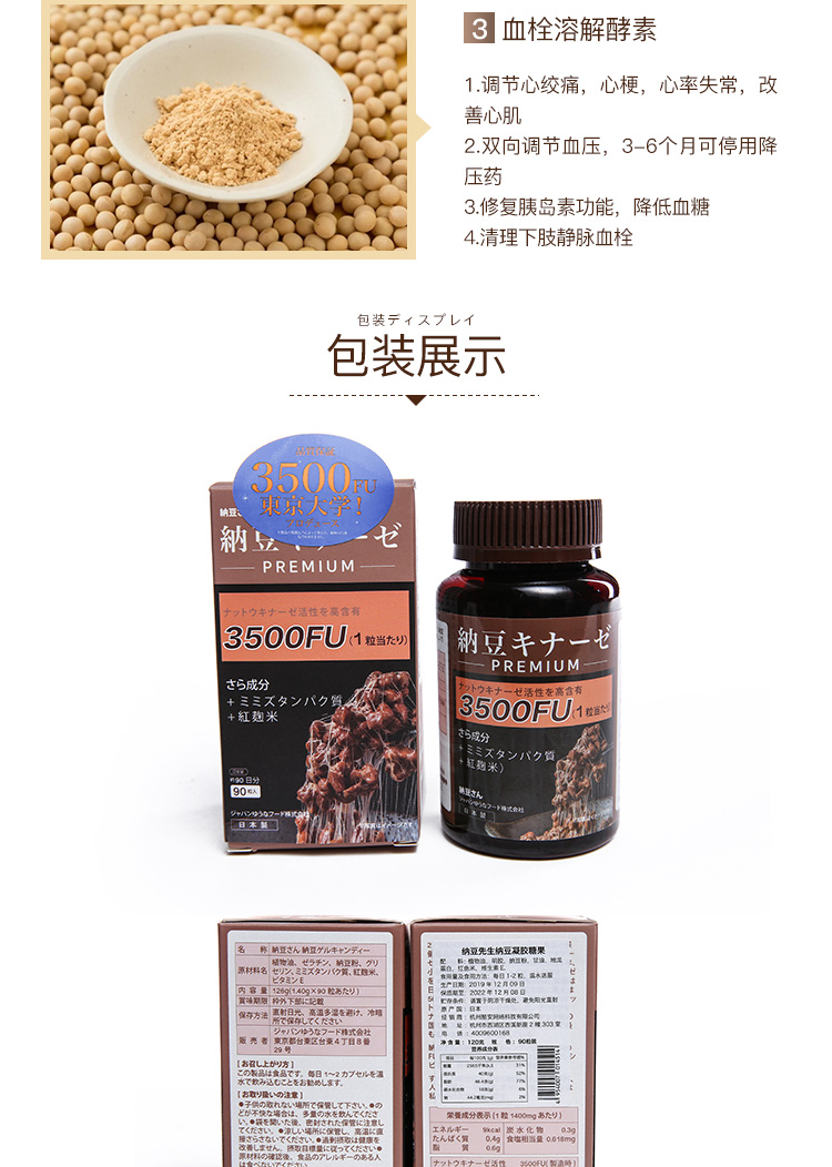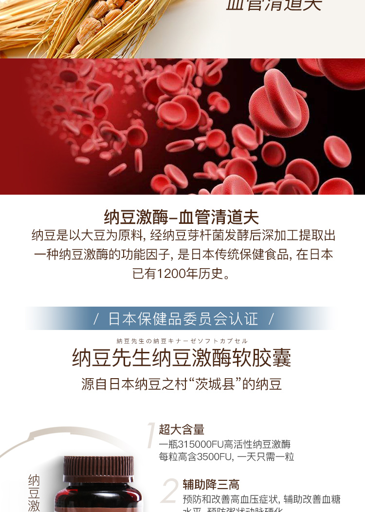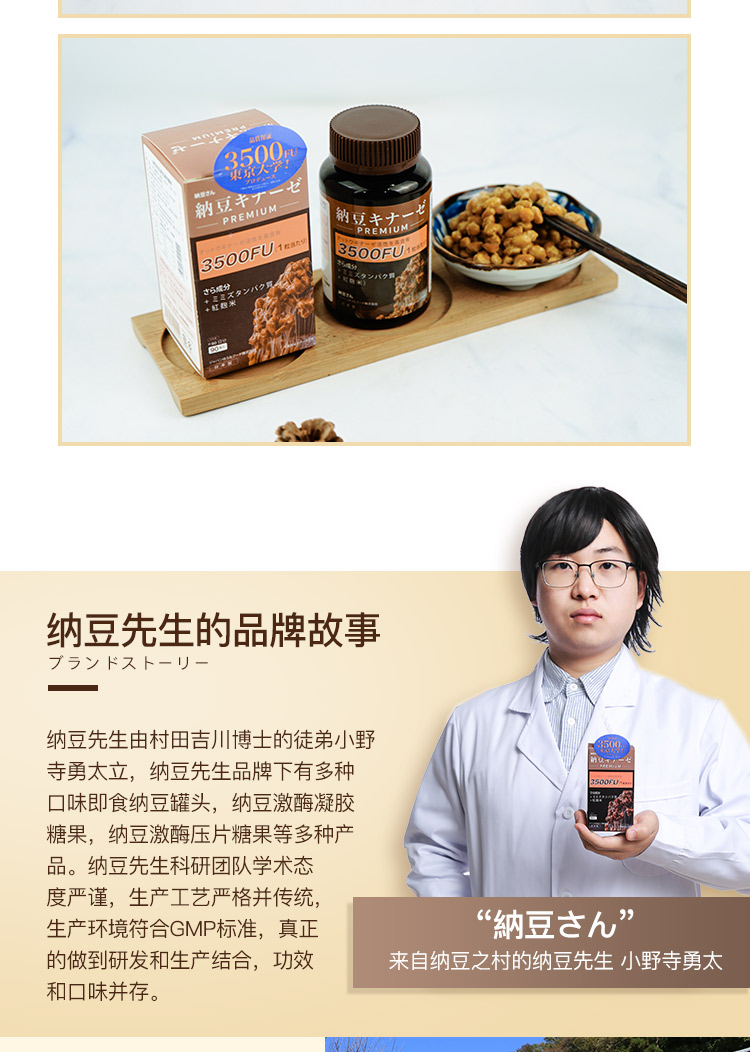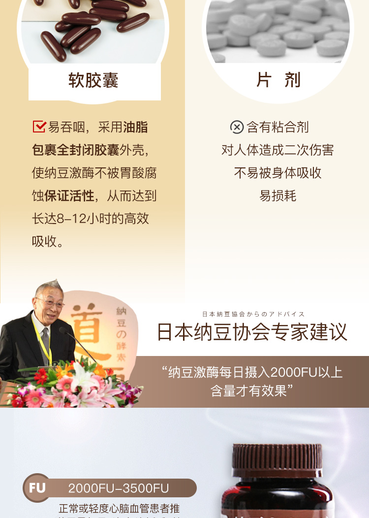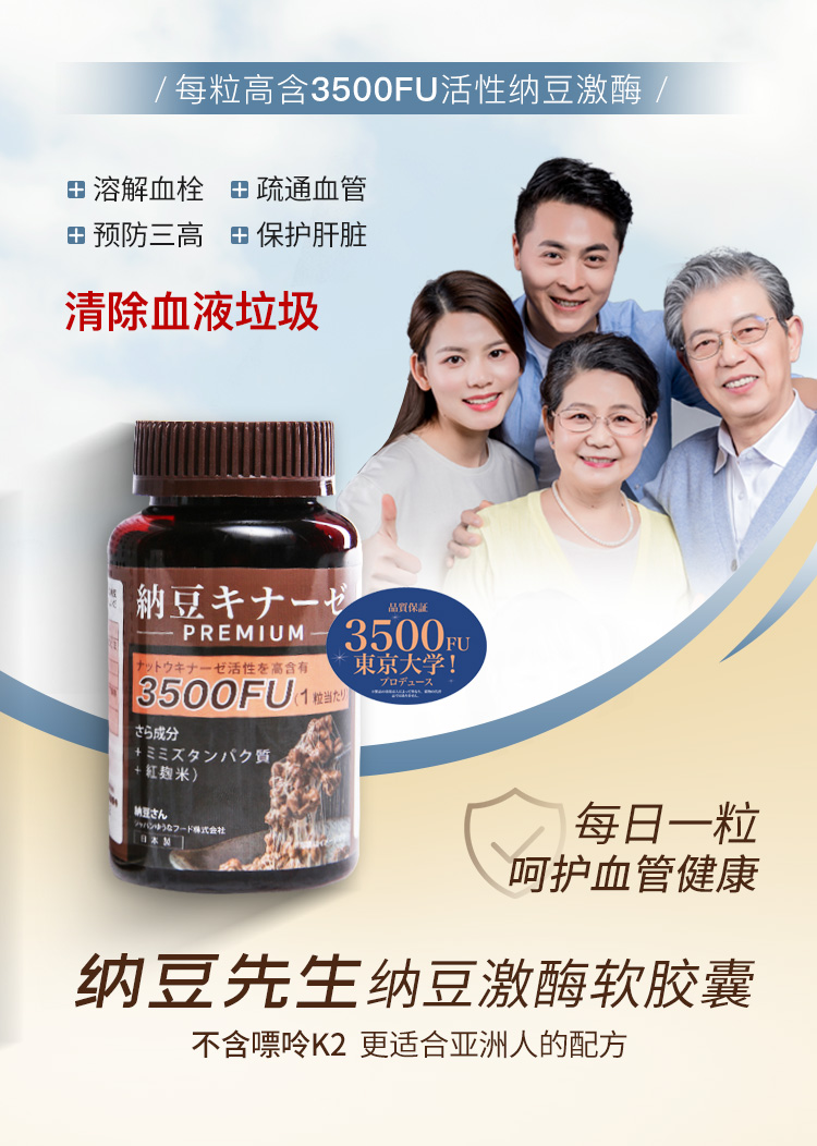 日本纳豆先生 | 国宝级活性纳豆激酶软胶囊3500+FU高含量血管清道夫