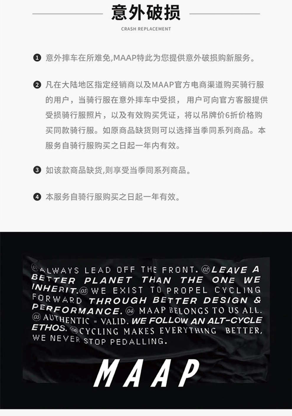 - MAAP作为澳洲功能性骑行服,其出色的时尚设计元素为骑行生活增添色彩。MAAP在为专业车手提升性能表现方面也毫不妥协。