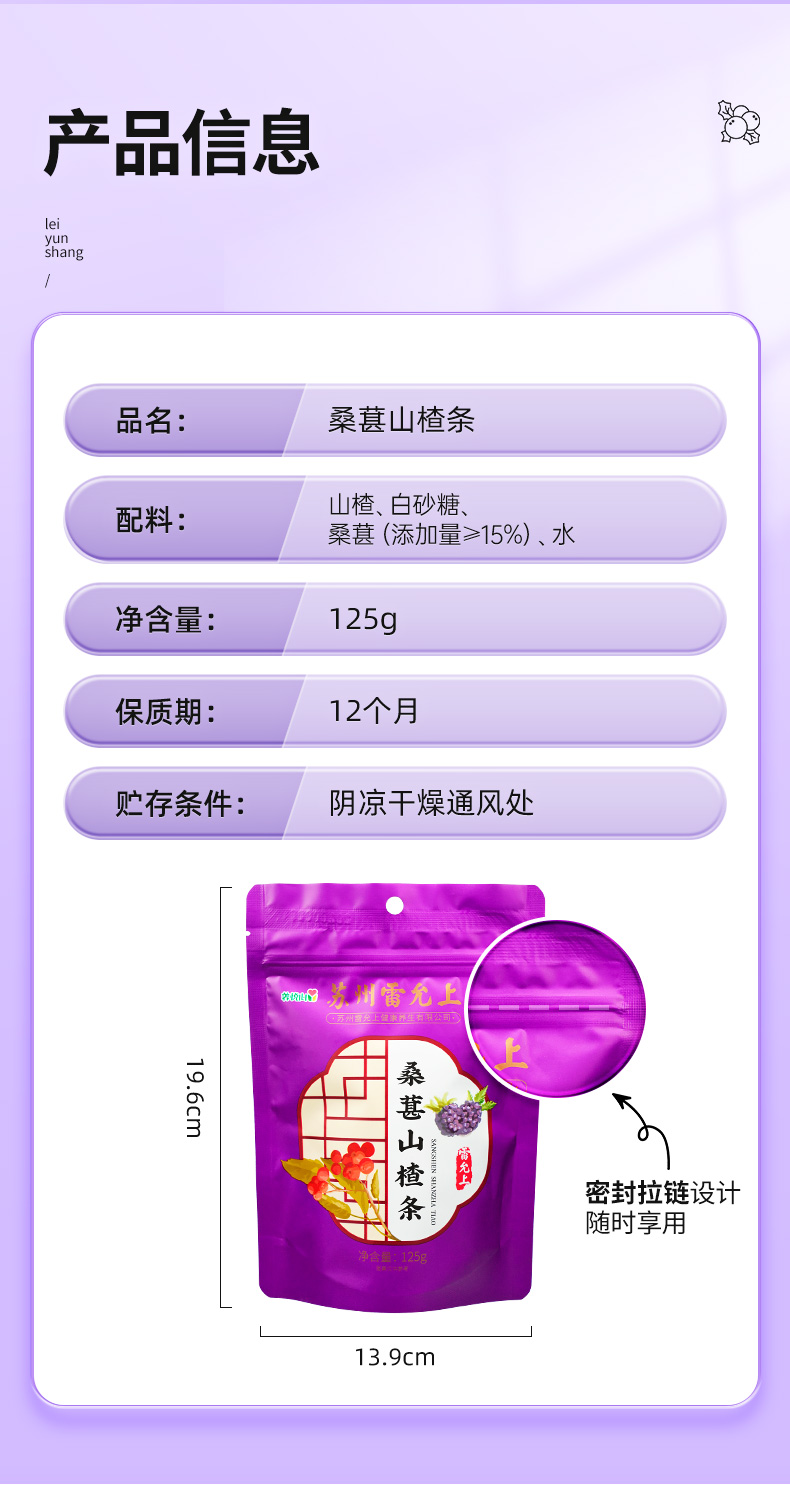 雷允上桑葚山楂条125g*3