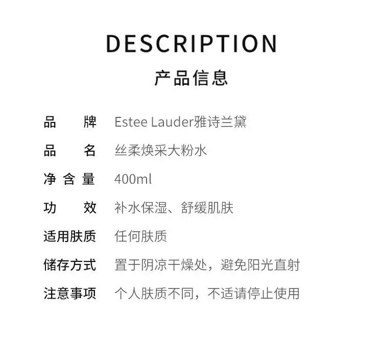 雅诗兰黛第二代粉水400ml+50ml*6爽肤水补水保湿舒缓化妆水护肤