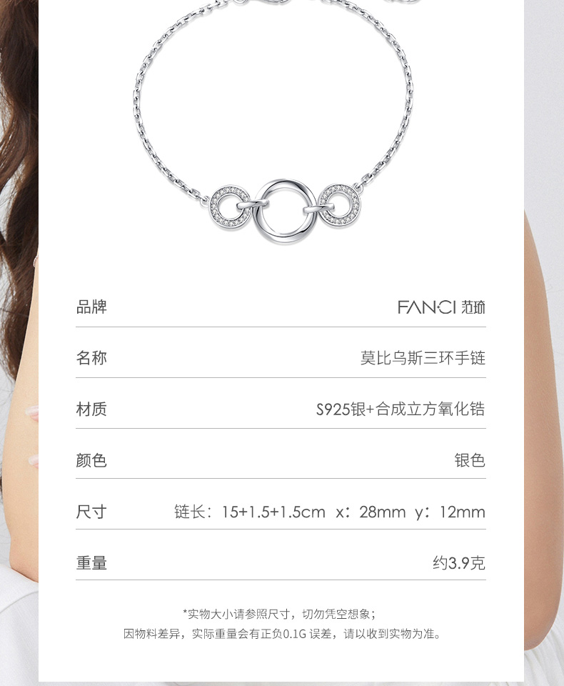 Fanci范琦 S925银 【三环】手链莫比乌斯系列时尚轻奢小众