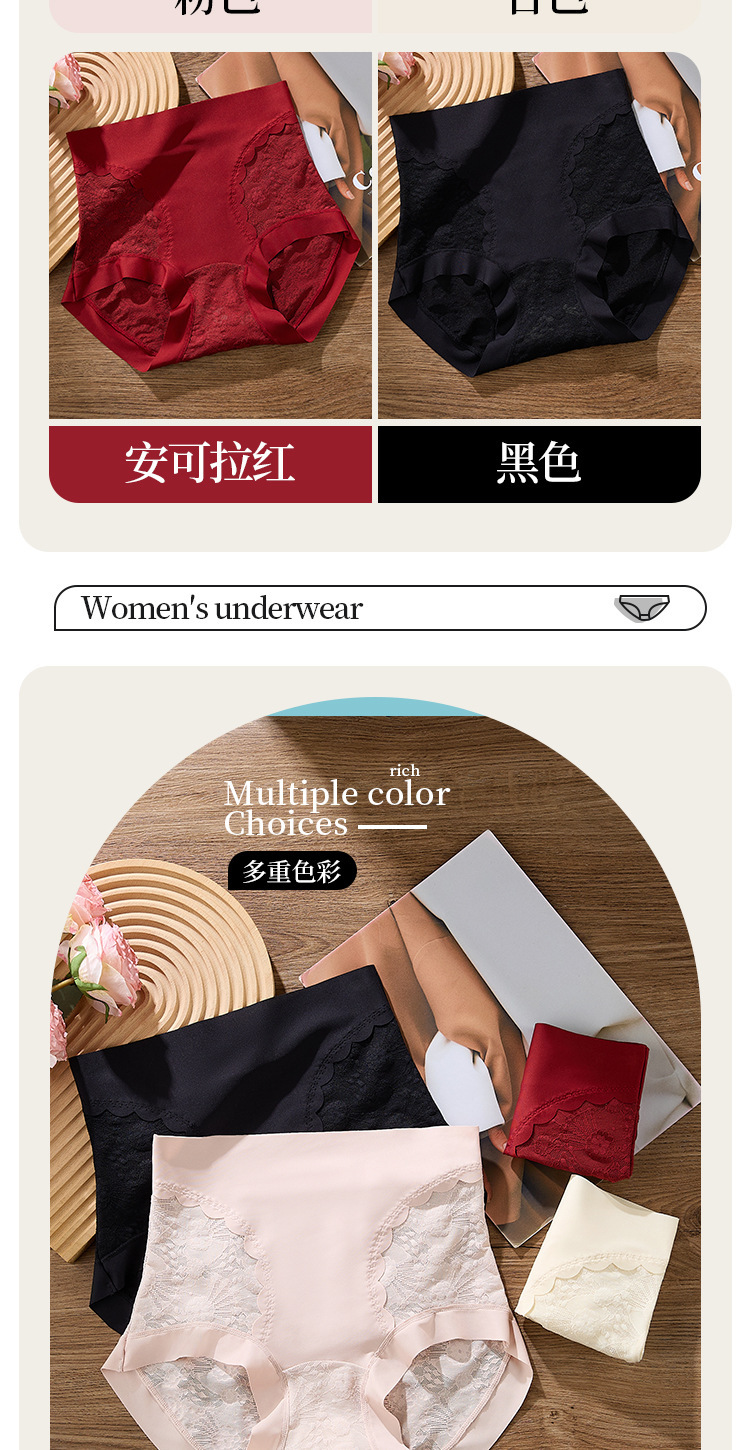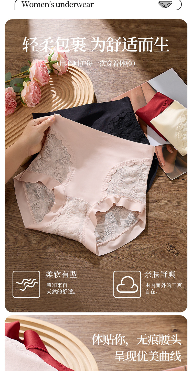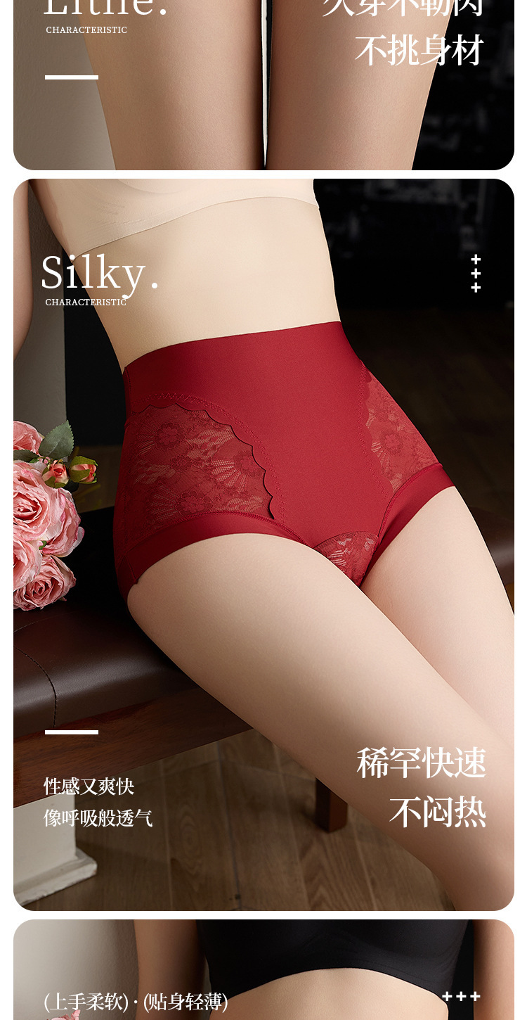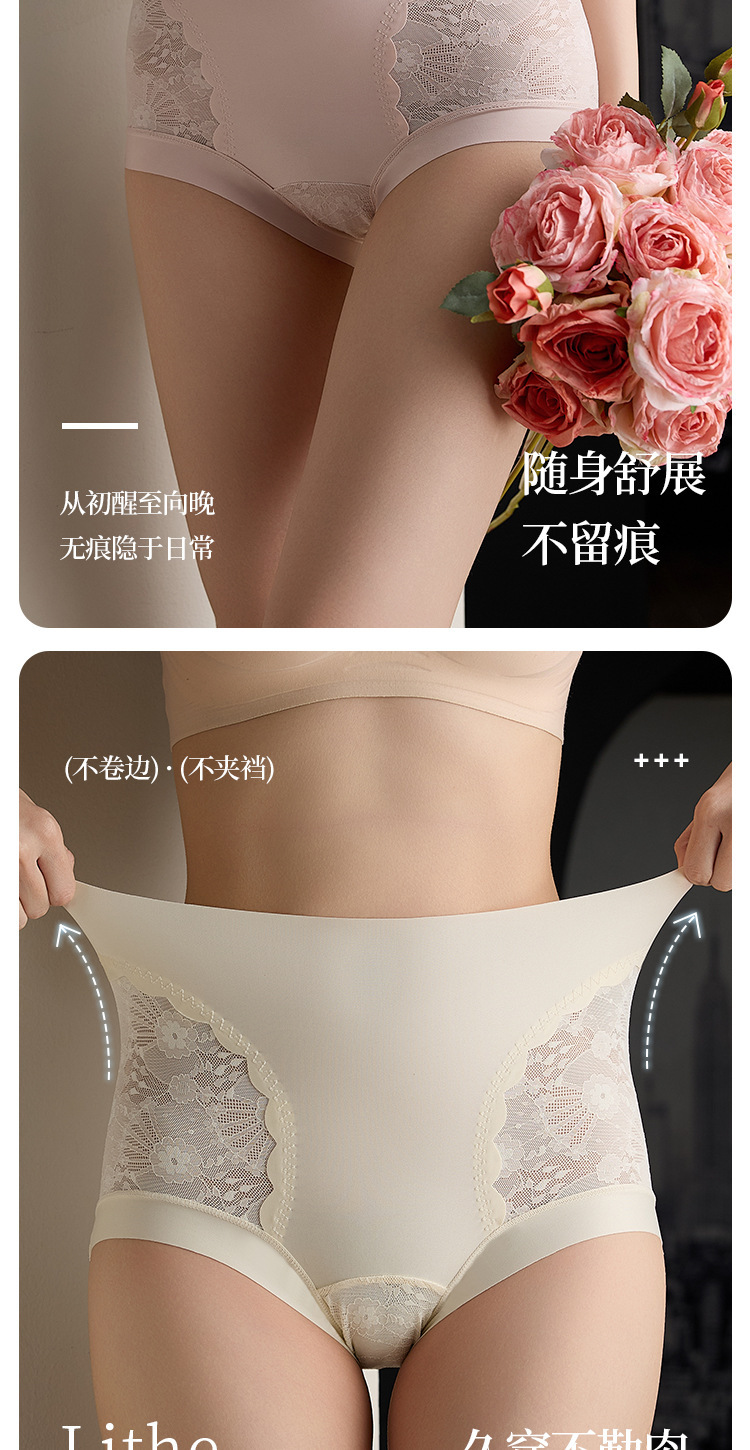 轻薄裸感夏天内裤女大码性感蕾丝高腰收腹内裤女不夹臀无痕冰丝三角裤