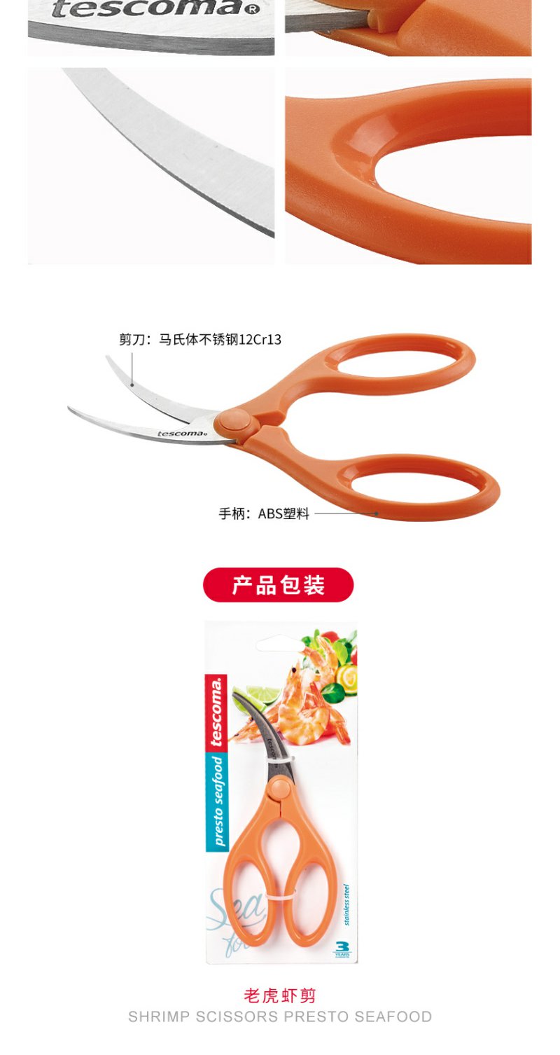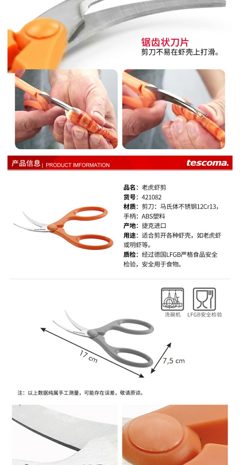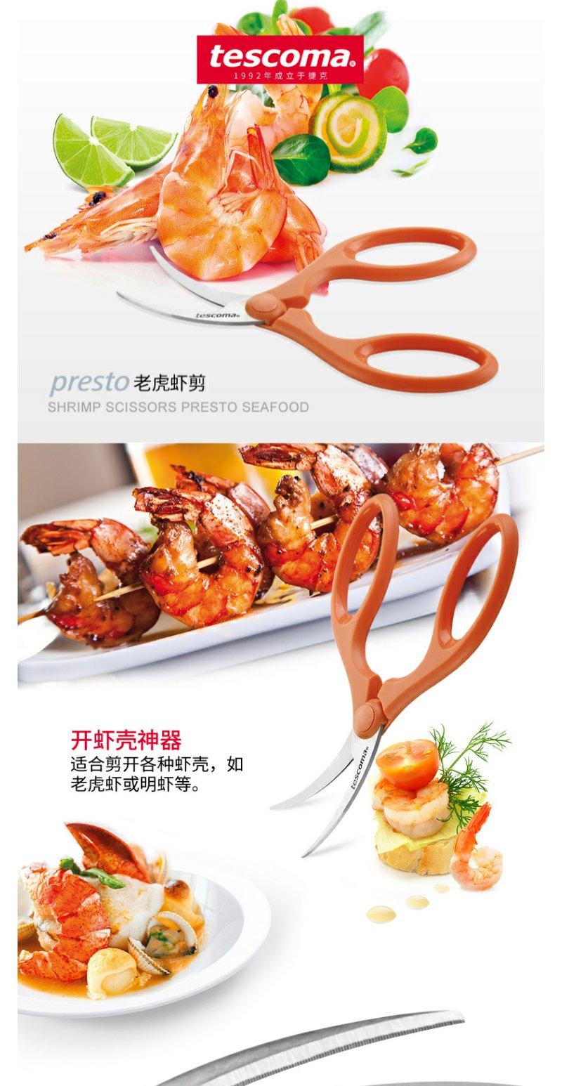 捷克进口/tescoma SEAFOOD系列厨房用剥虾皮剪刀 去虾线工具 清理虾肠工具 龙虾剪