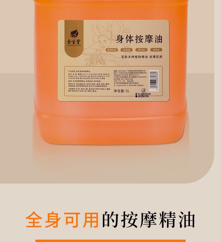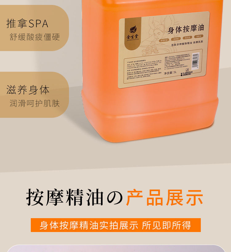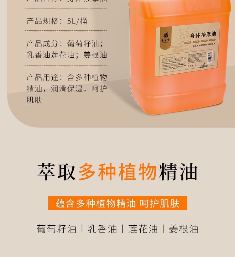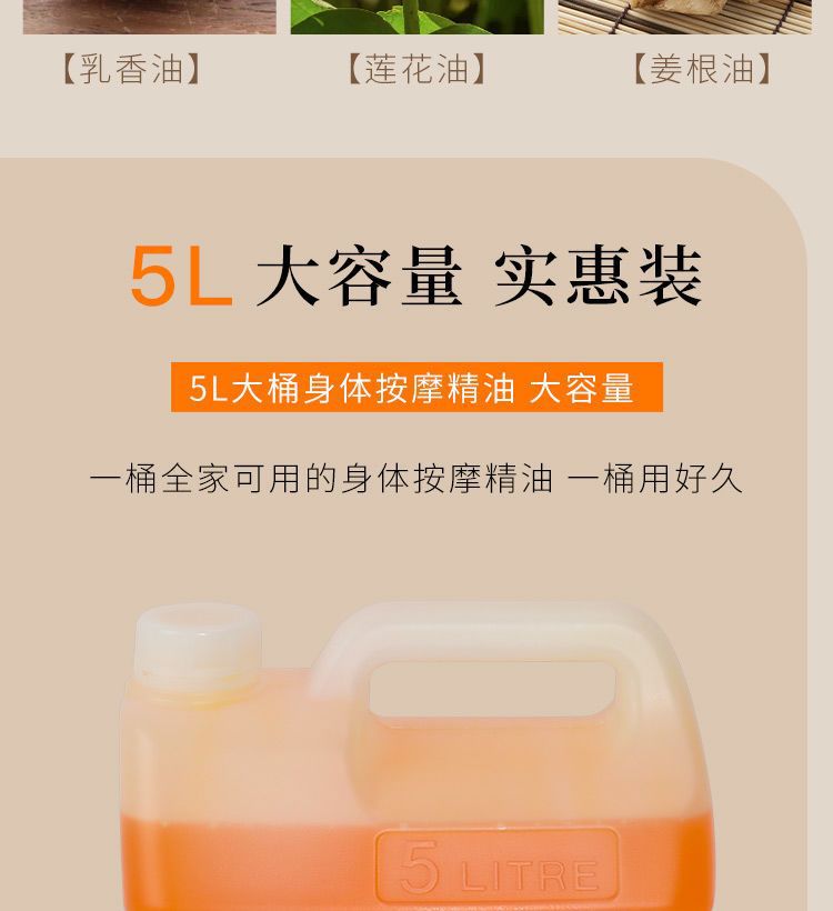 5斤大桶身体按摩精油疏通经络刮痧开背推背舒缓肩颈美容院spa专用