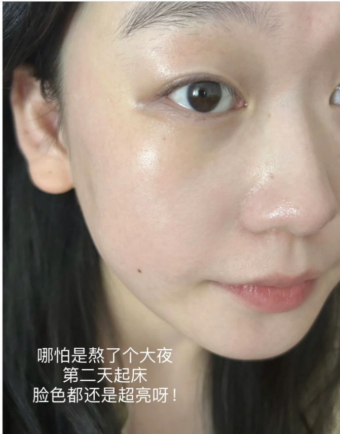 用完隔天睡醒脸超级水嫩,上妆也很服帖~没化妆气色也很好!