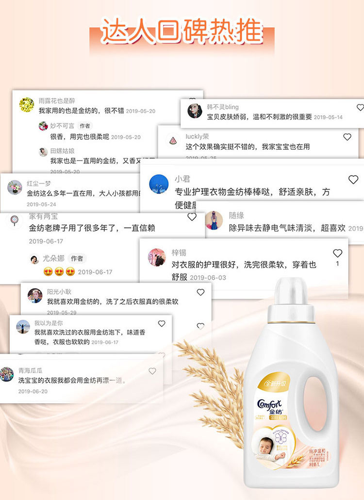 金纺柔顺剂衣物护理剂亲肤系列2L+300ML
