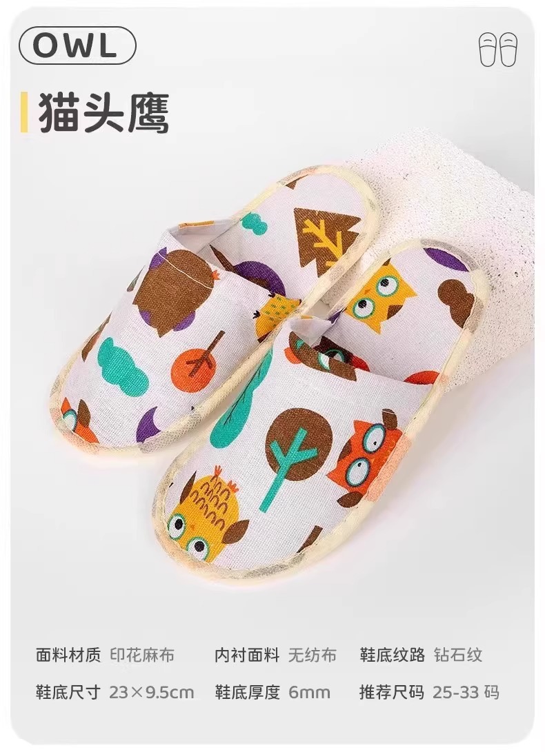 一次性拖鞋儿童卡通棉麻布加厚底防滑酒店宾馆民宿旅行便携拖鞋