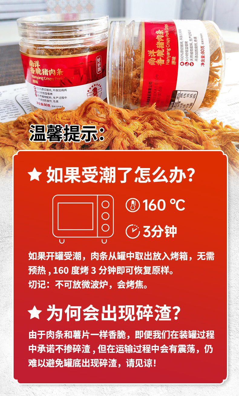 好好牌南洋香脆猪肉条原味鲜猪肉干净配料脆猪肉条80g/罐