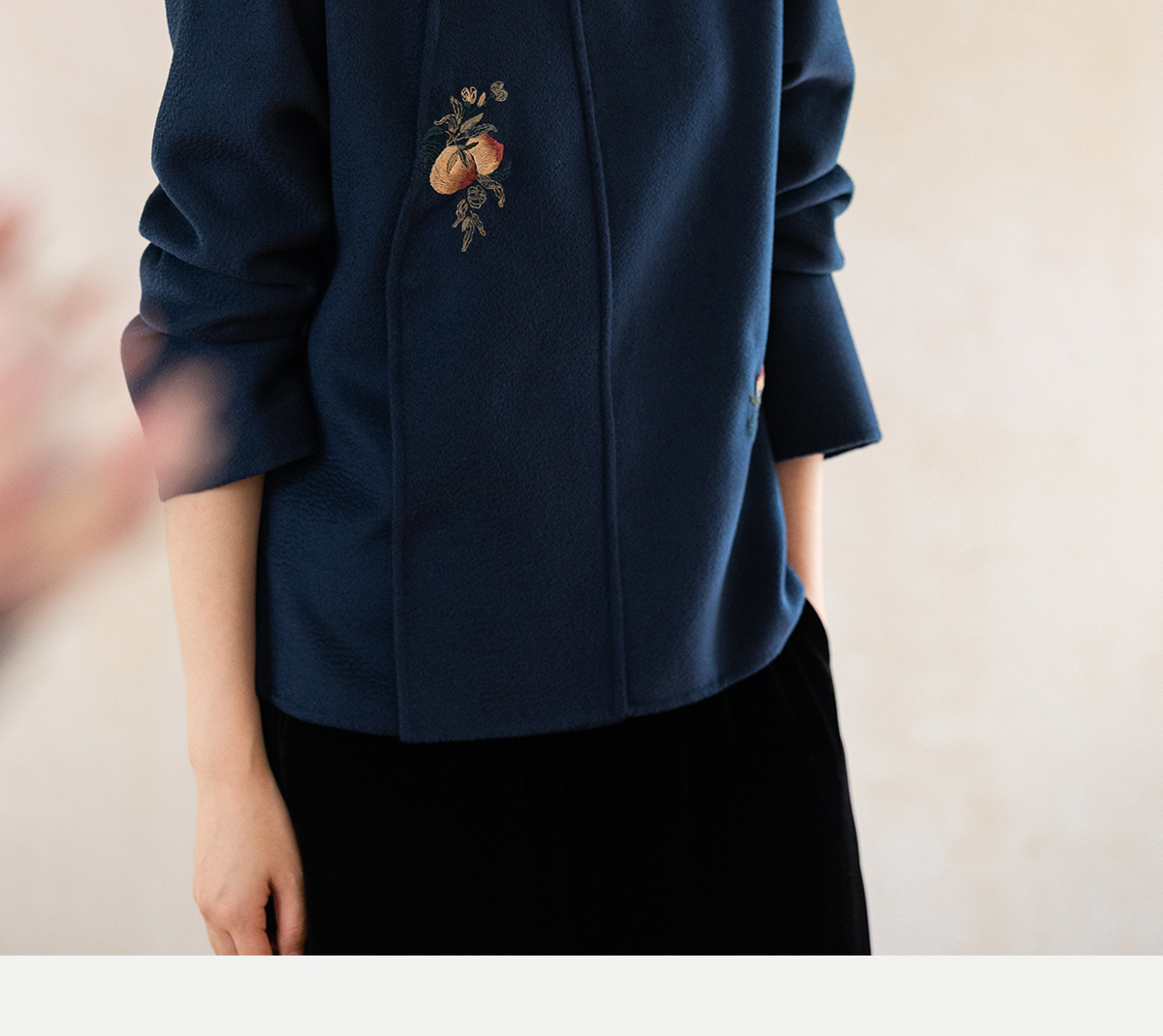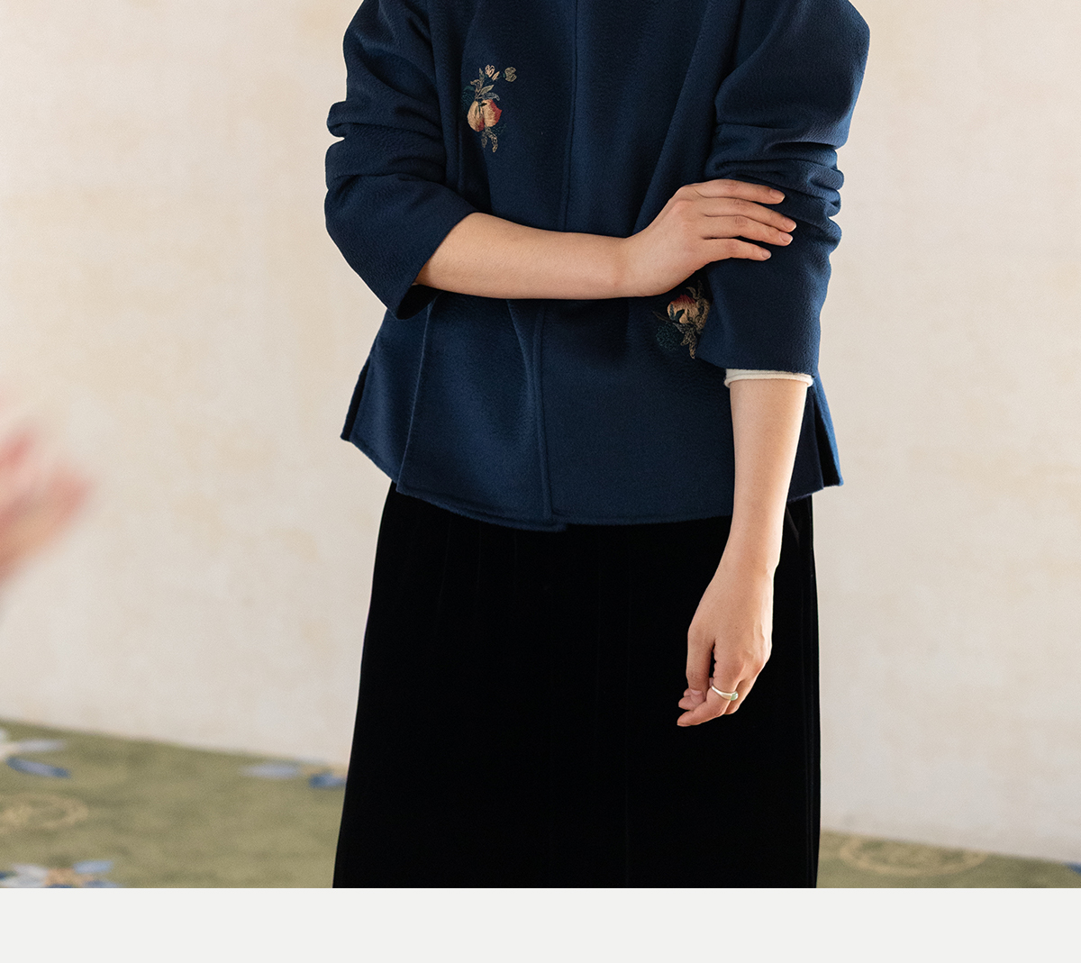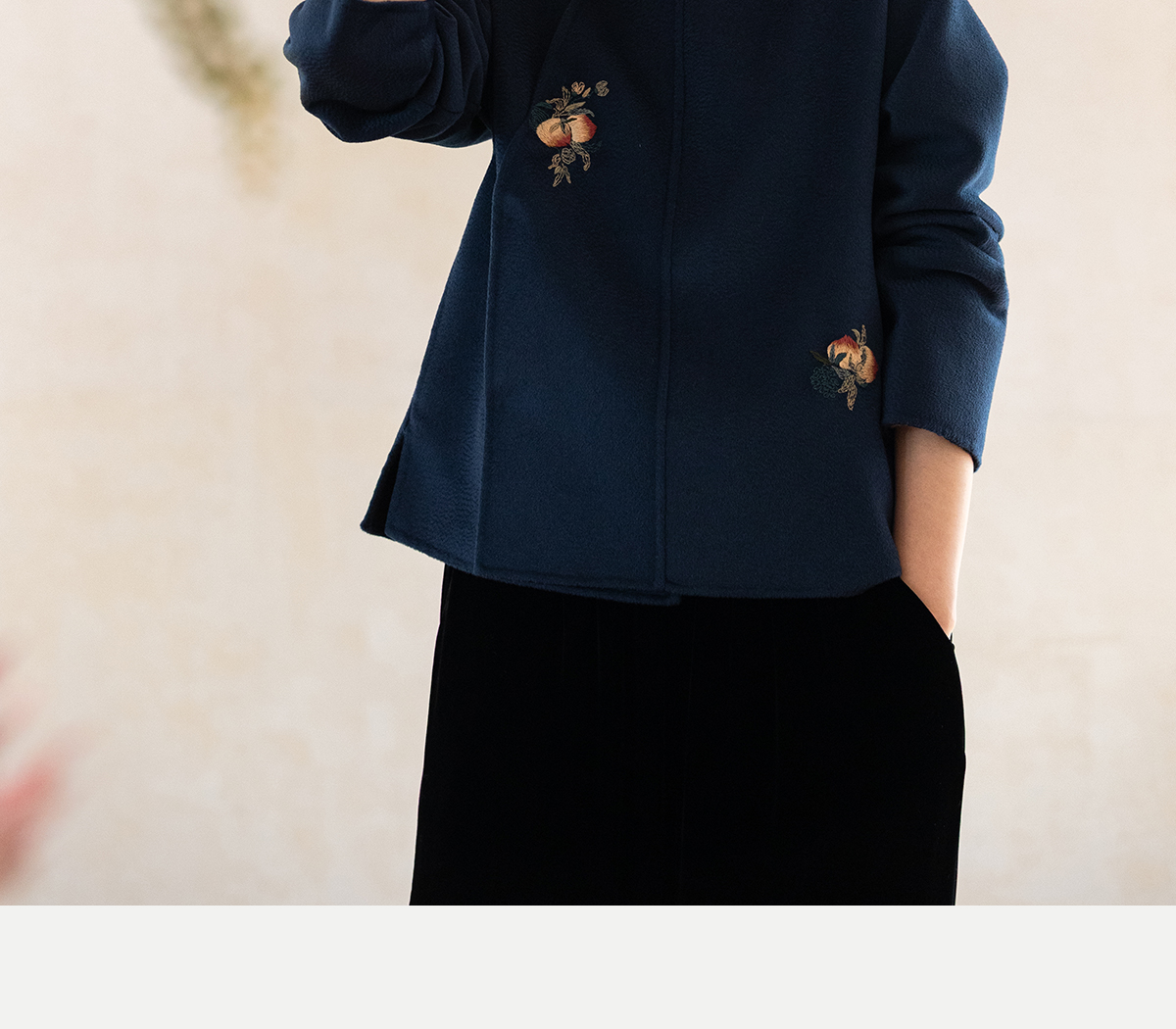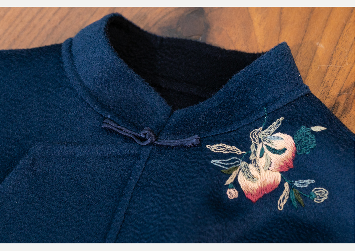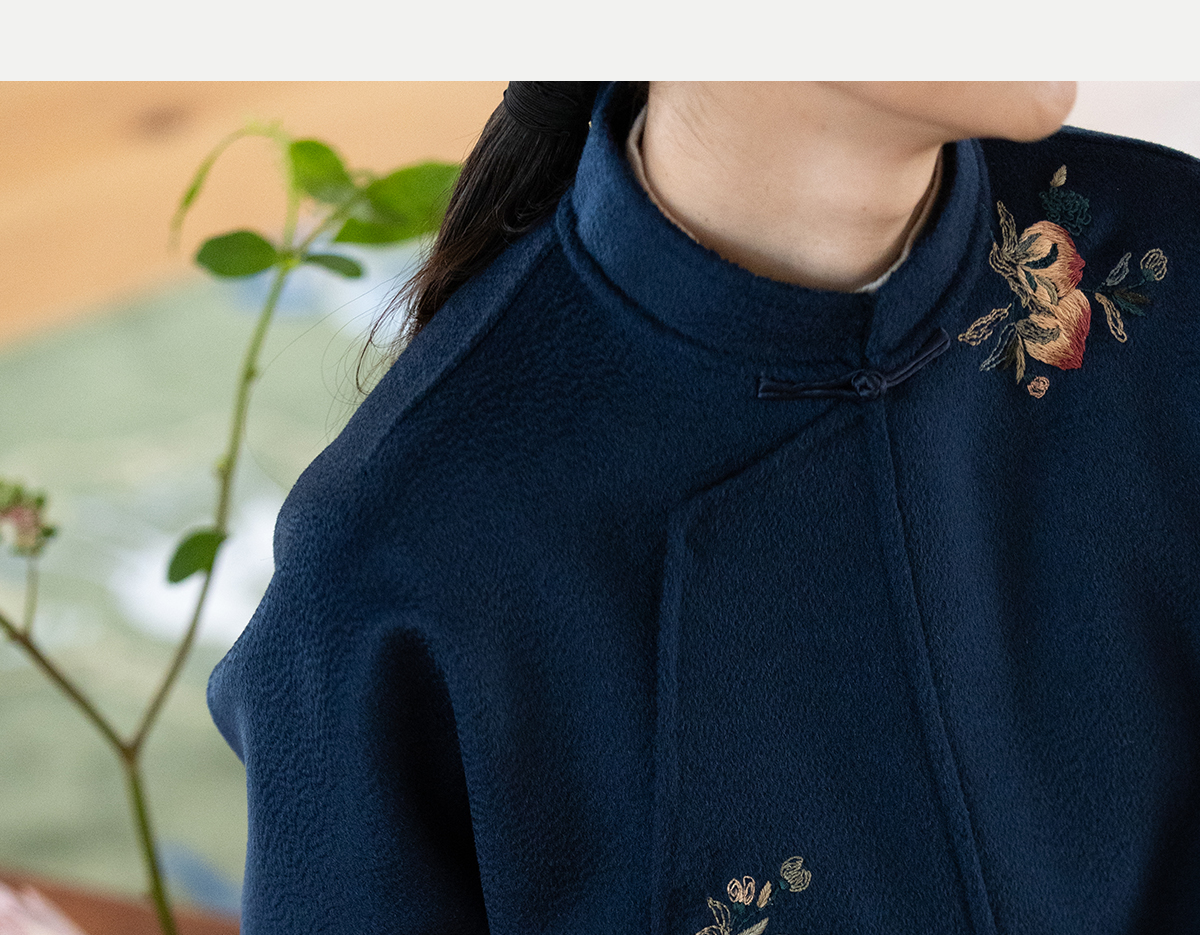 牧衣游原创 进口澳毛毛呢外套手工刺绣双面呢复古新中式开衫 无暇