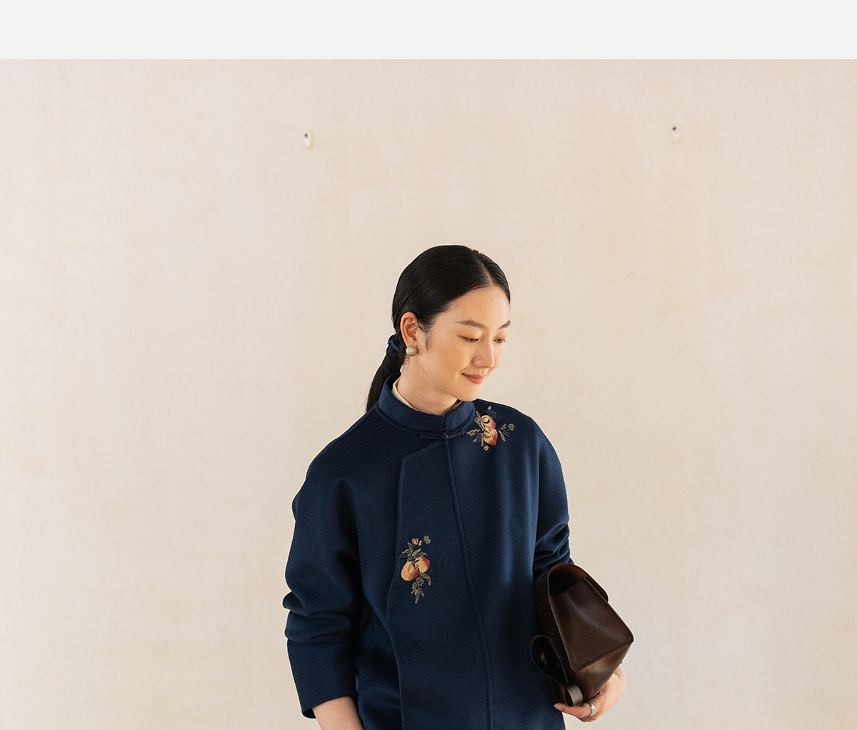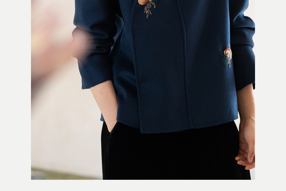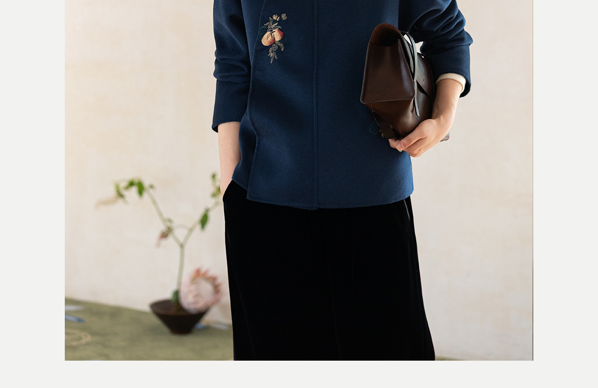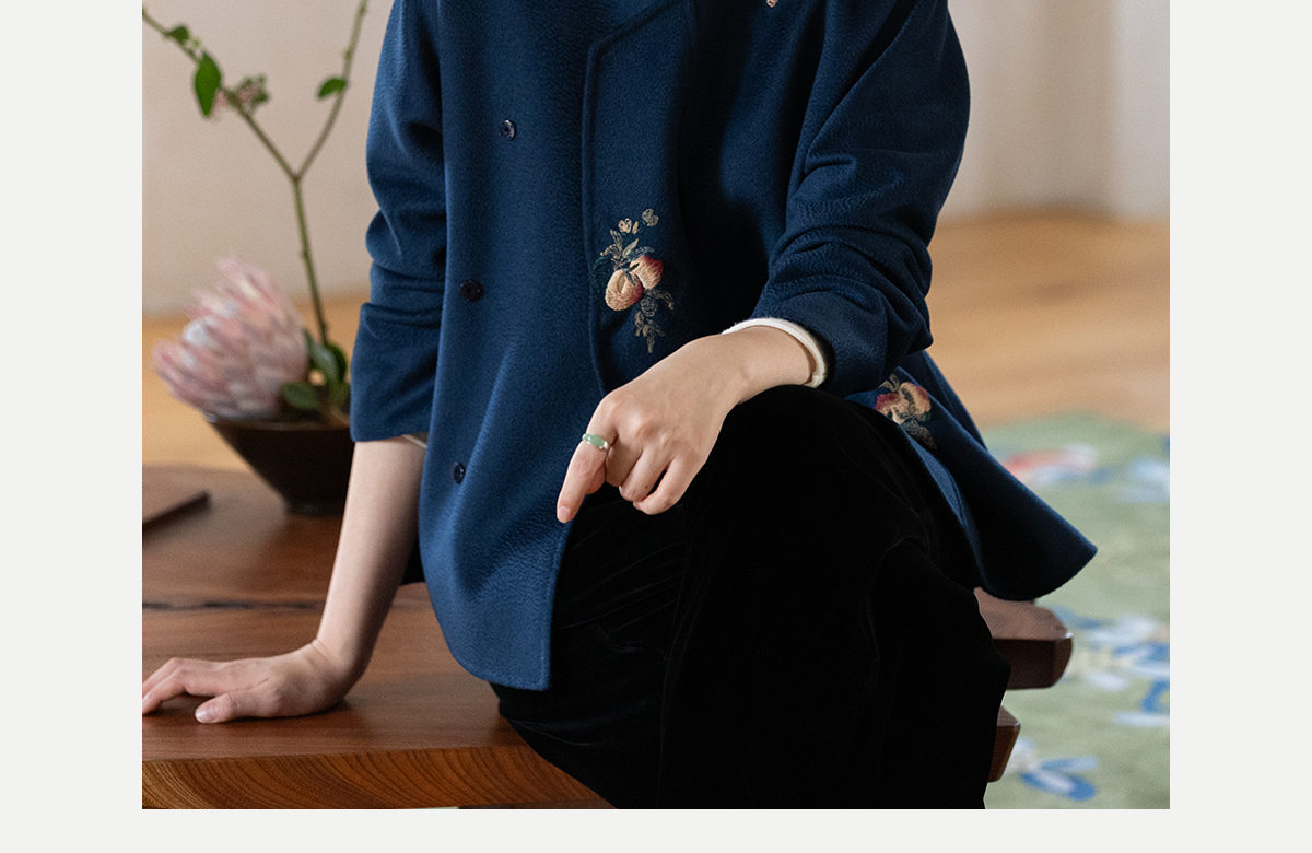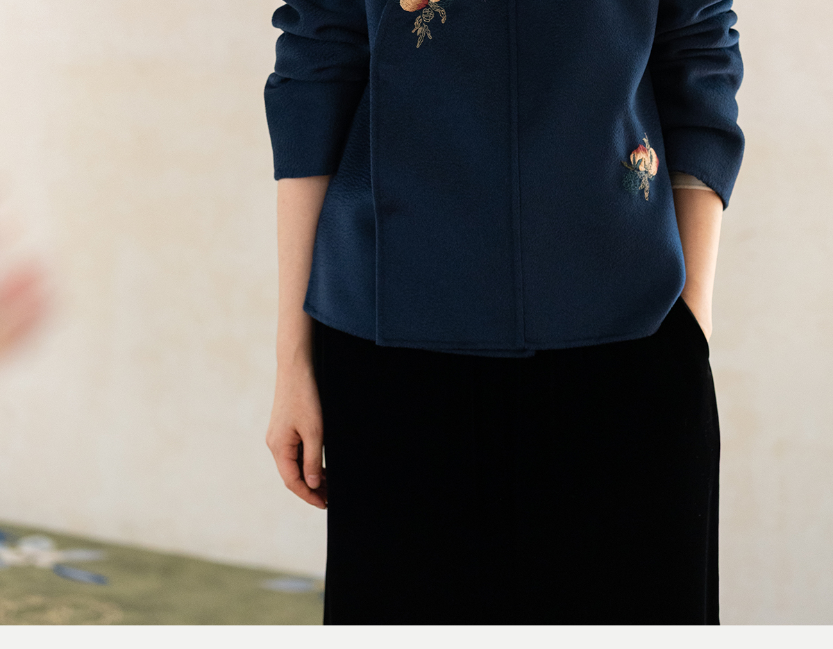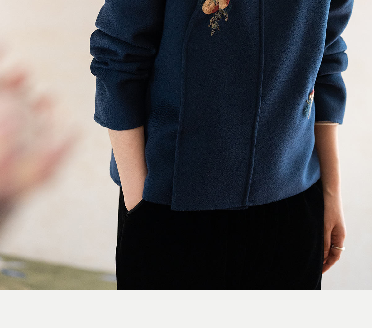 牧衣游原创 进口澳毛毛呢外套手工刺绣双面呢复古新中式开衫 无暇
