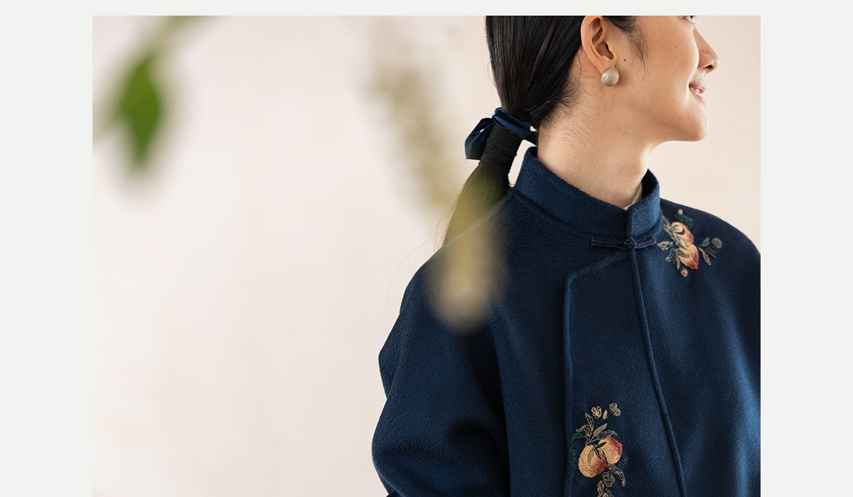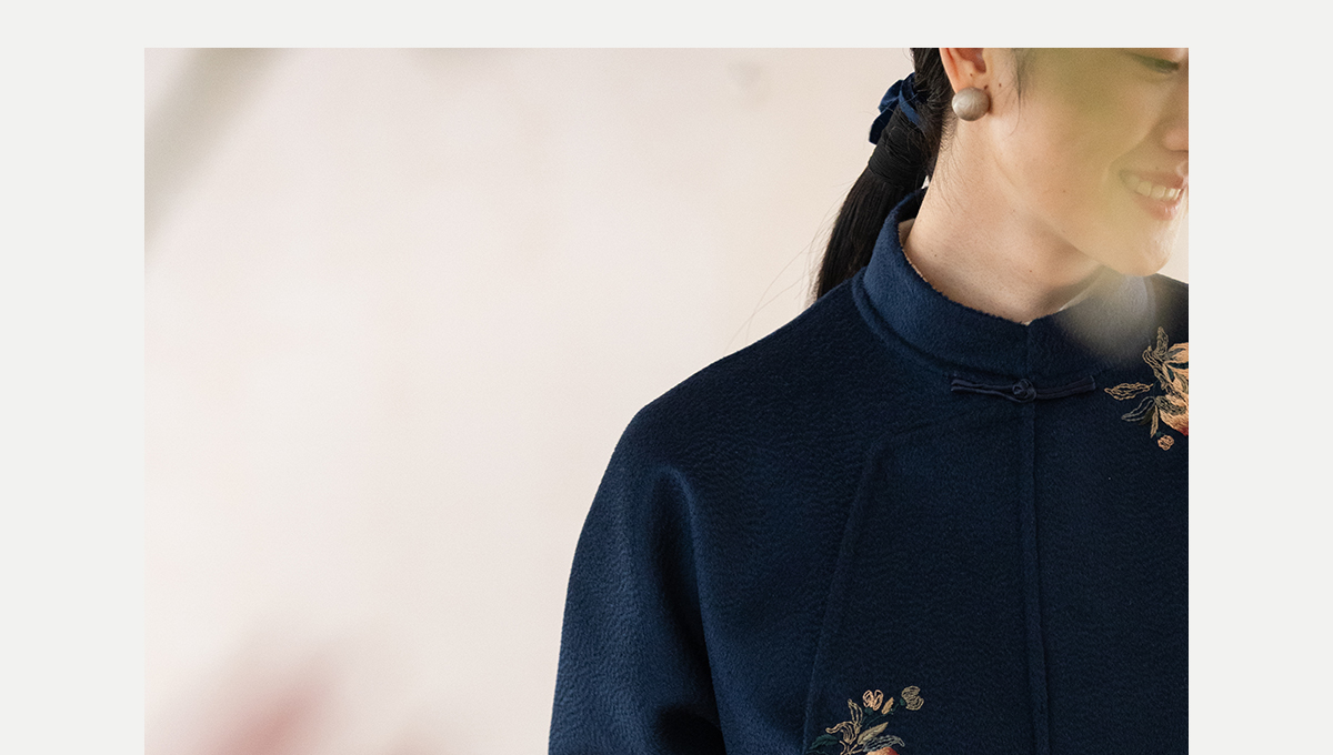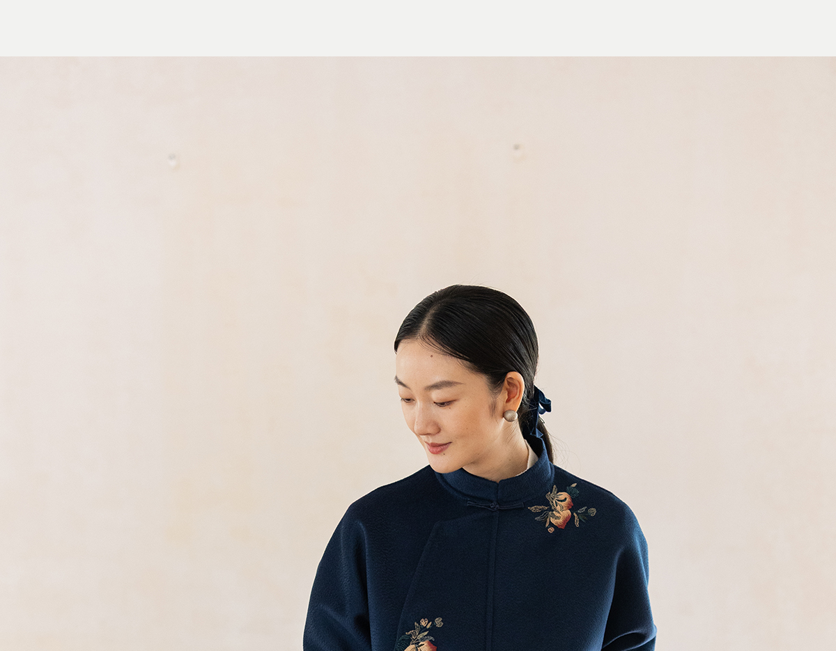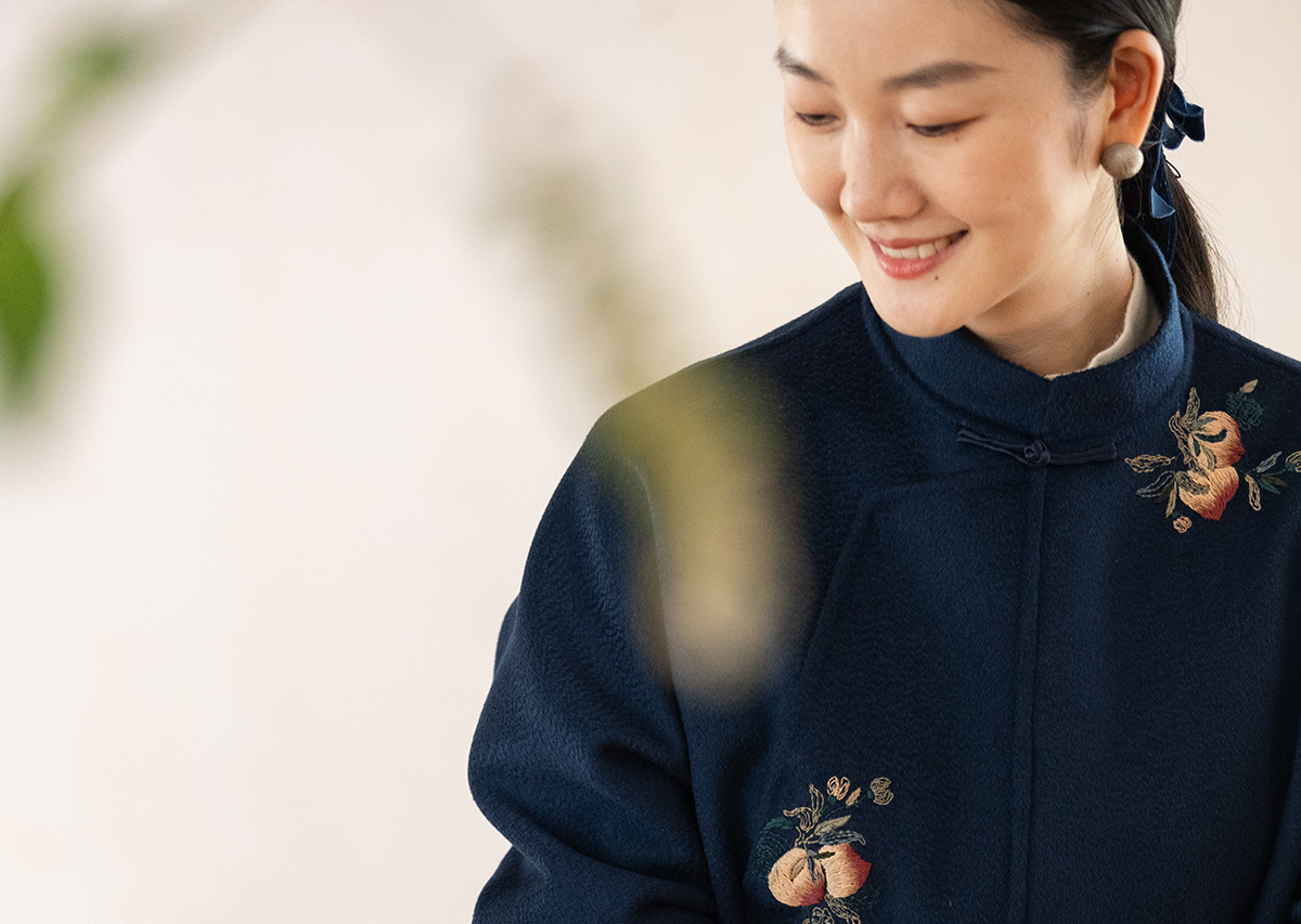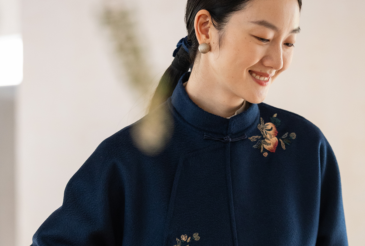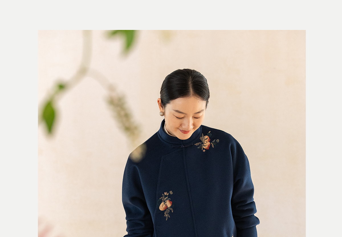 牧衣游原创 进口澳毛毛呢外套手工刺绣双面呢复古新中式开衫 无暇