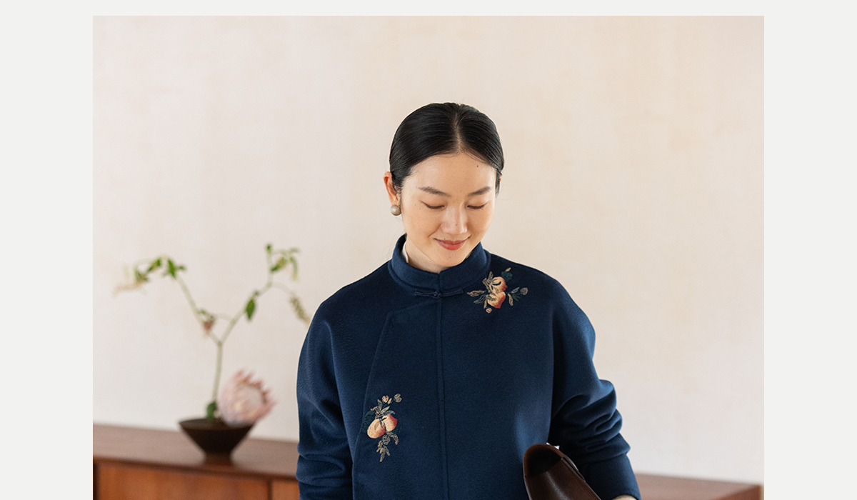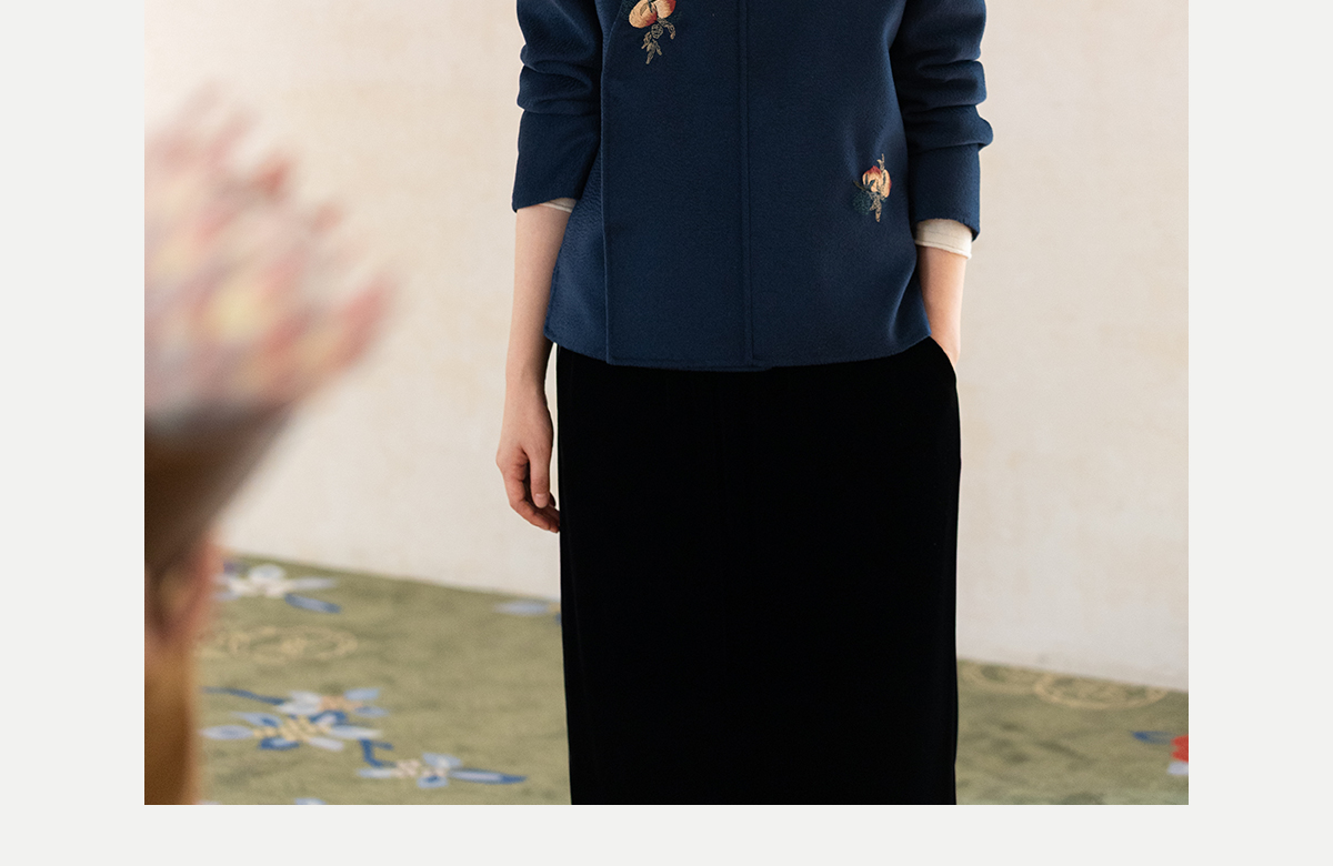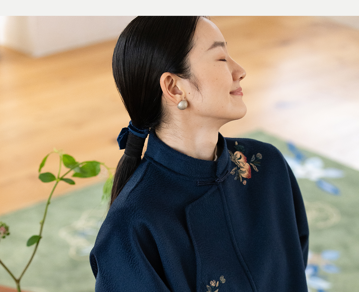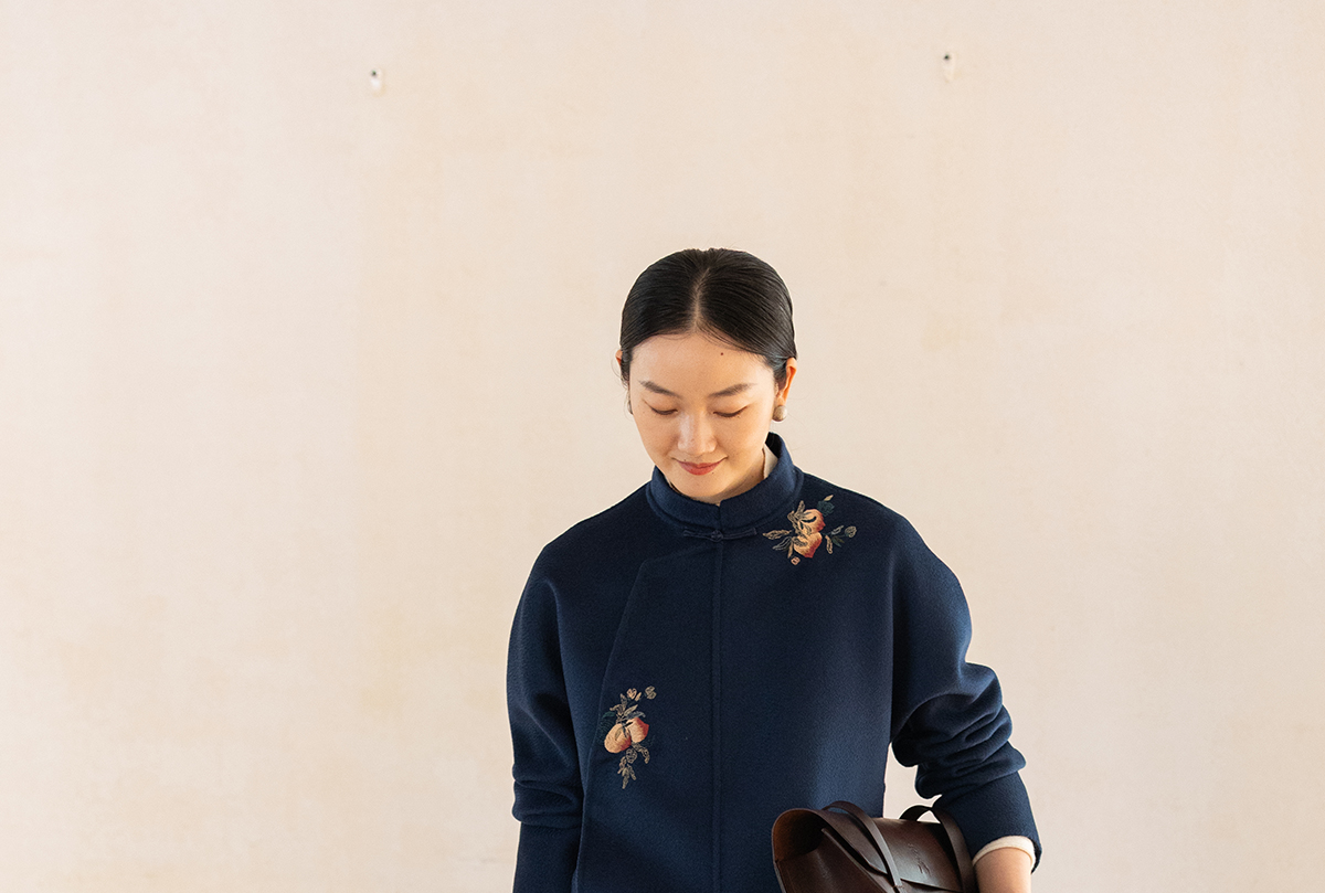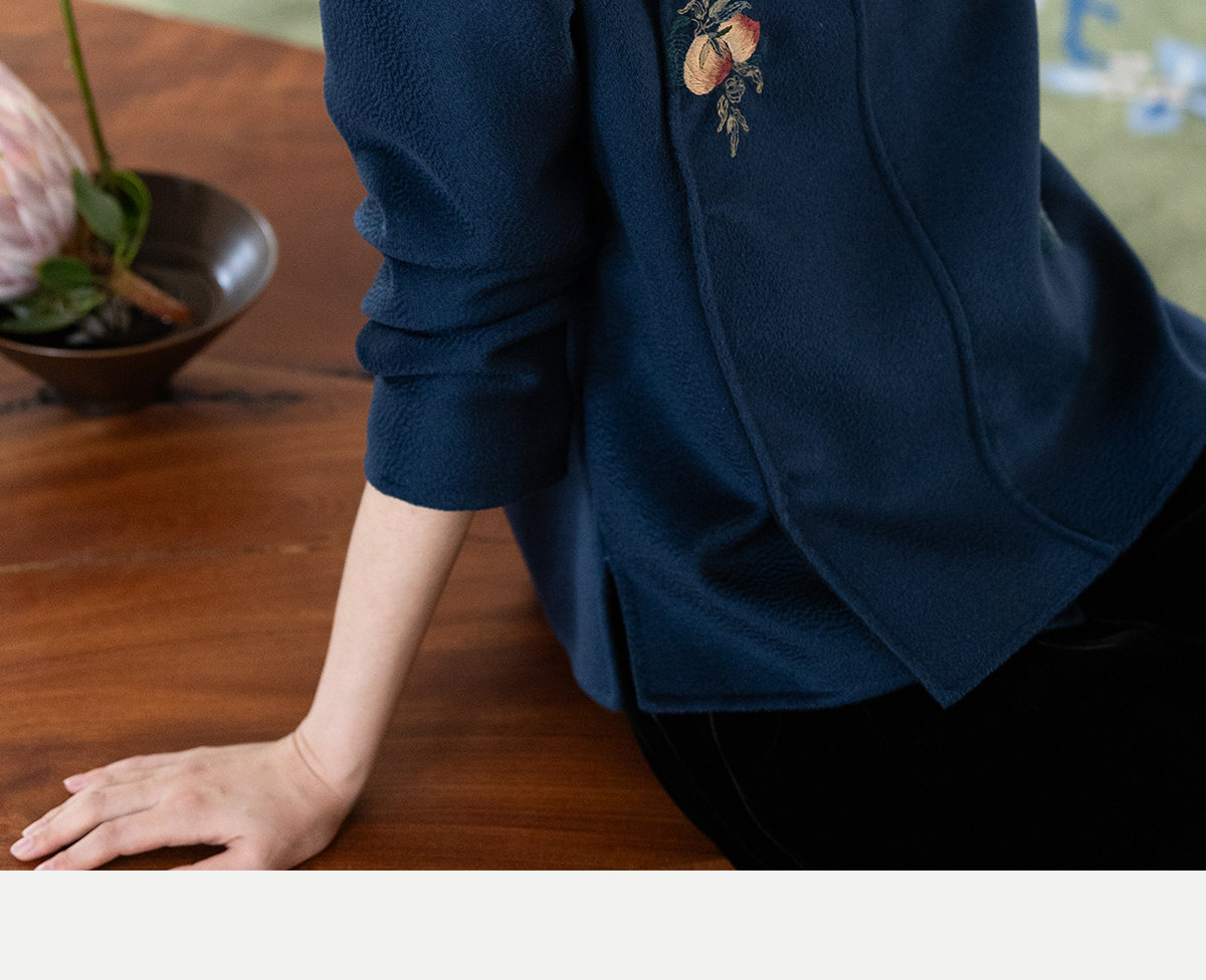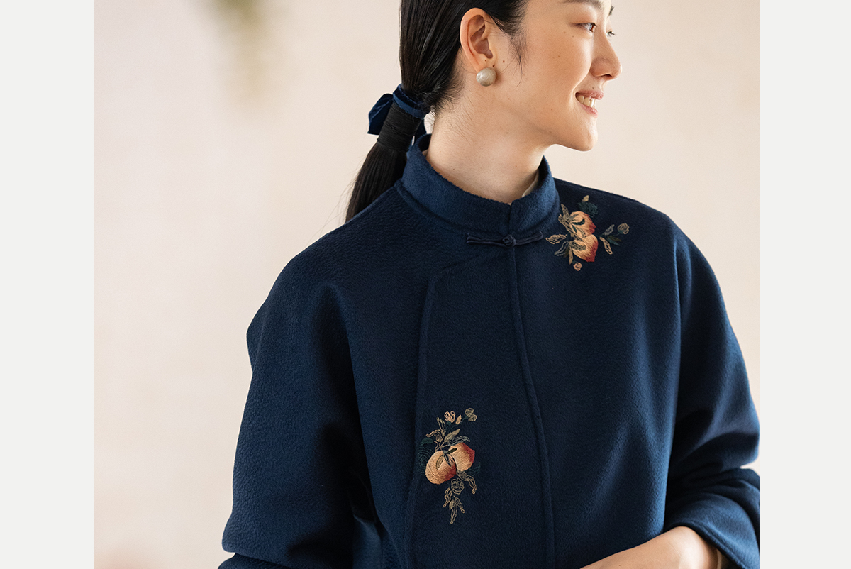牧衣游原创 进口澳毛毛呢外套手工刺绣双面呢复古新中式开衫 无暇