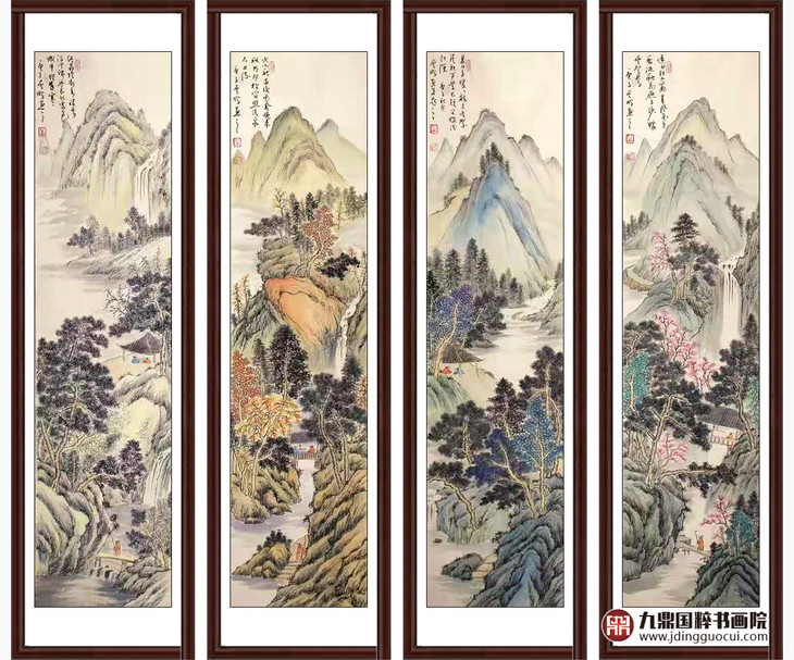 高云鹏《山水四条屏》34cm*138cm*4 山水四条屏作品 客厅/茶室挂画