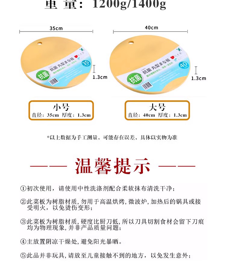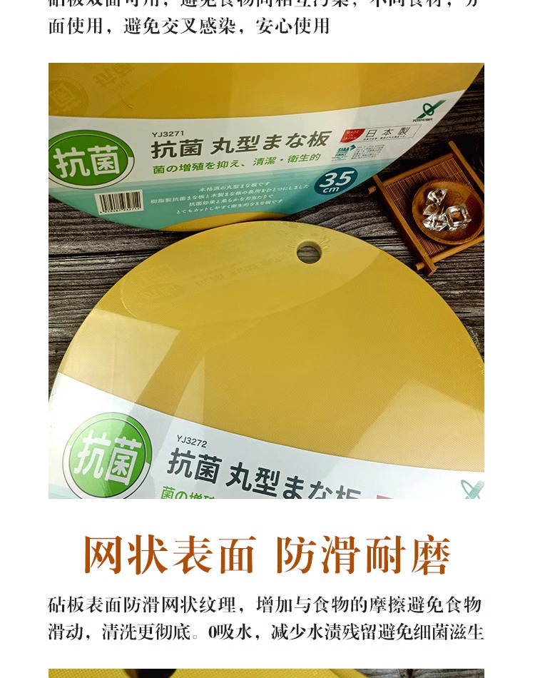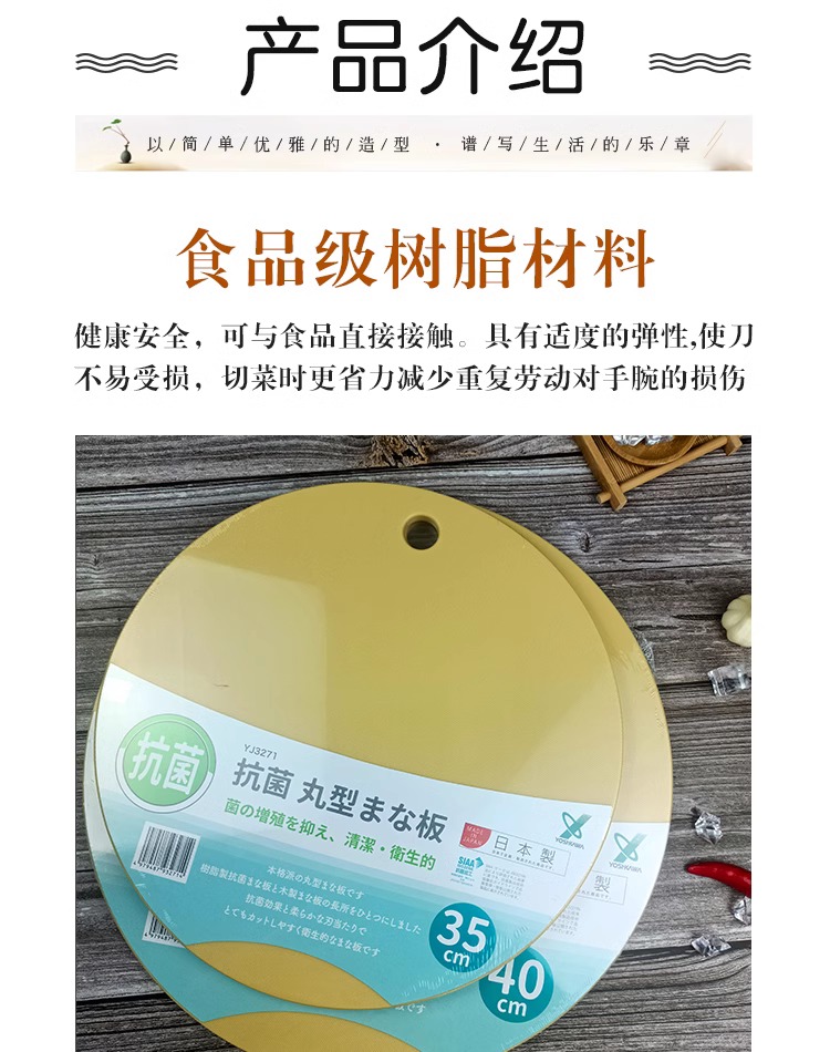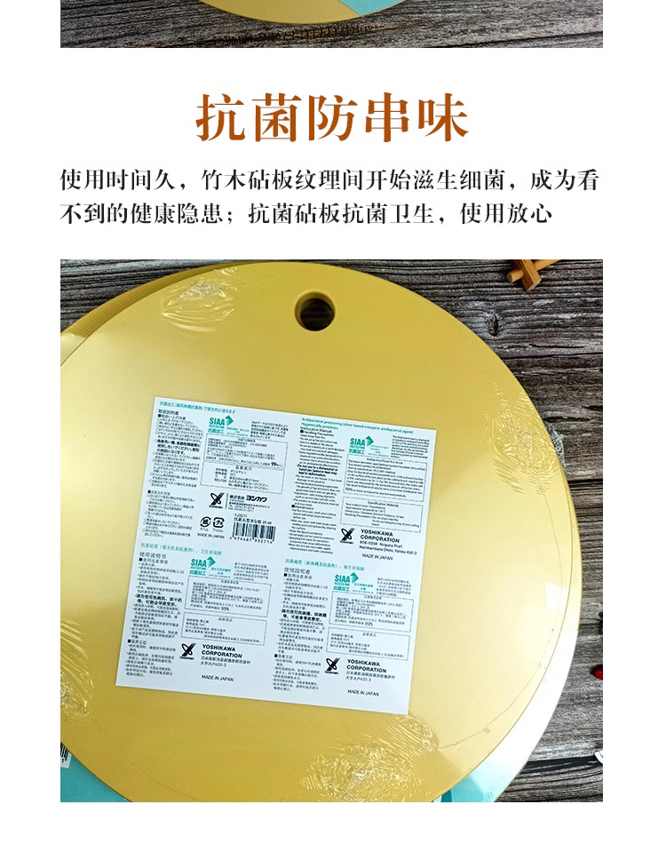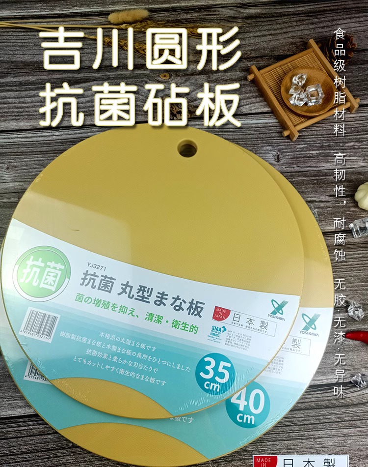 【清仓特惠5折】日本YJ3271◇YOSHIKAWA圆形抗菌砧板35cm