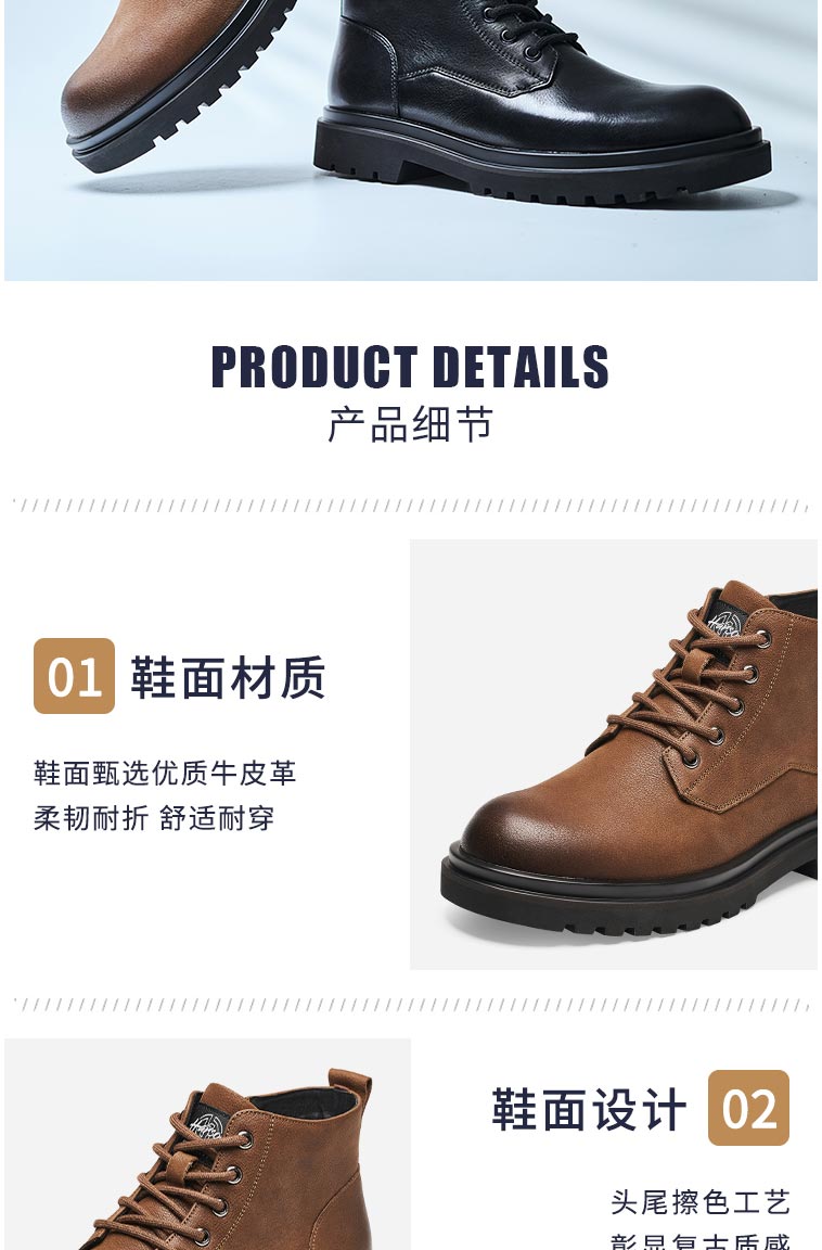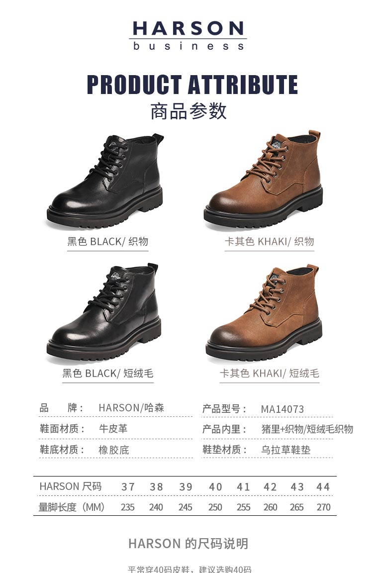 哈森男鞋2021秋季新款商务休闲短筒时尚经典马丁靴MA14073