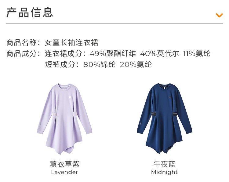 【24年夏新品】moodytiger儿童连衣裙24年春季新款女童长袖运动休闲连衣裙41211904