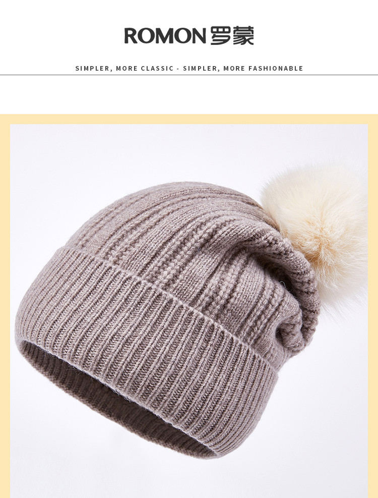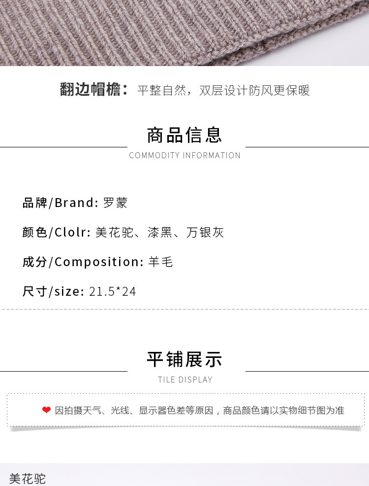 【100羊毛】罗蒙帽子秋冬季女韩版可爱百搭纯色毛线帽情侣针织尖尖帽