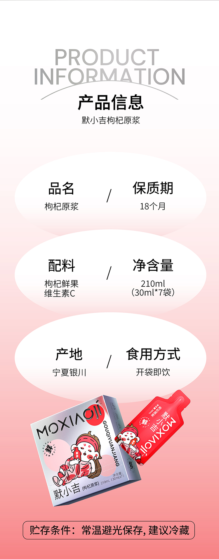 【杞里香默小吉宁夏红枸杞原浆210ml】 一盒7袋装