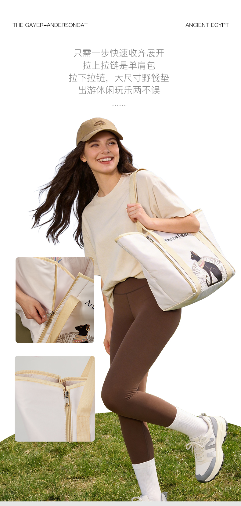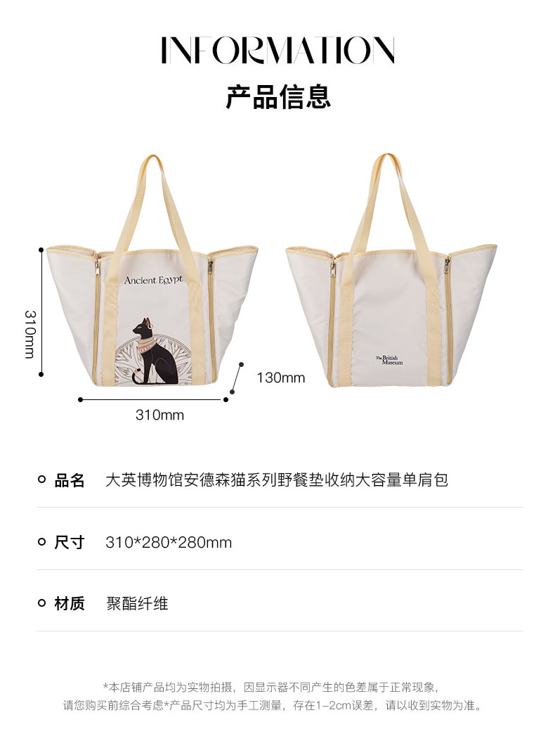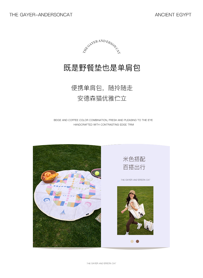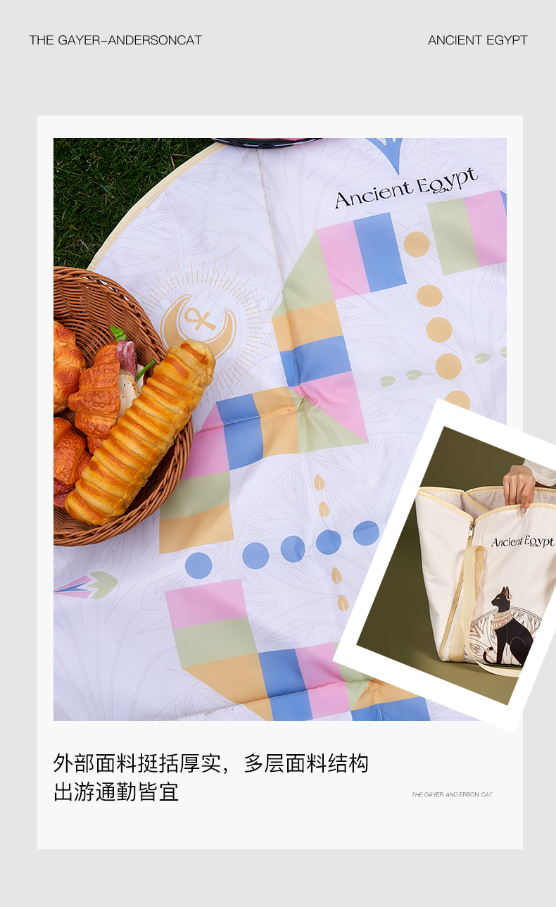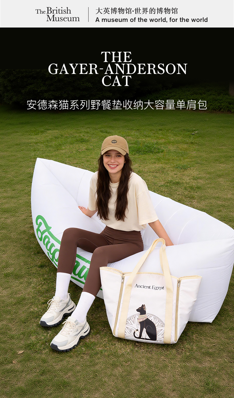 大英博物馆 安德森猫系列 野餐垫收纳 大容量单肩包