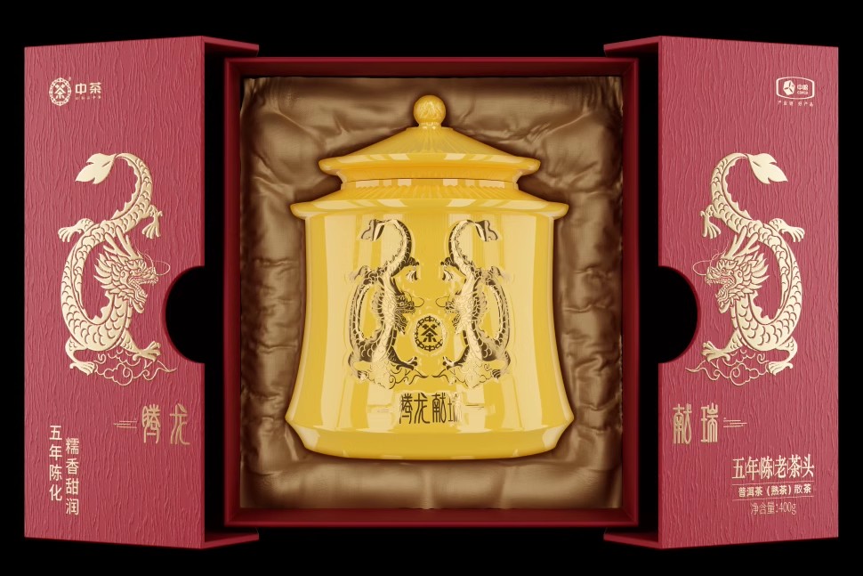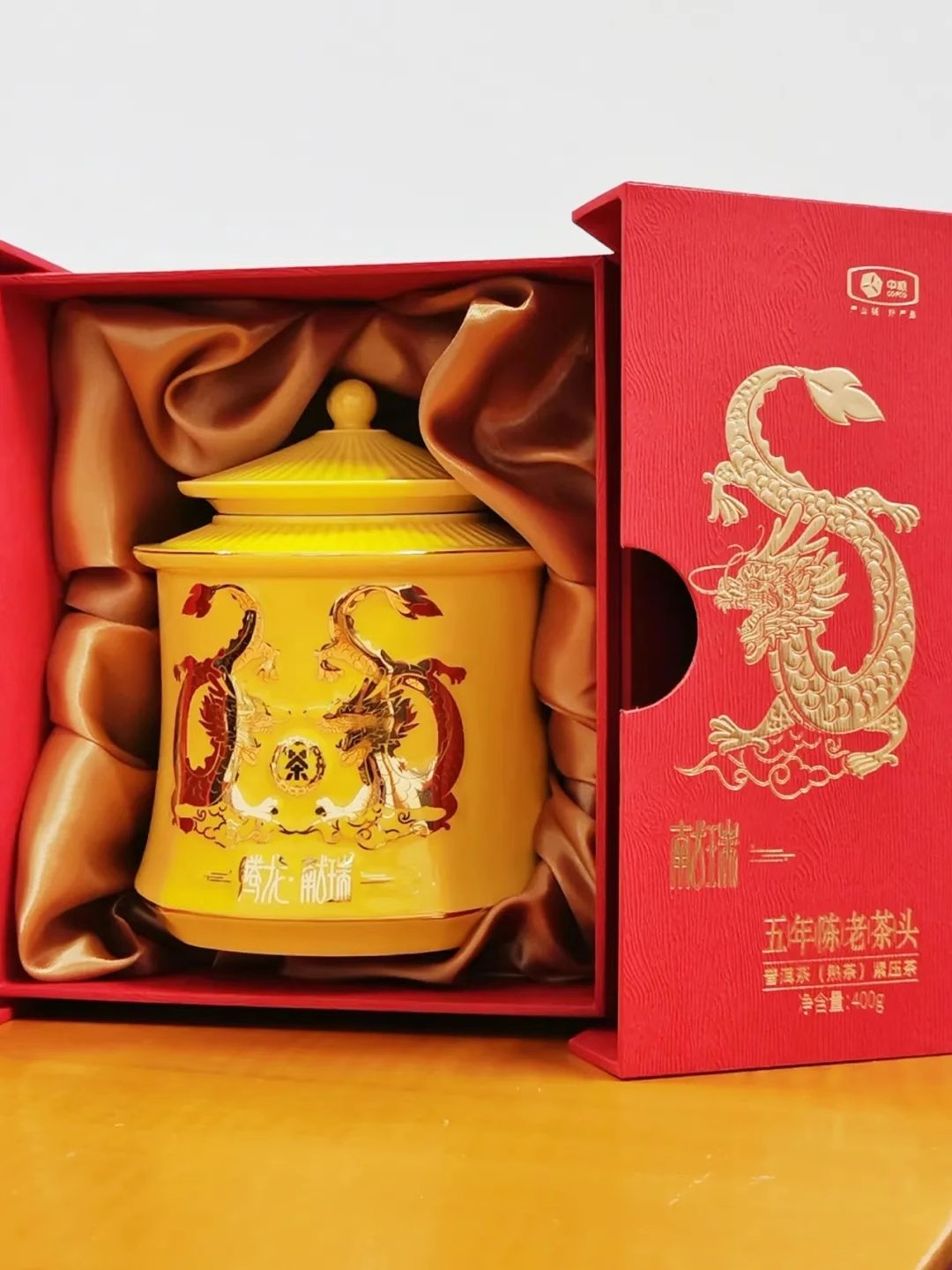 中茶腾龙献瑞系列五年陈老茶头400克 普洱熟茶瓷罐礼盒散茶糯香