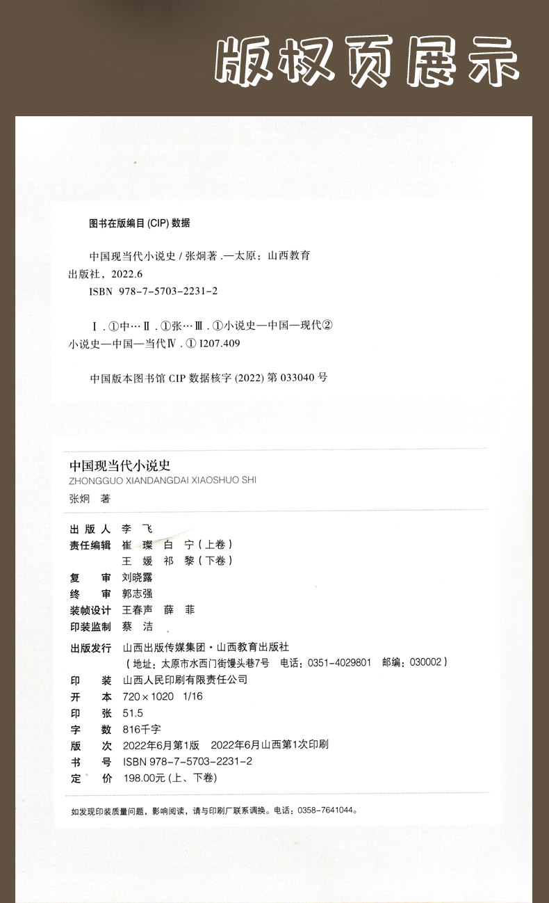正版 中国现当代小说史上下卷 张炯著 山西教育出版社出版