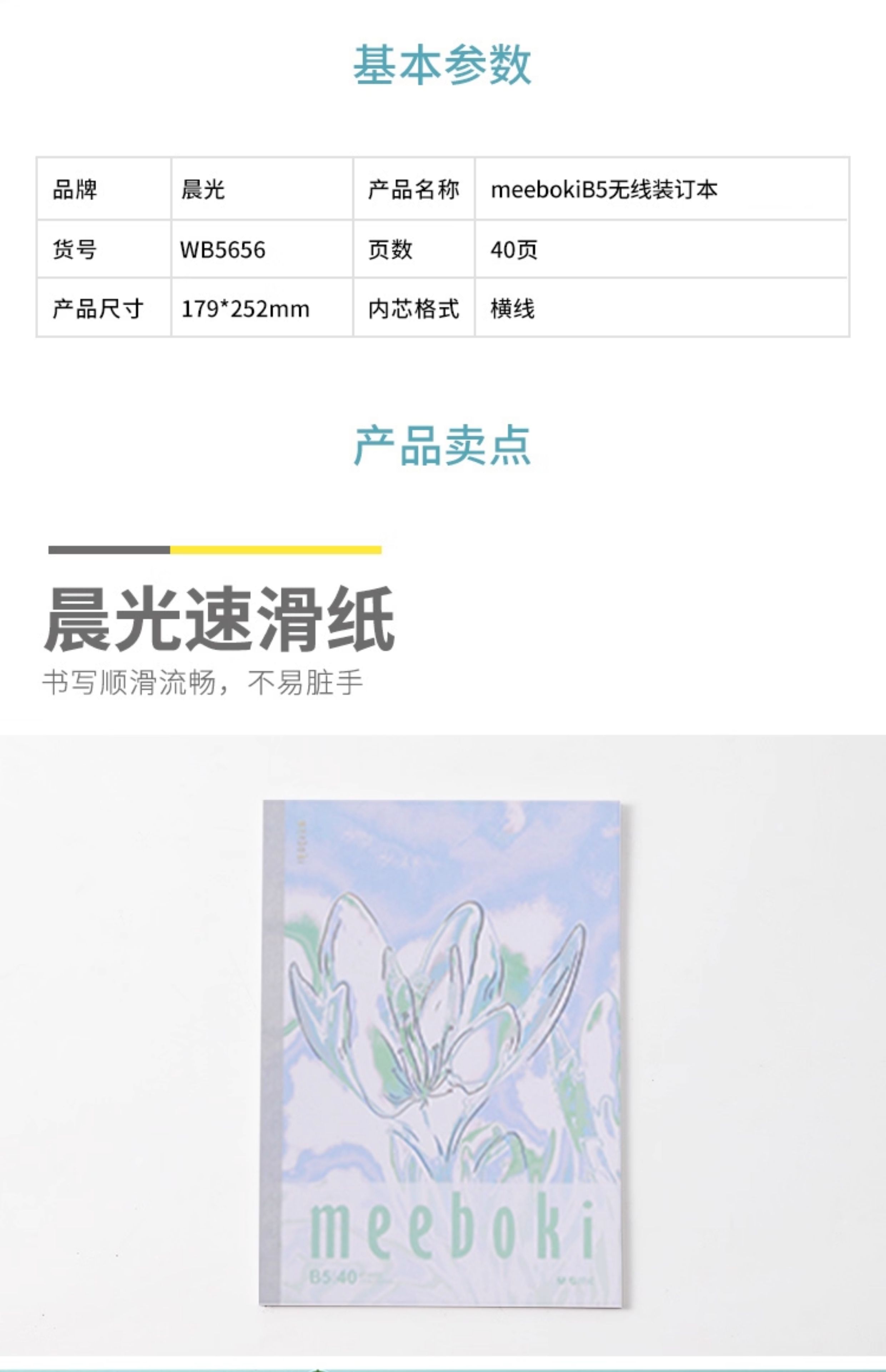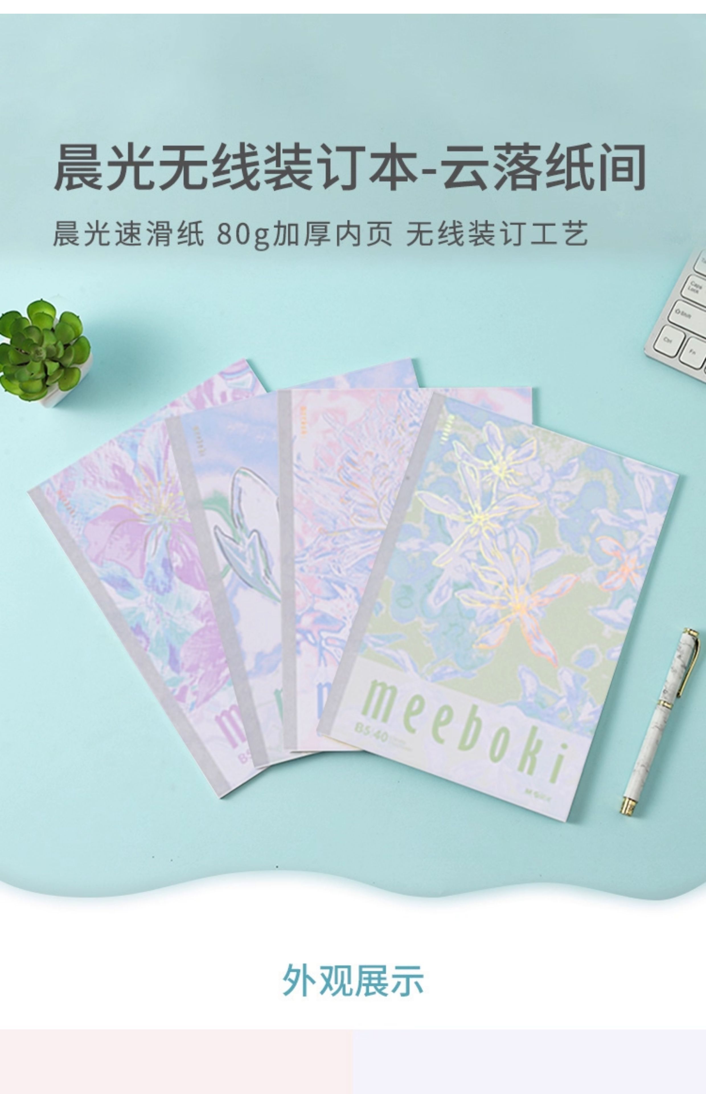 晨光无线装订本B5软抄本40页素纹横线学生笔记本小清新时尚凡花蜜语(图案随机)
