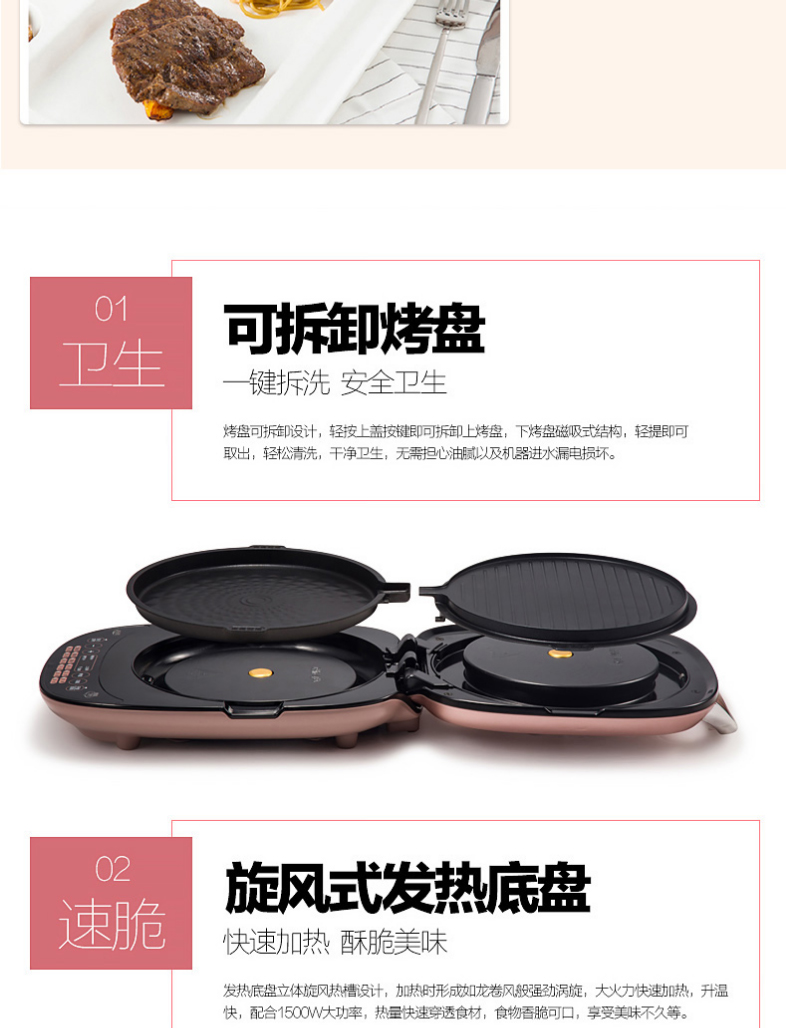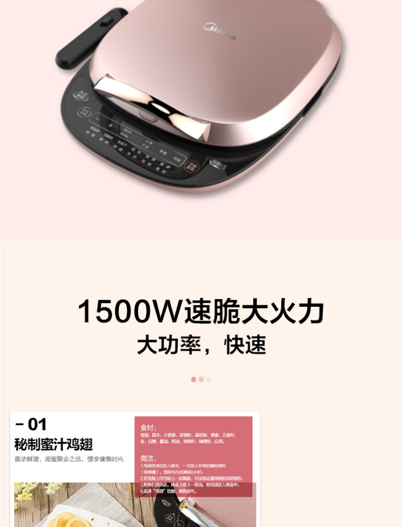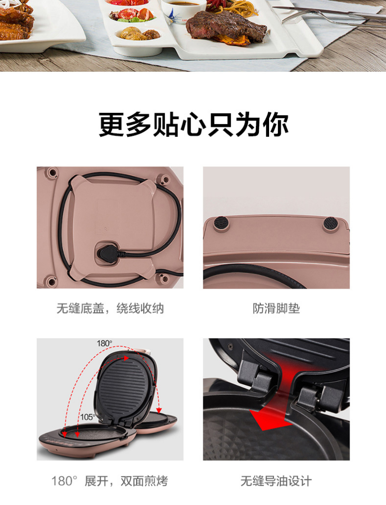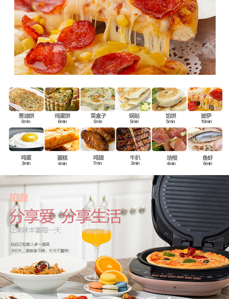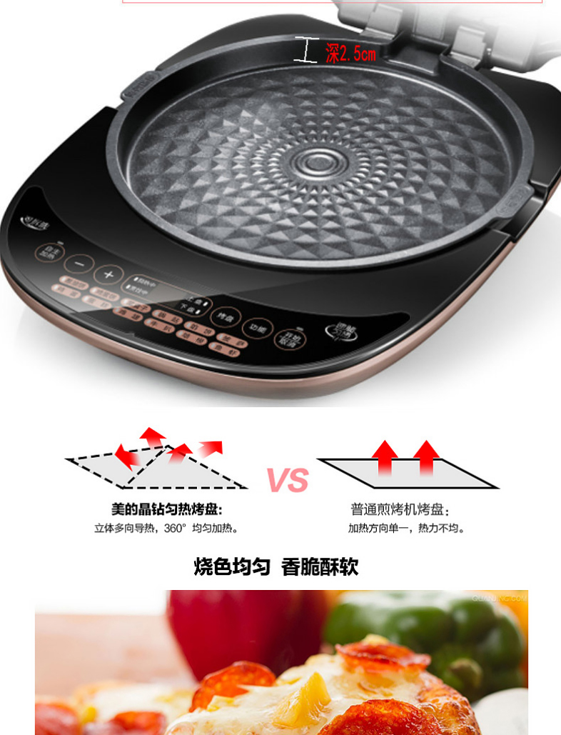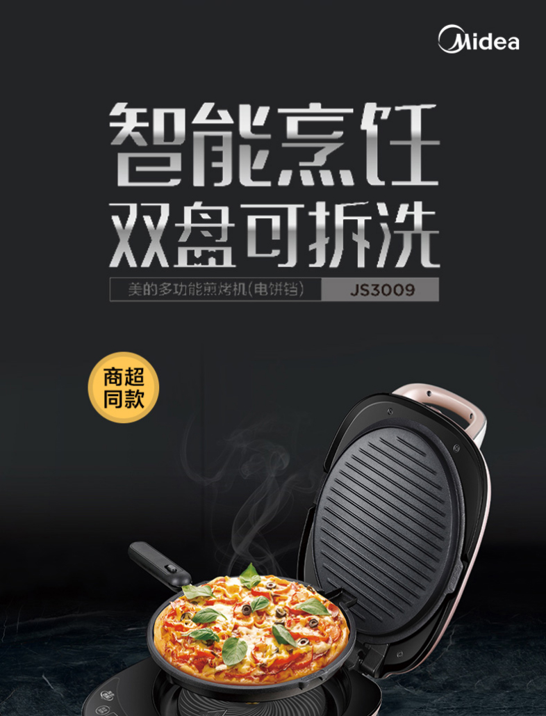美的电饼铛双面拆洗加深25mm触摸屏自动断电可定时家用自动智能不粘锅30规格JS3009
