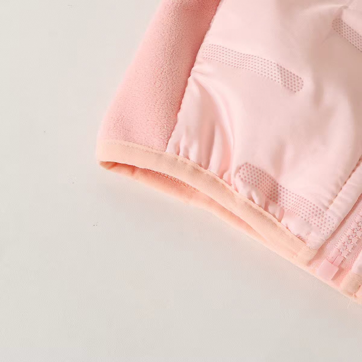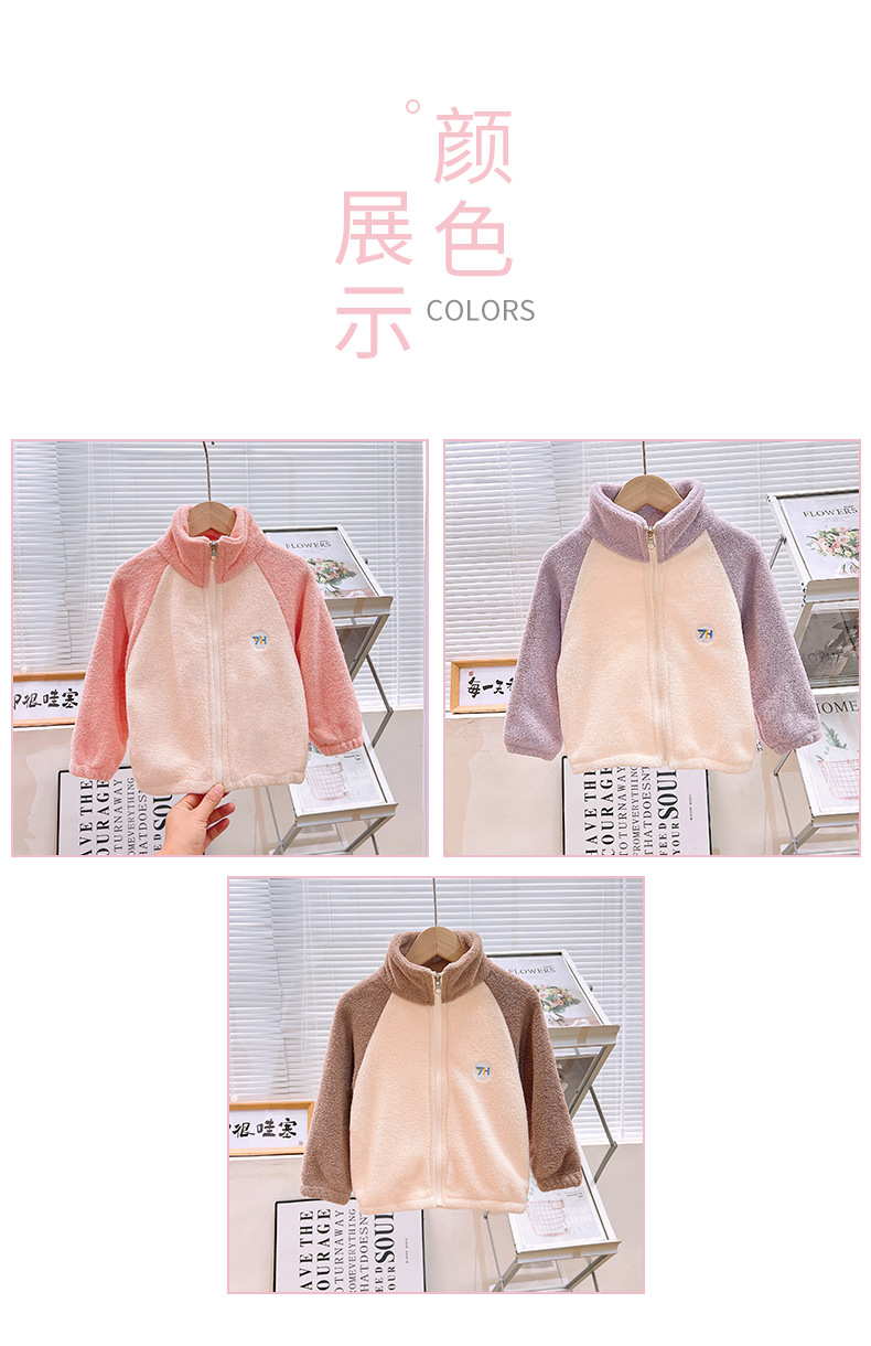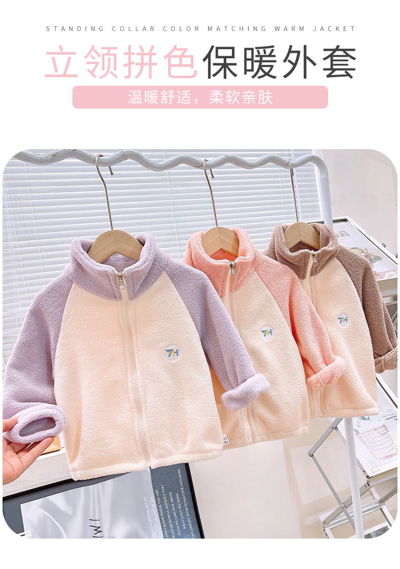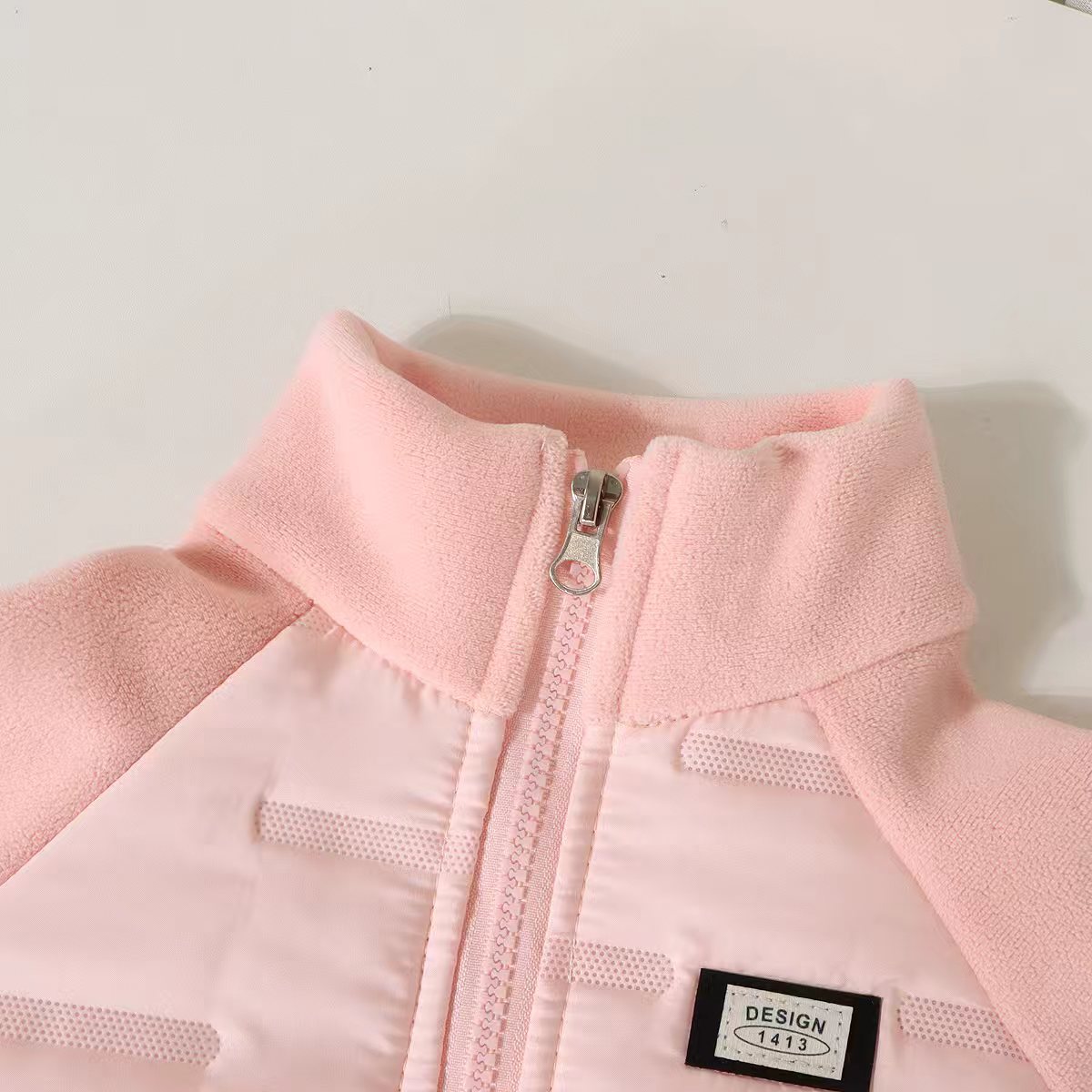 毛毛外套女童泡芙绒秋冬拉链上衣拼色内搭保暖棉衣校服神器