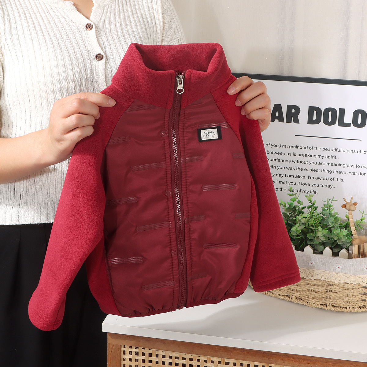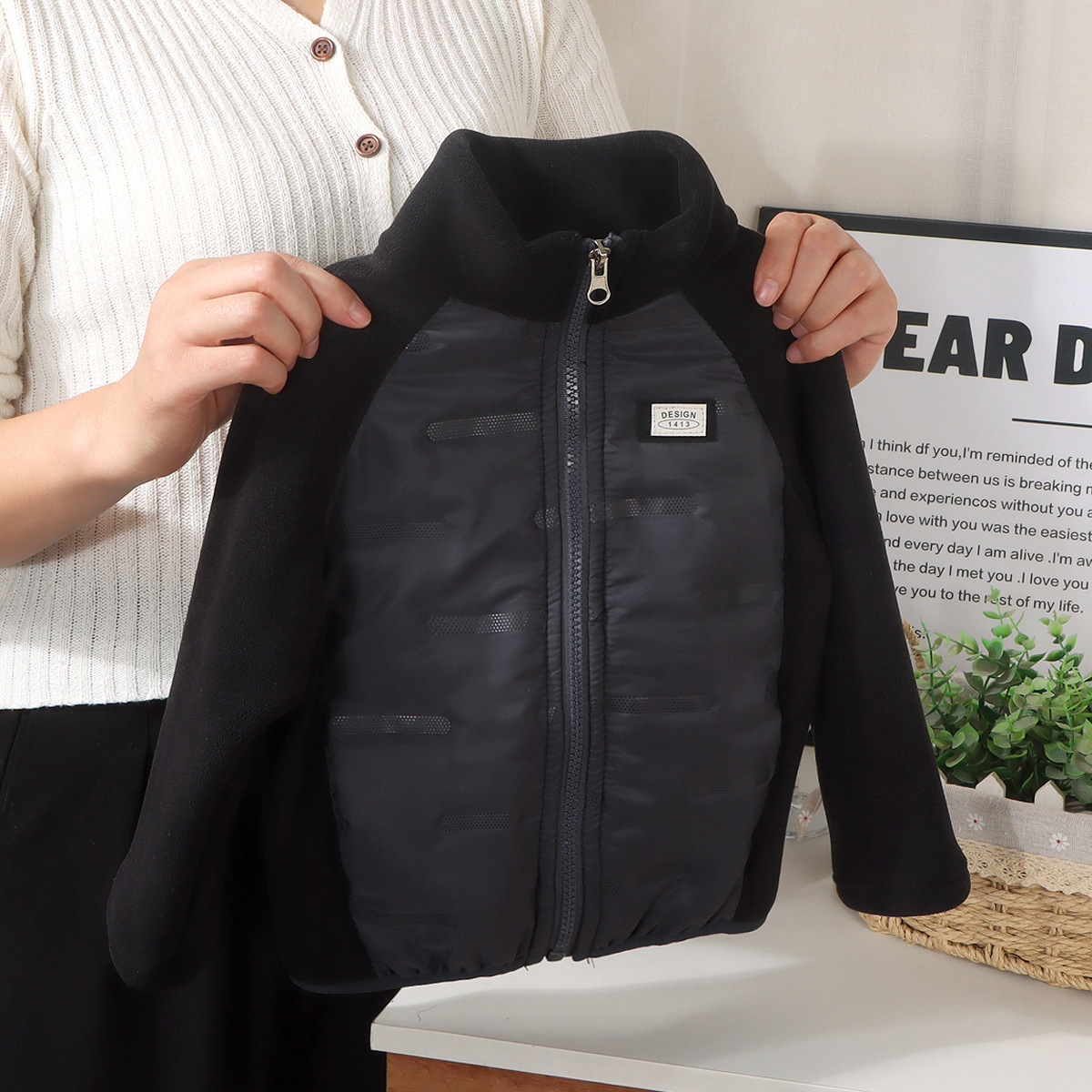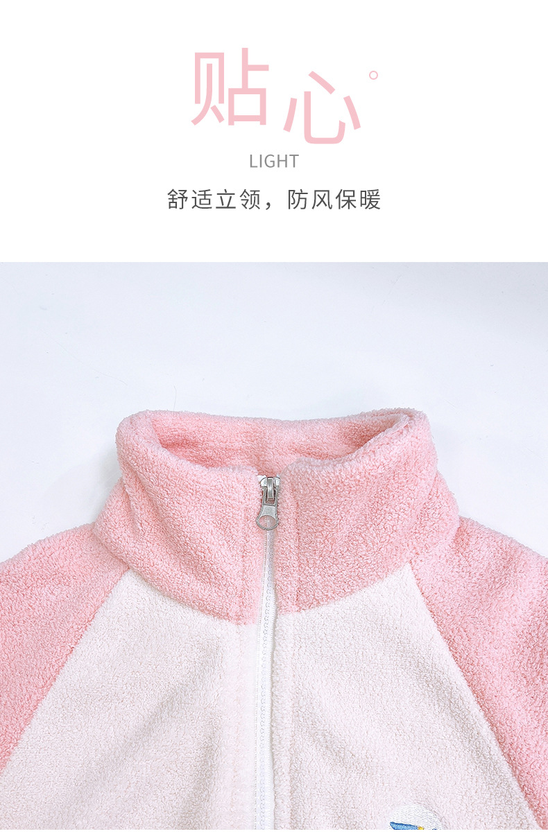 毛毛外套女童泡芙绒秋冬拉链上衣拼色内搭保暖棉衣校服神器