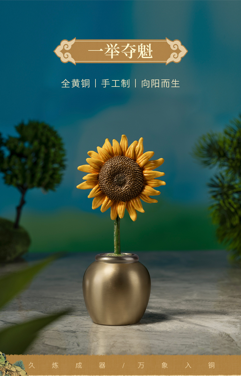 铜师傅《一举夺魁》桌面工位创意向日葵治愈系摆件 中考高考礼物