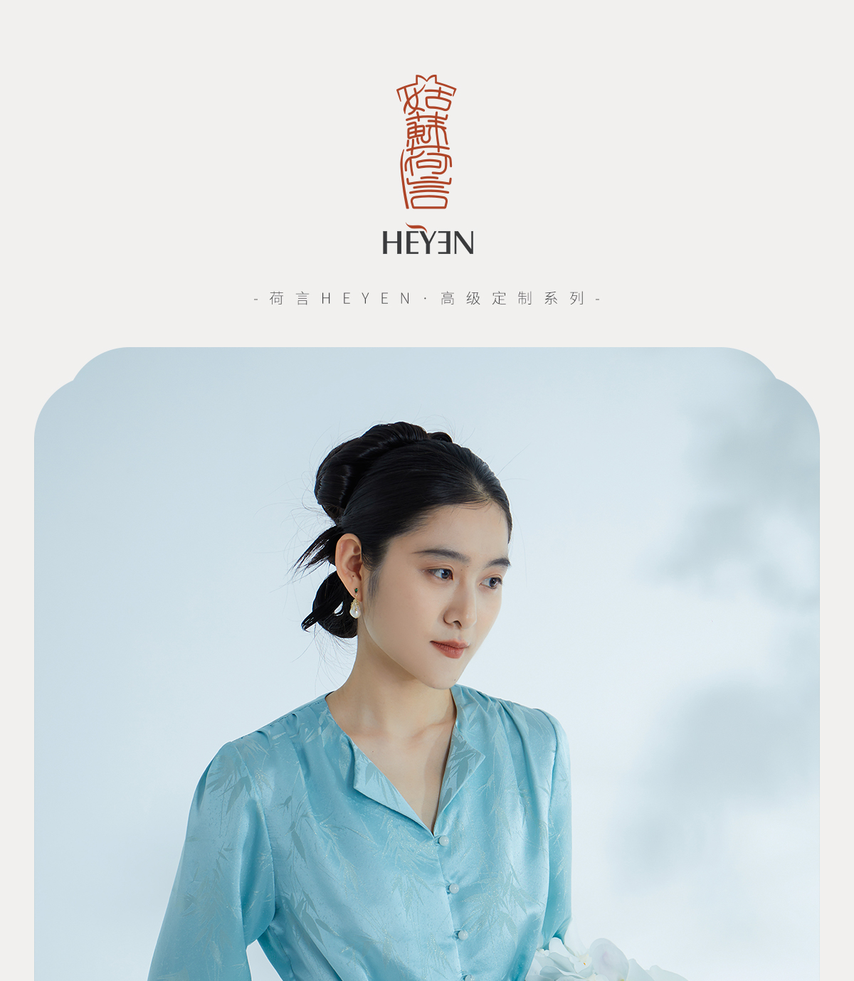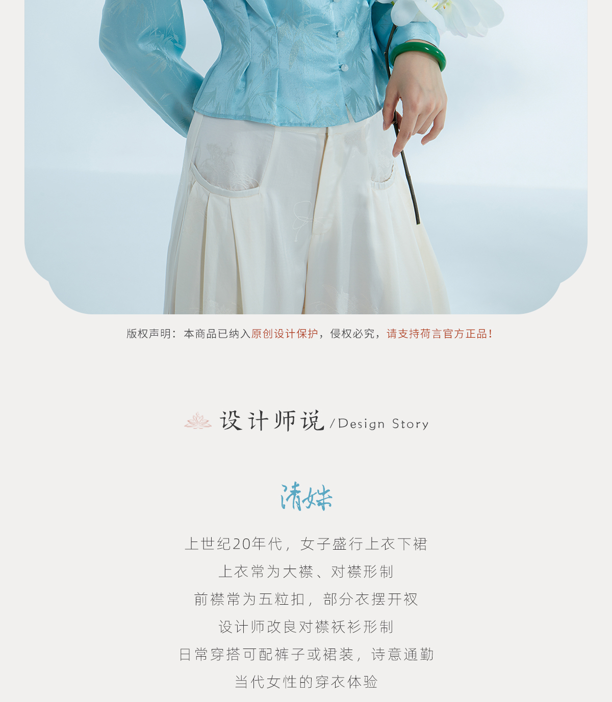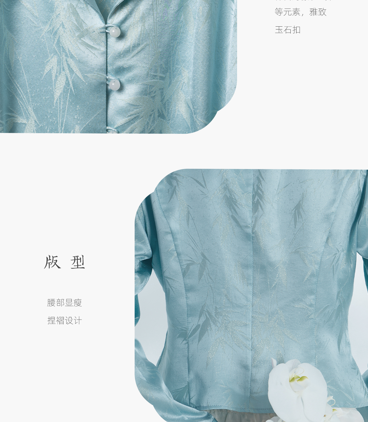 荷言HEYEN 清姝 雨打寒竹金通织金正绢真丝上衣蓝色复古优雅高定系列