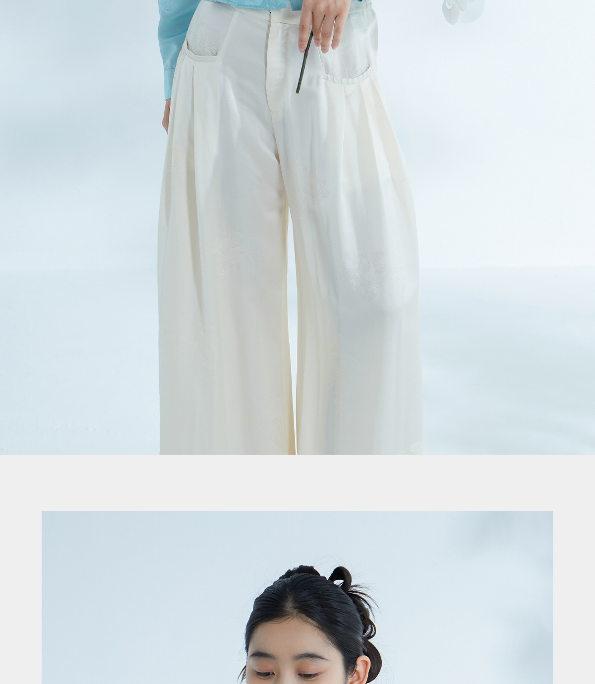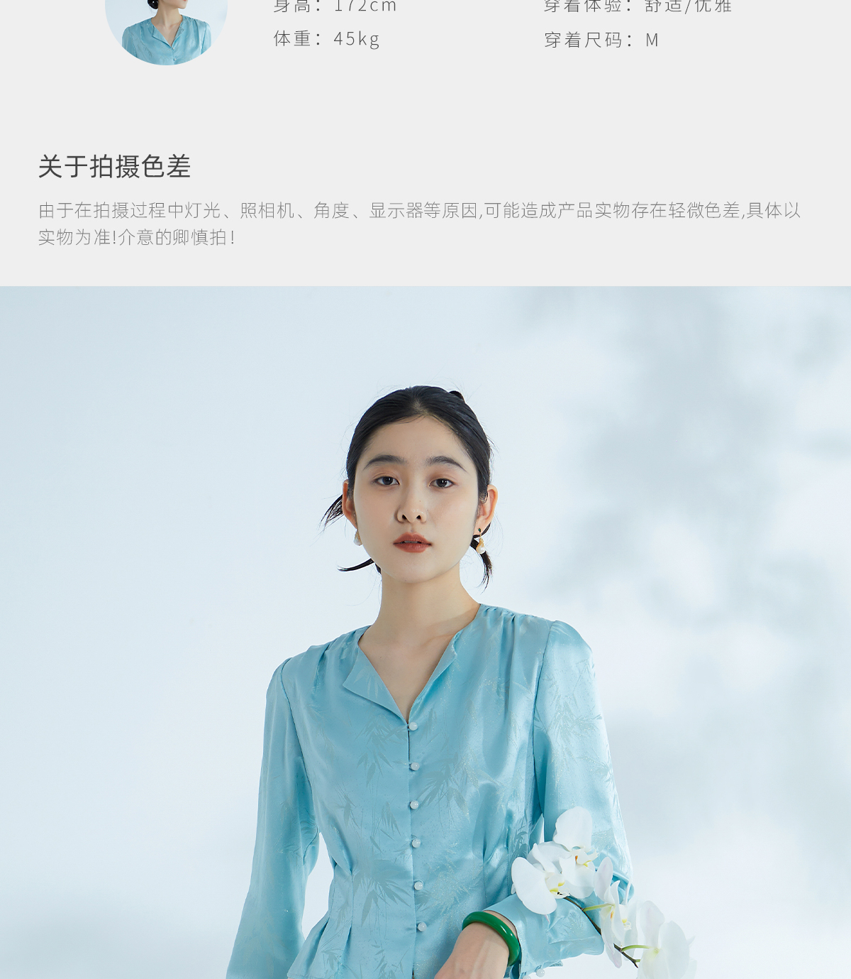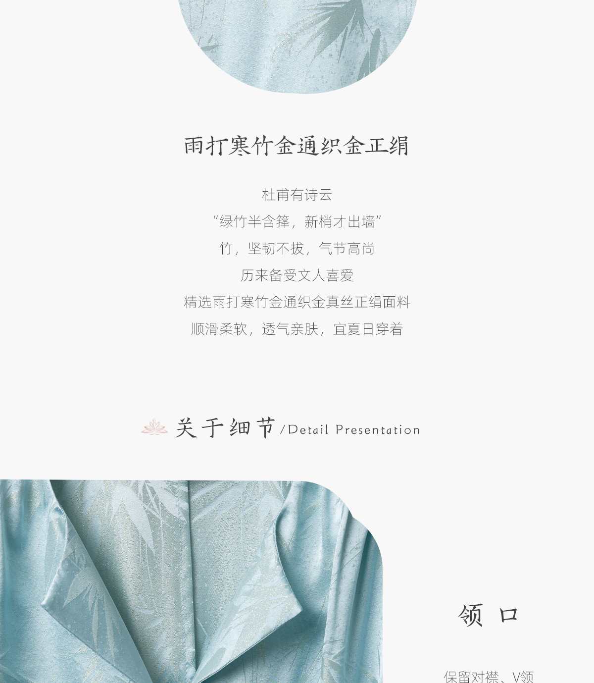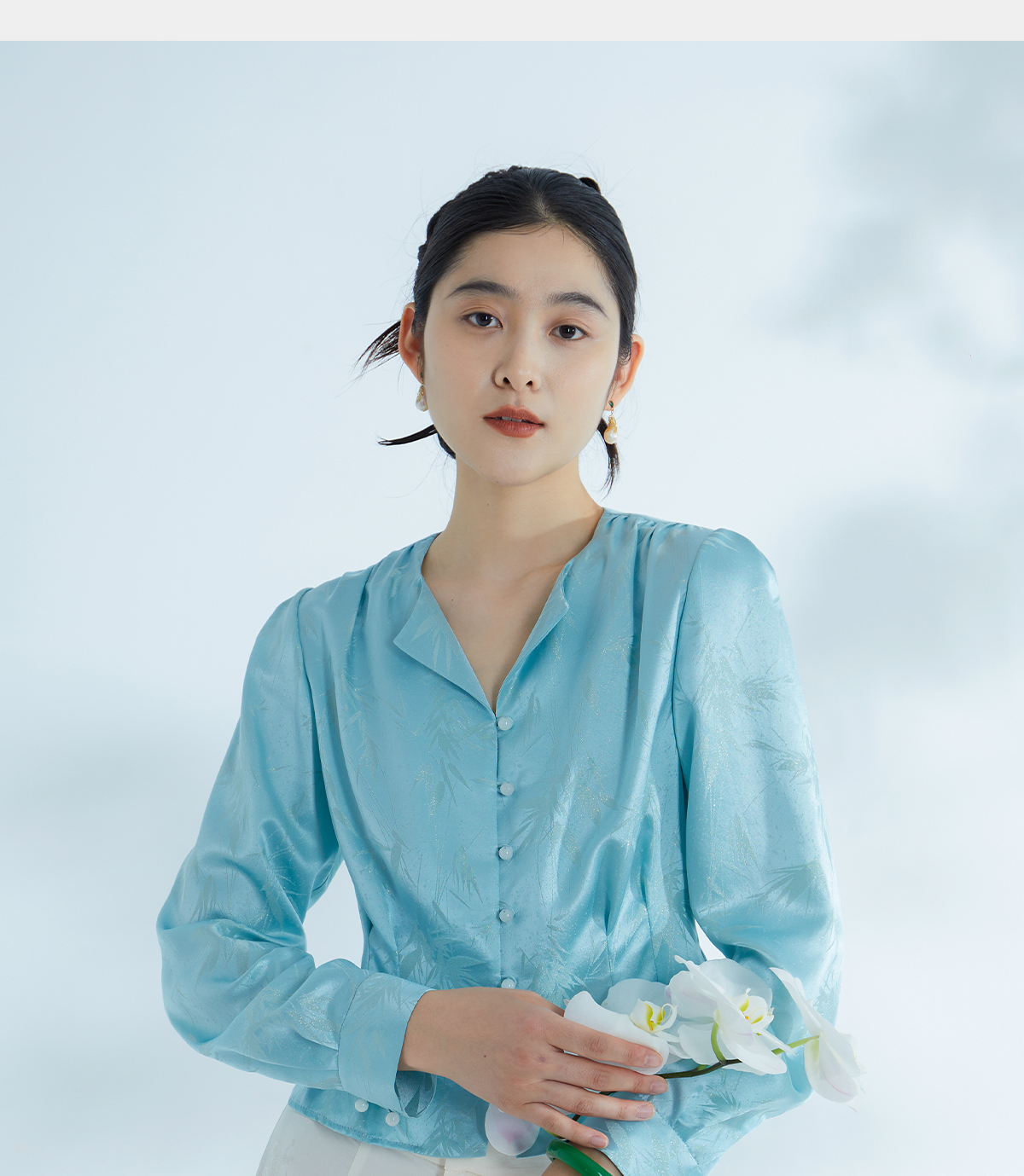 荷言HEYEN 清姝 雨打寒竹金通织金正绢真丝上衣蓝色复古优雅高定系列