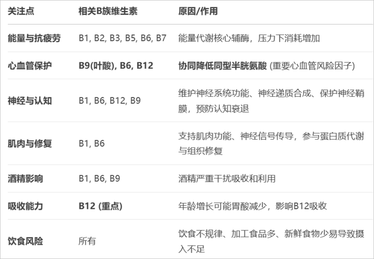 这是我在网上查资料时看到的,一句话讲明白,为什么男人40岁之后,要更关注B族摄入。