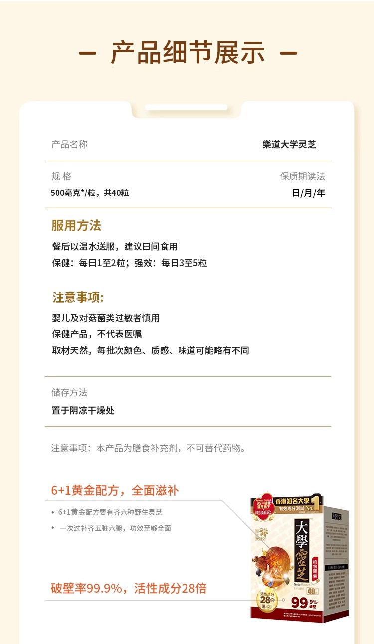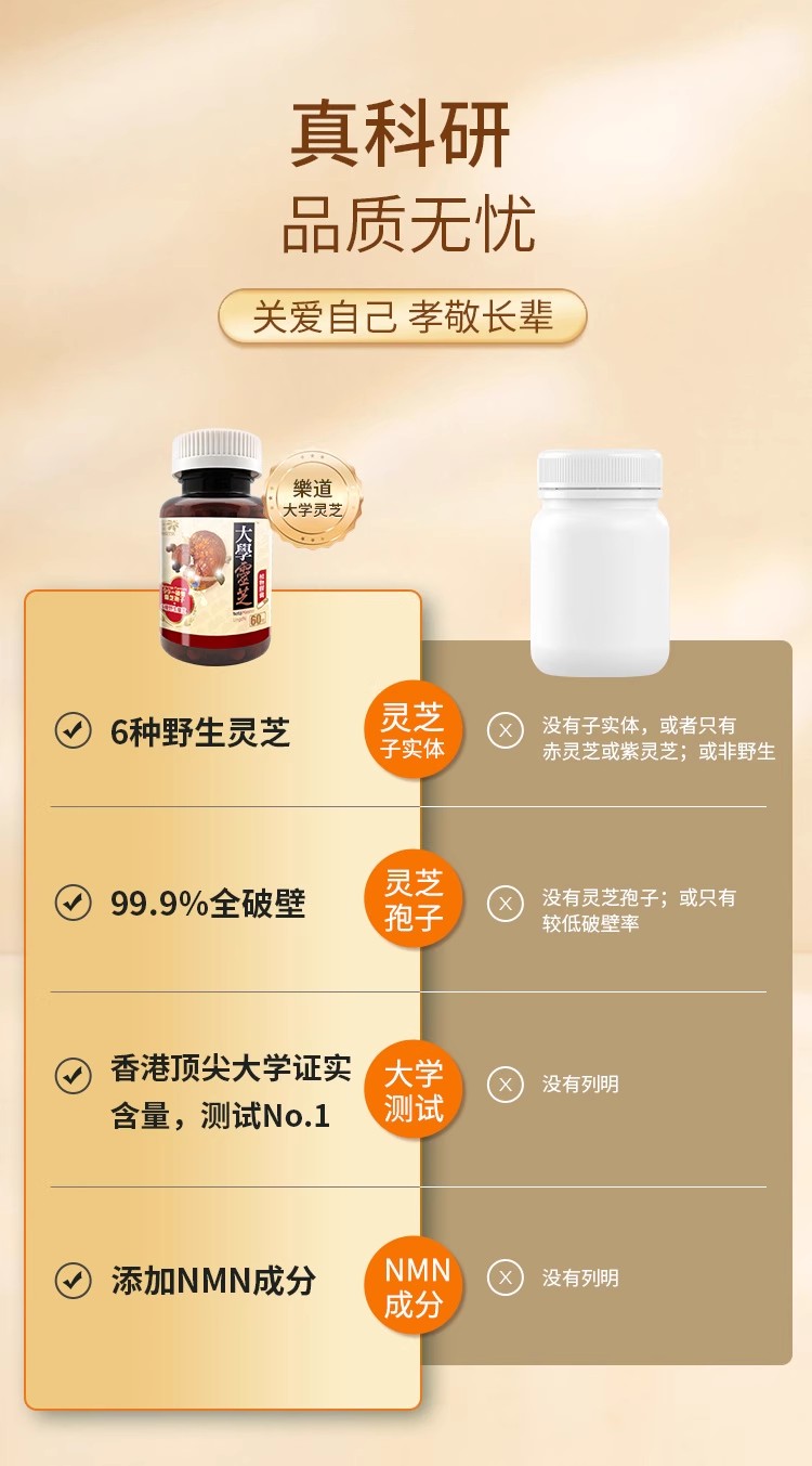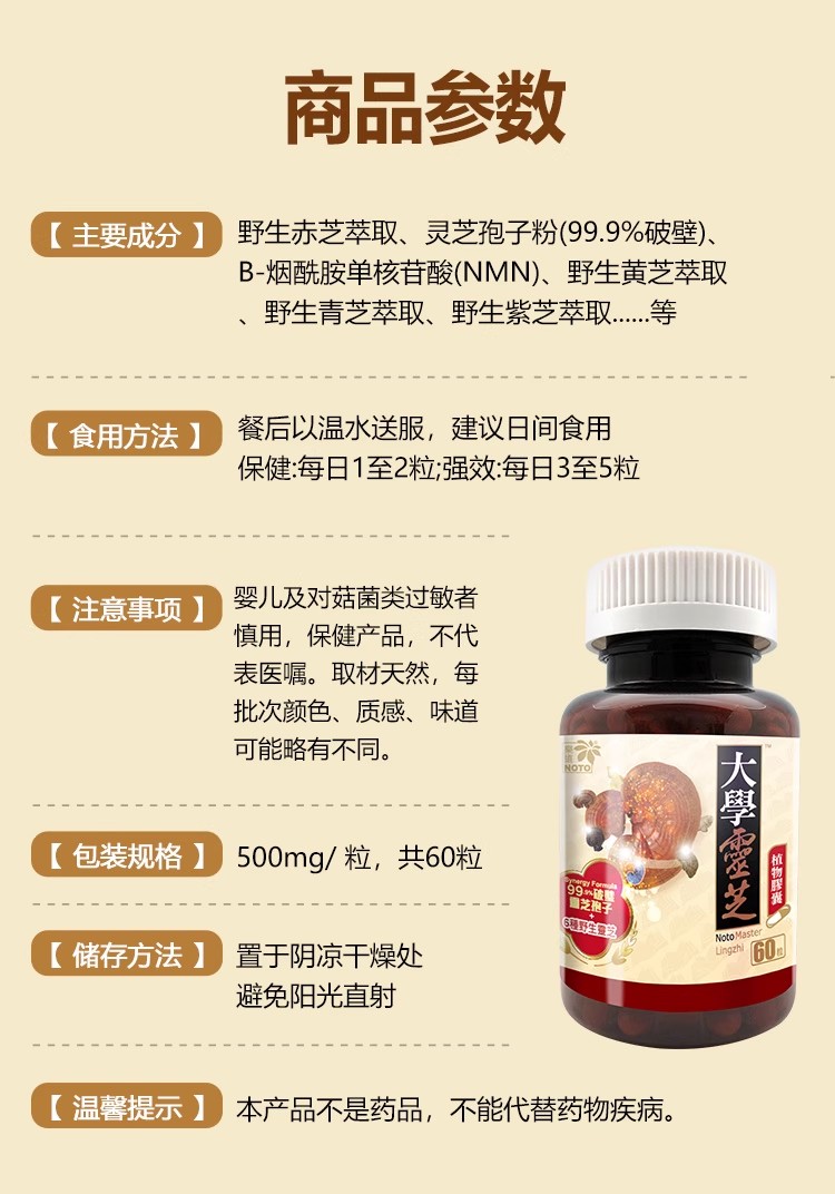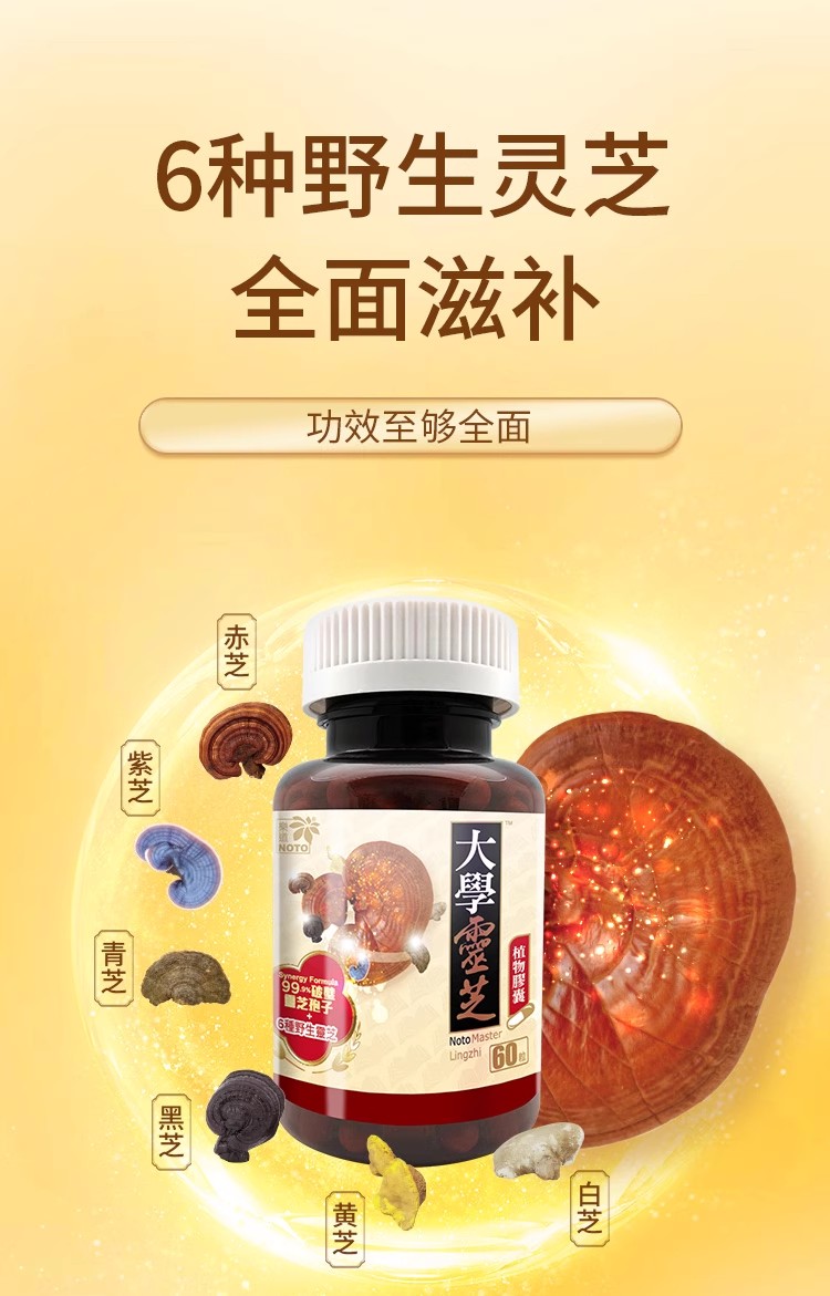 乐道Noto大学灵芝植物胶囊60粒 五色灵芝 疏通血管护心三高 华人药业